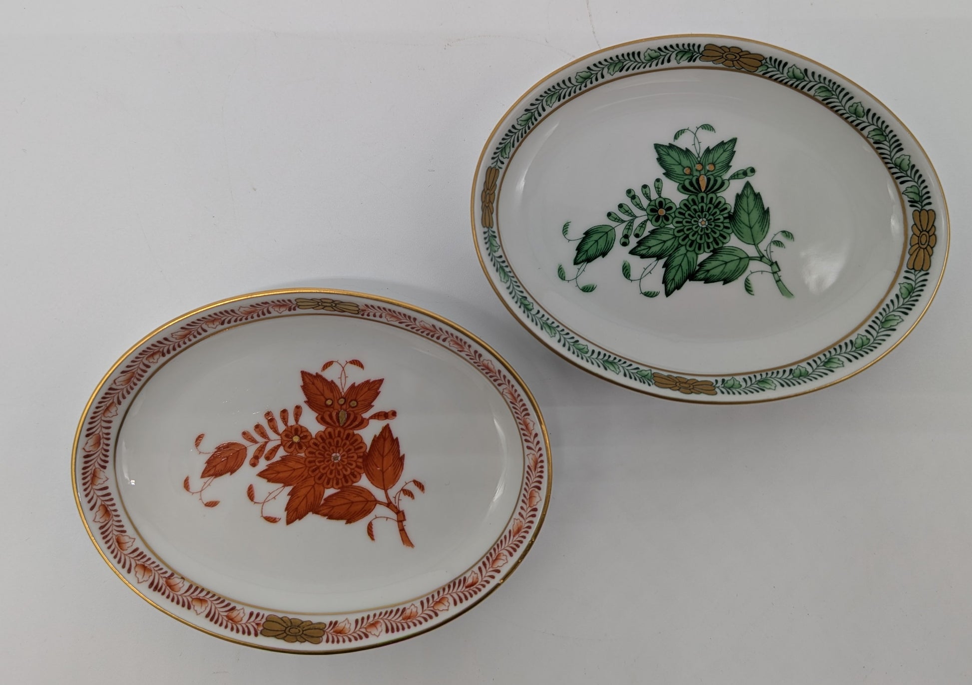 Herend Porzellan Schälchen Apponyi Grün Orange Handbemalt Goldrand Set