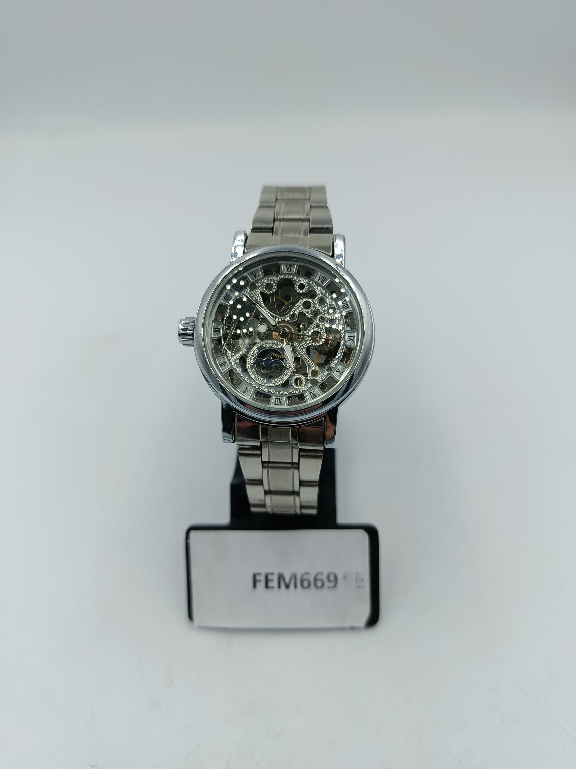 Herren Automatikuhr Silberfarben mit Skelett Zifferblatt
