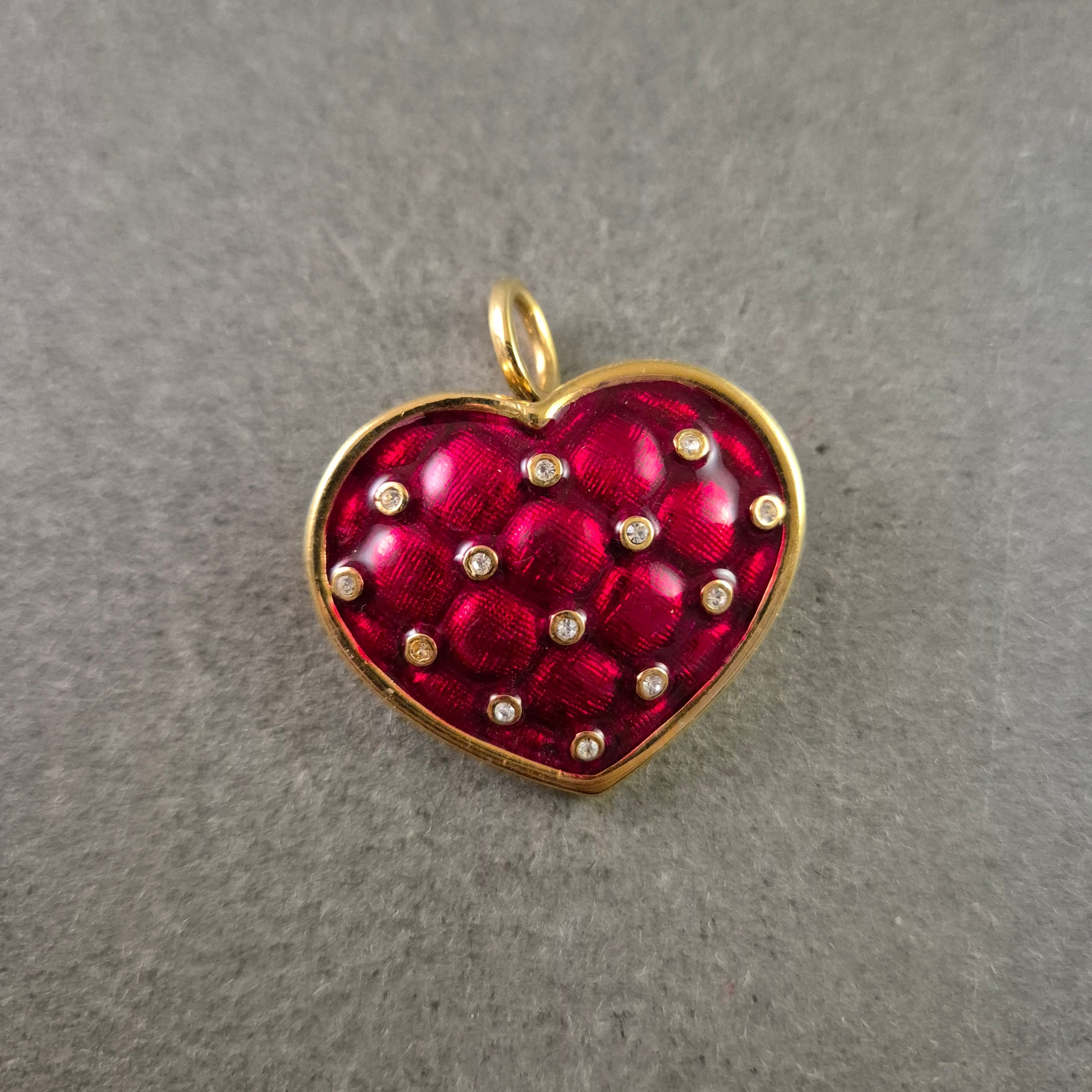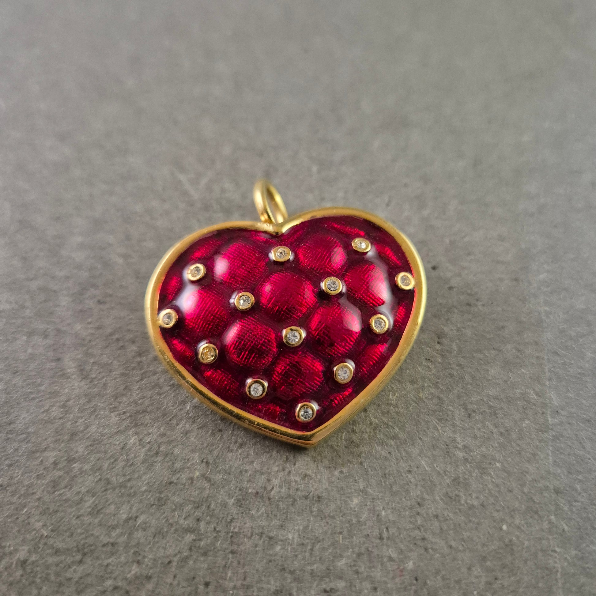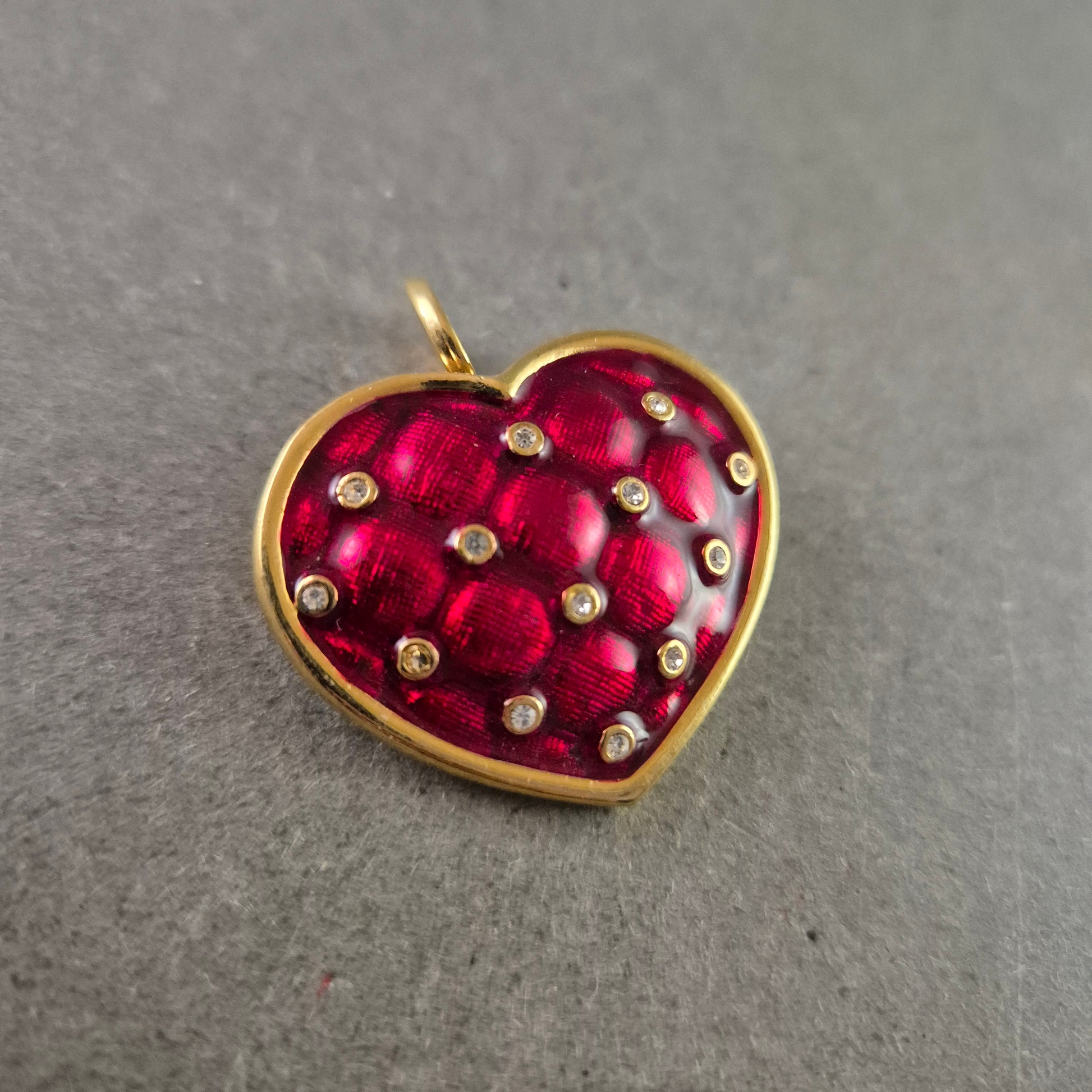 Herz Brosche/Anhänger – Rotes Emaille-Design mit Schmucksteinen