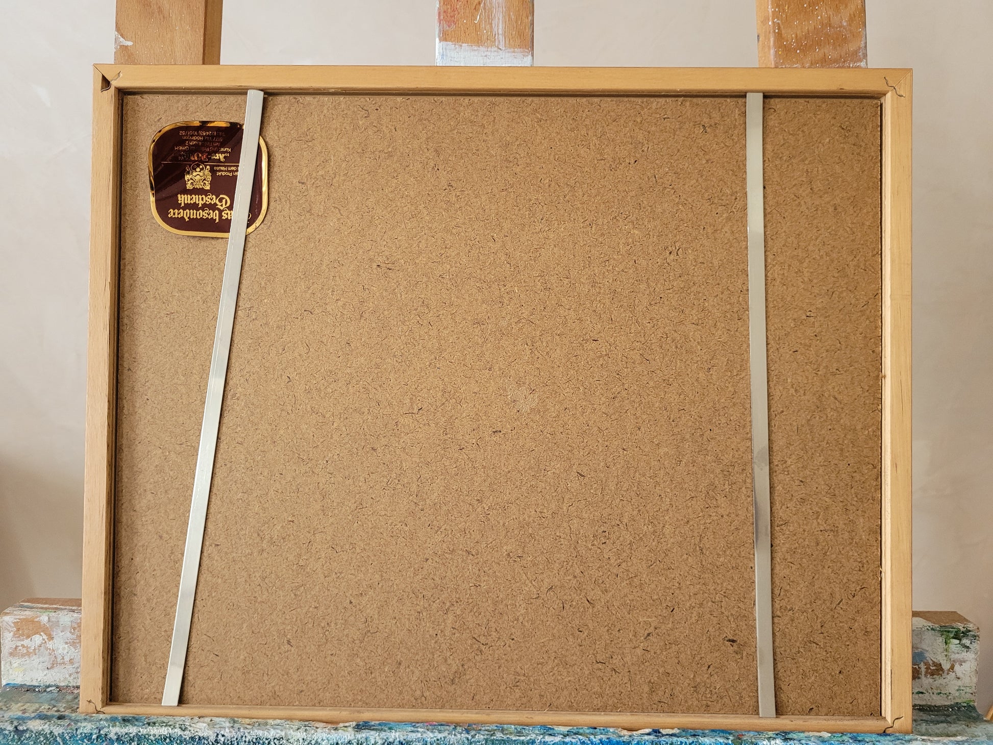 Das Zertifikat ist gerahmt und misst mit Rahmen 30 x 40 cm, während die Aktie selbst eine Größe von 20 x 30 cm aufweist. Der Rahmen schützt das historische Dokument und sorgt für eine stilvolle Präsentation.