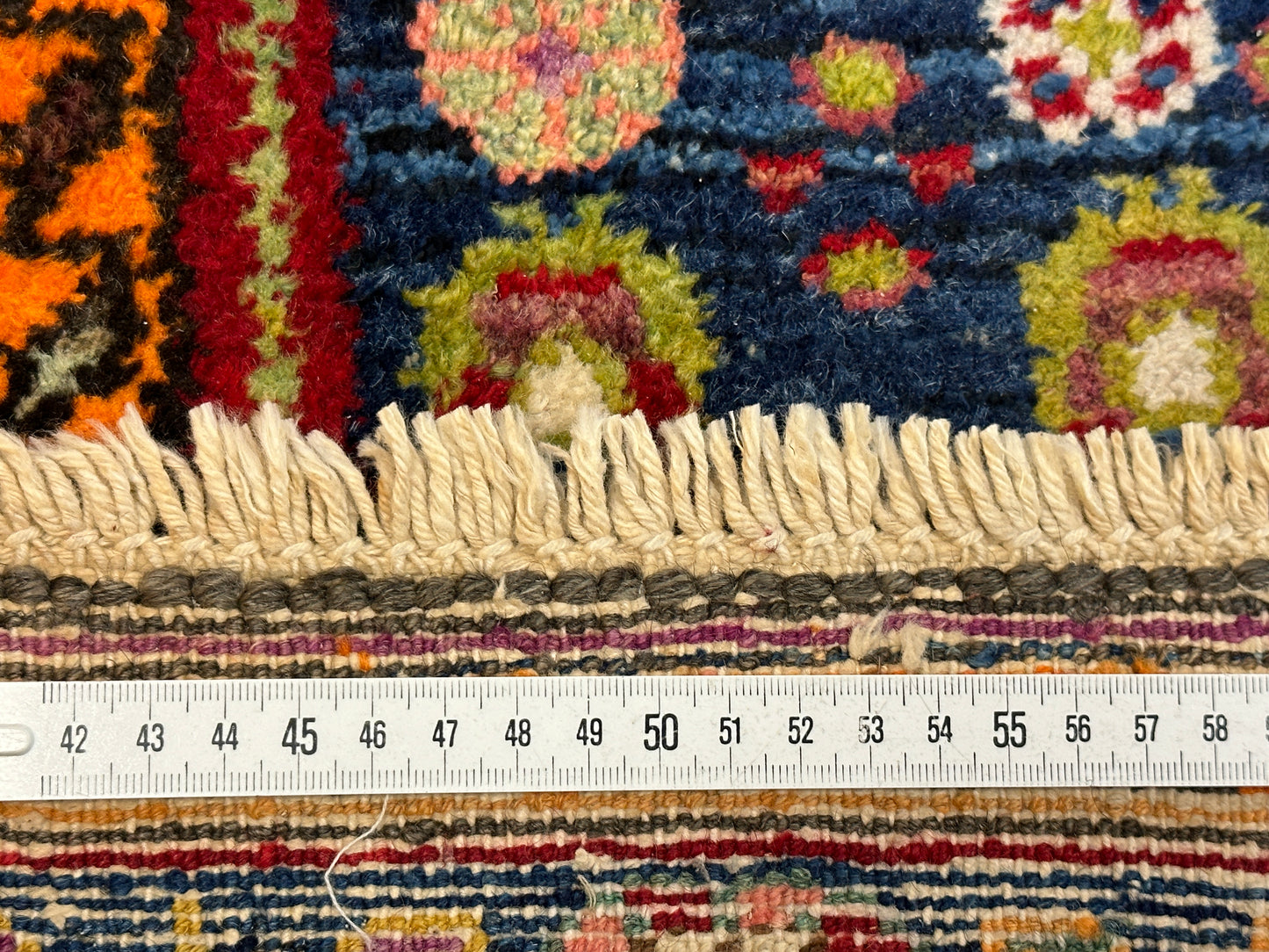 Hinweis: Aufgrund der handgefertigten Natur des Teppichs können leichte Abweichungen im Muster auftreten, was jedem Exemplar seine Einzigartigkeit verleiht.