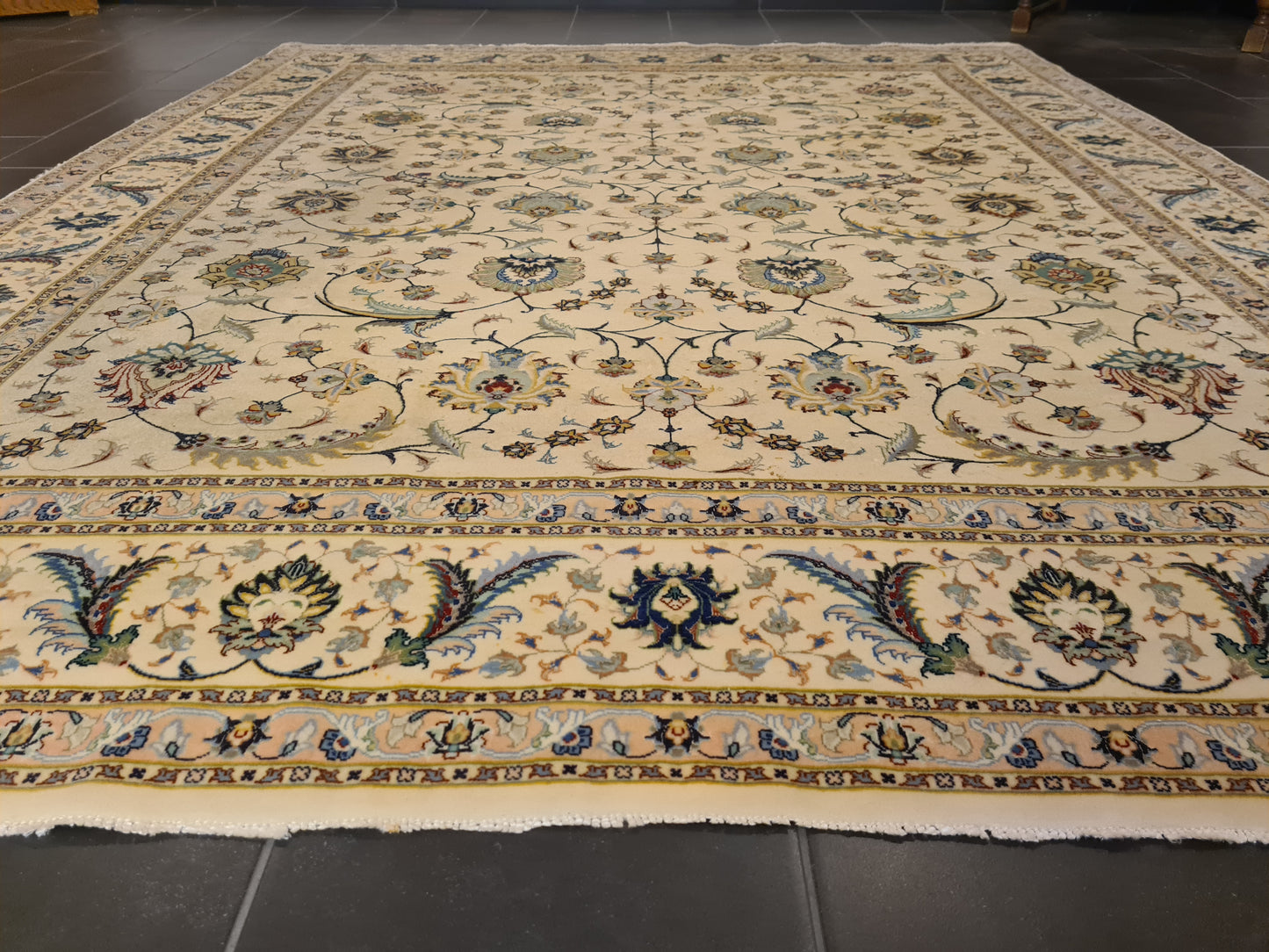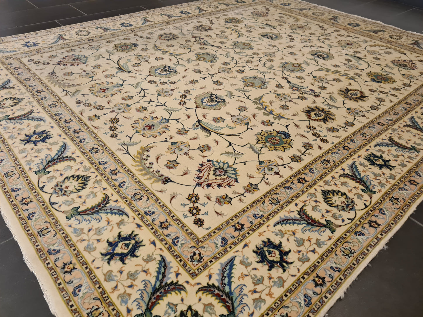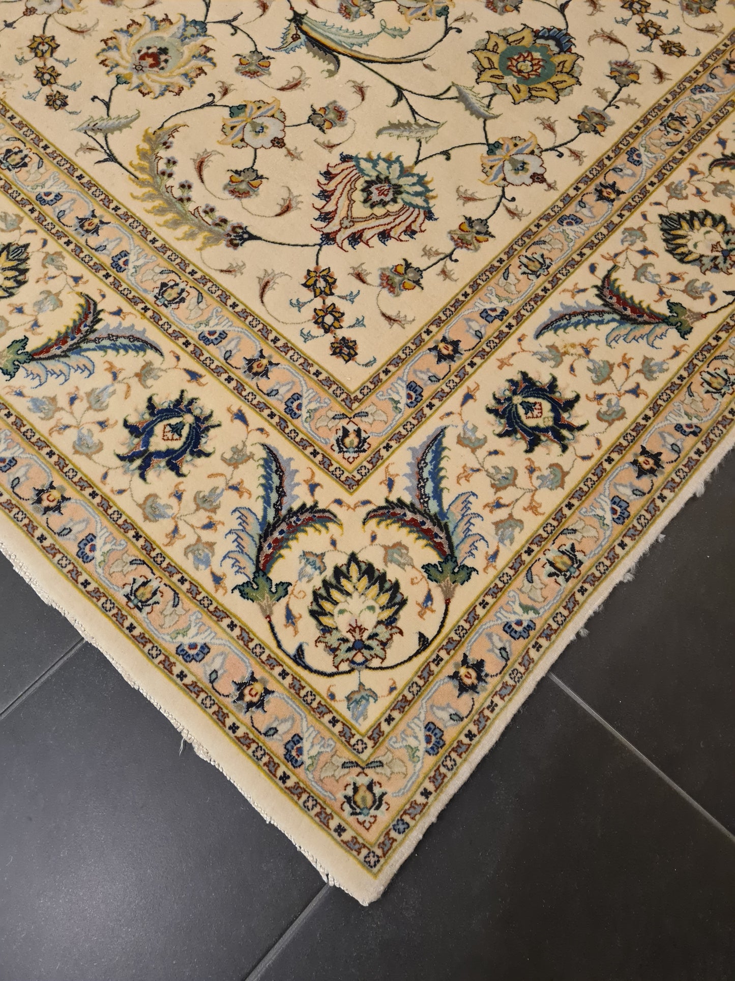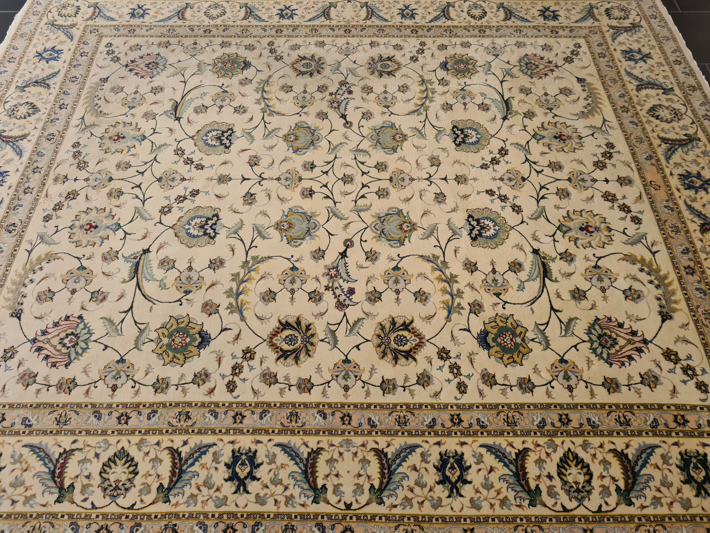 Besonderheiten: Vom Knüpfmeister signiert, außergewöhnliche Verarbeitungsqualität und Verwendung edelster Materialien
