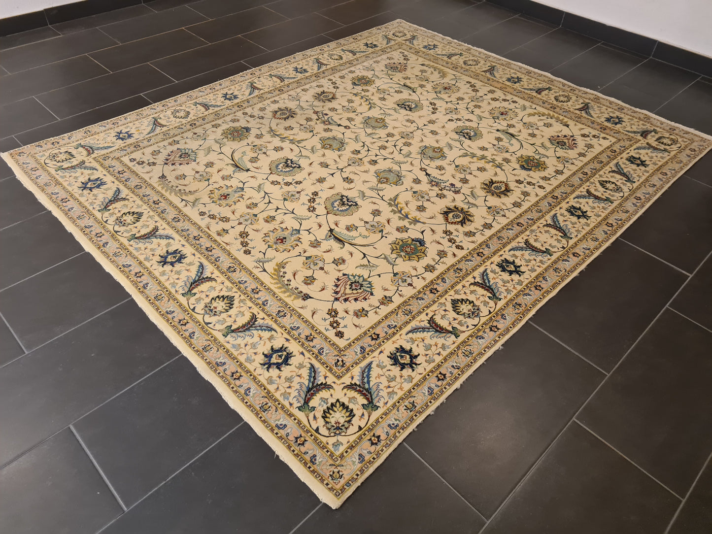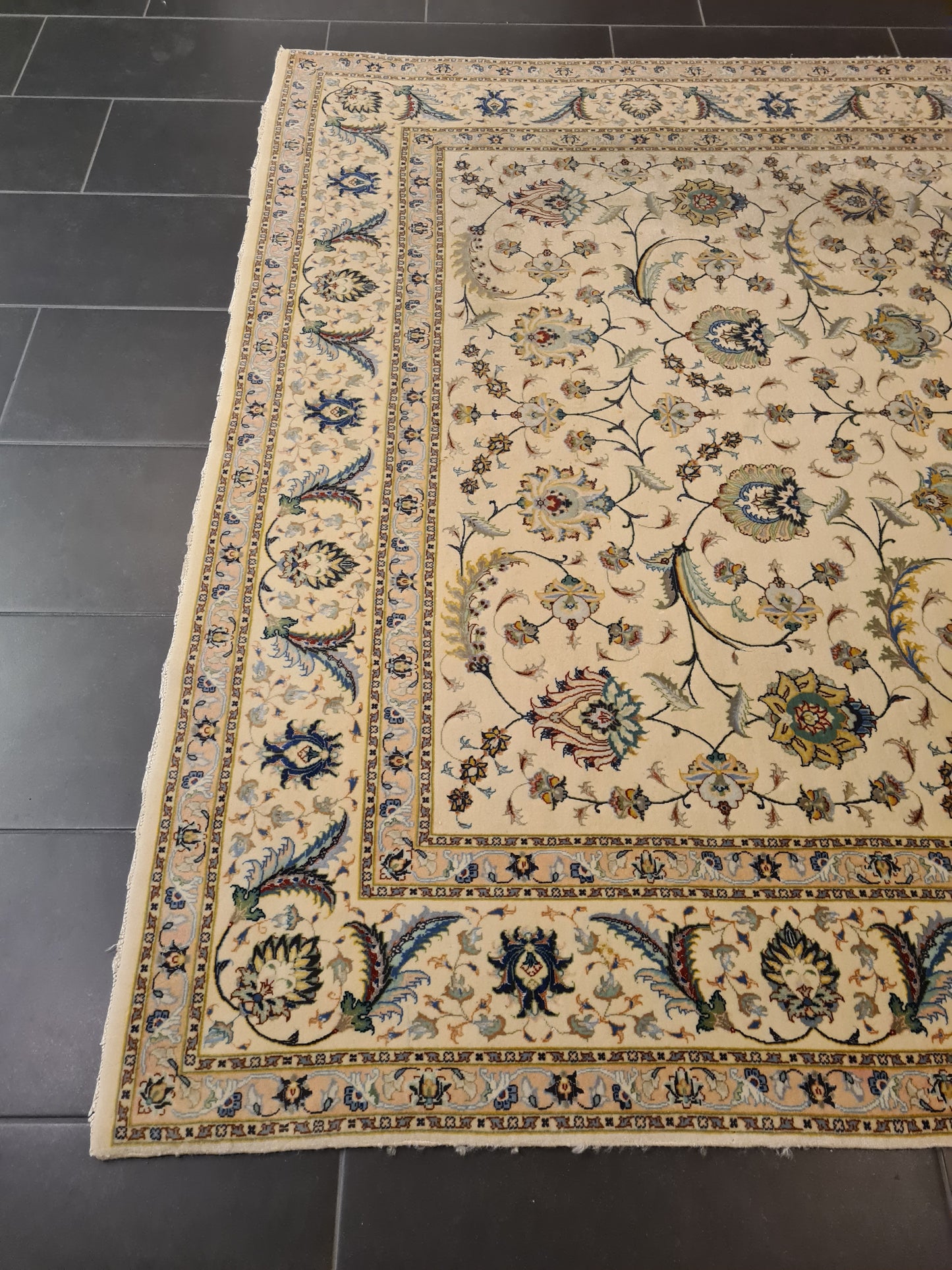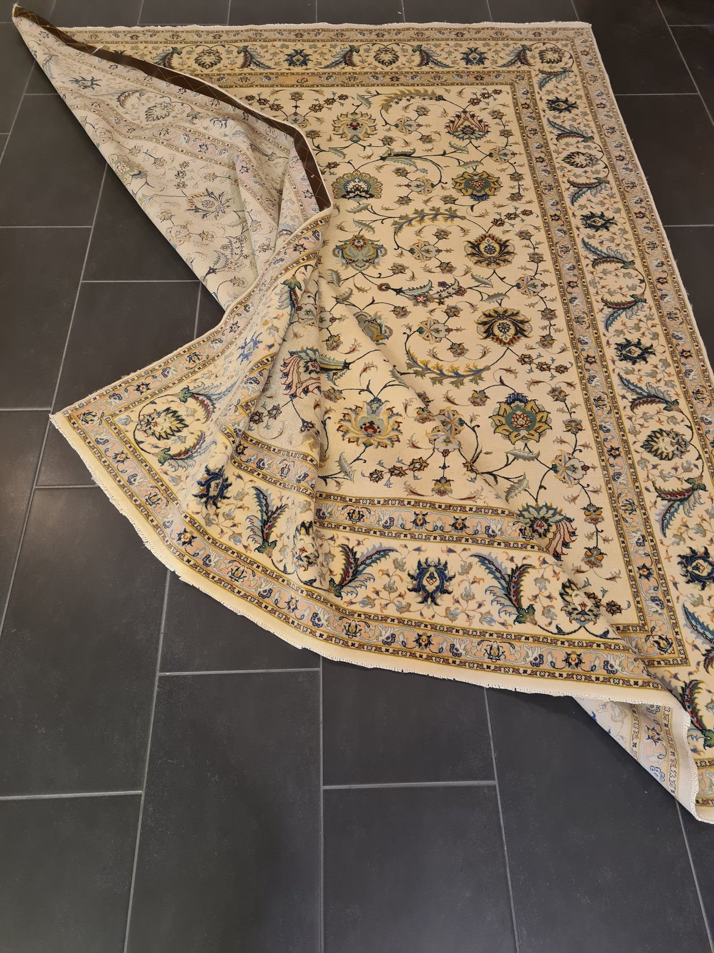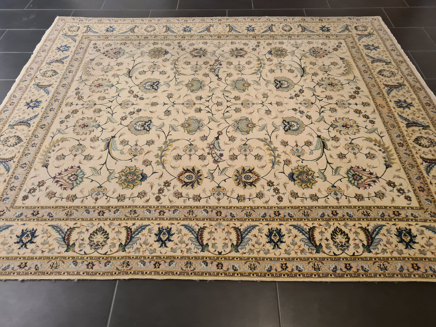 Besonderheiten: Vom Knüpfmeister signiert, außergewöhnliche Verarbeitungsqualität und Verwendung edelster Materialien