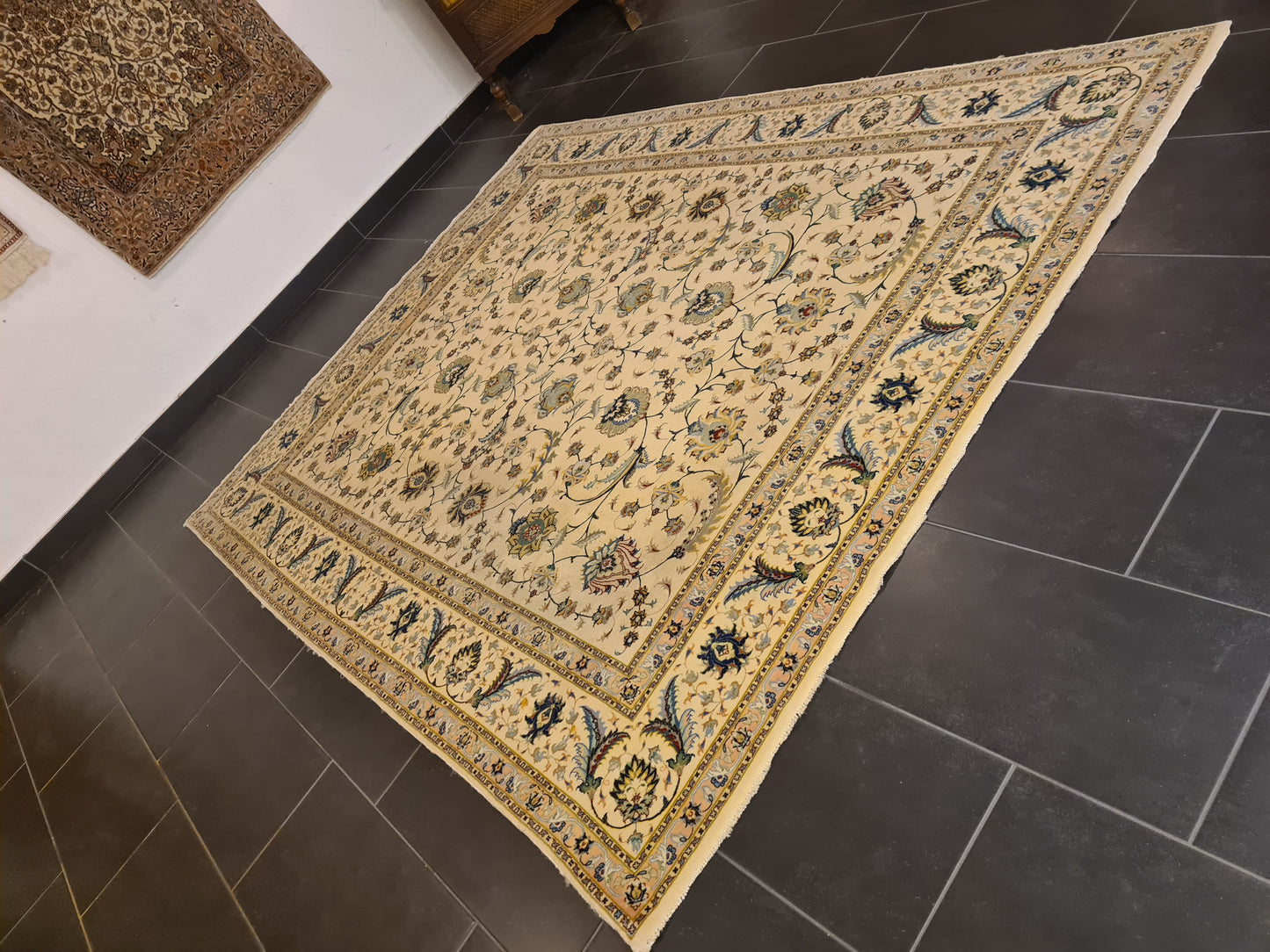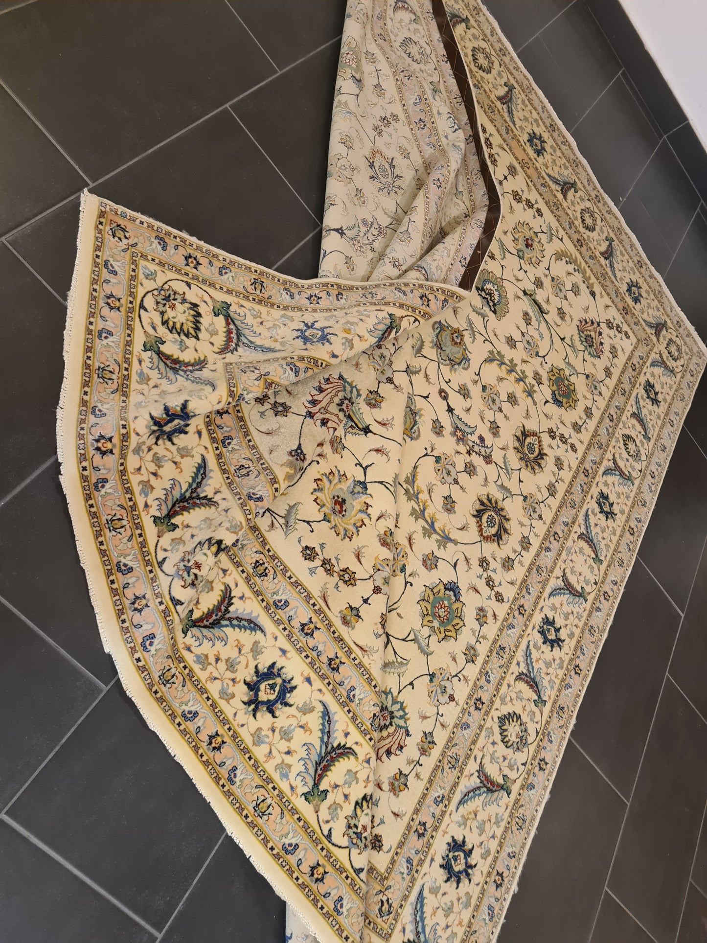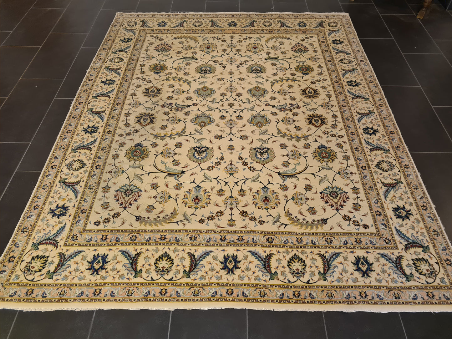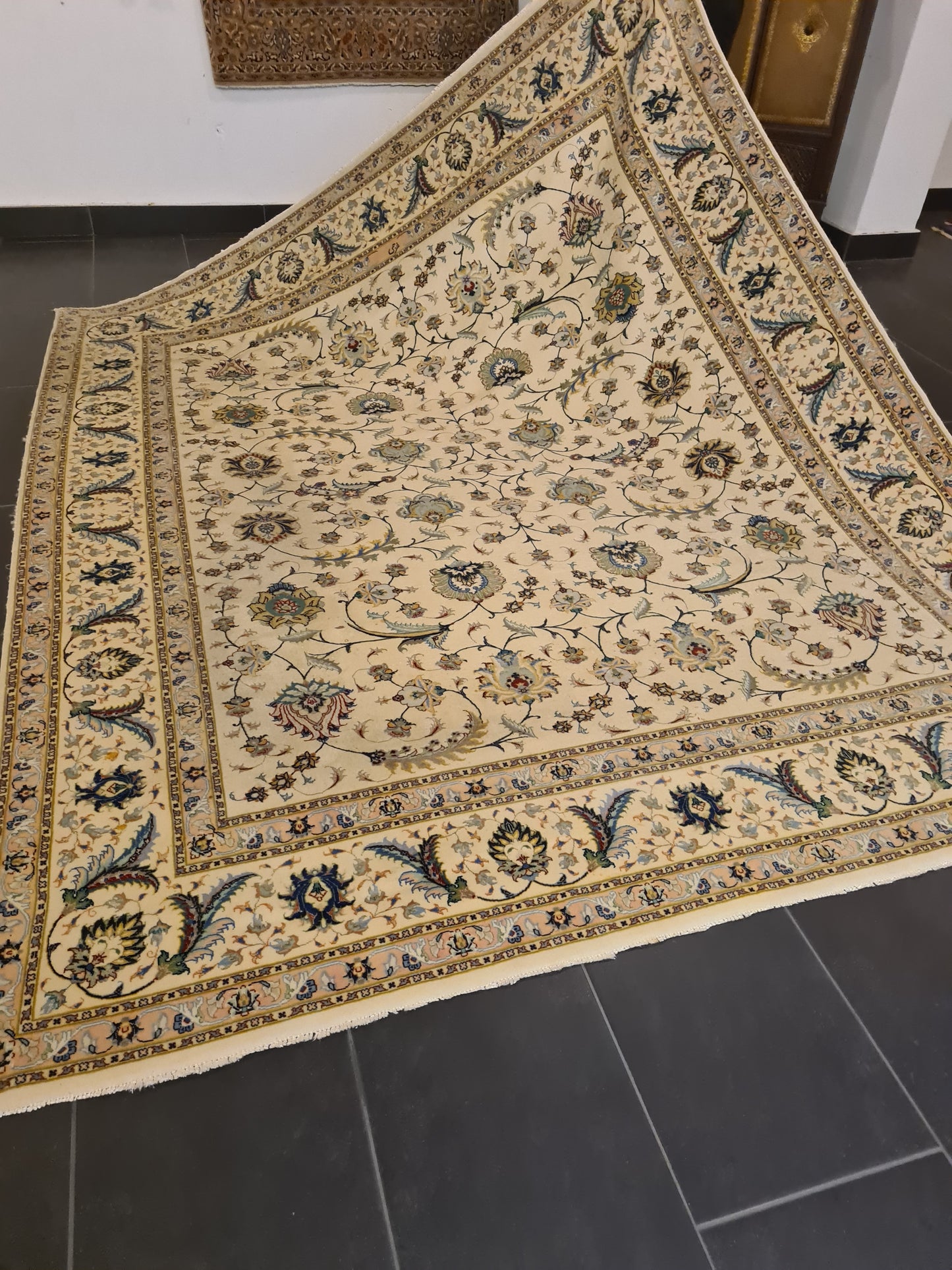 Besonderheiten: Vom Knüpfmeister signiert, außergewöhnliche Verarbeitungsqualität und Verwendung edelster Materialien