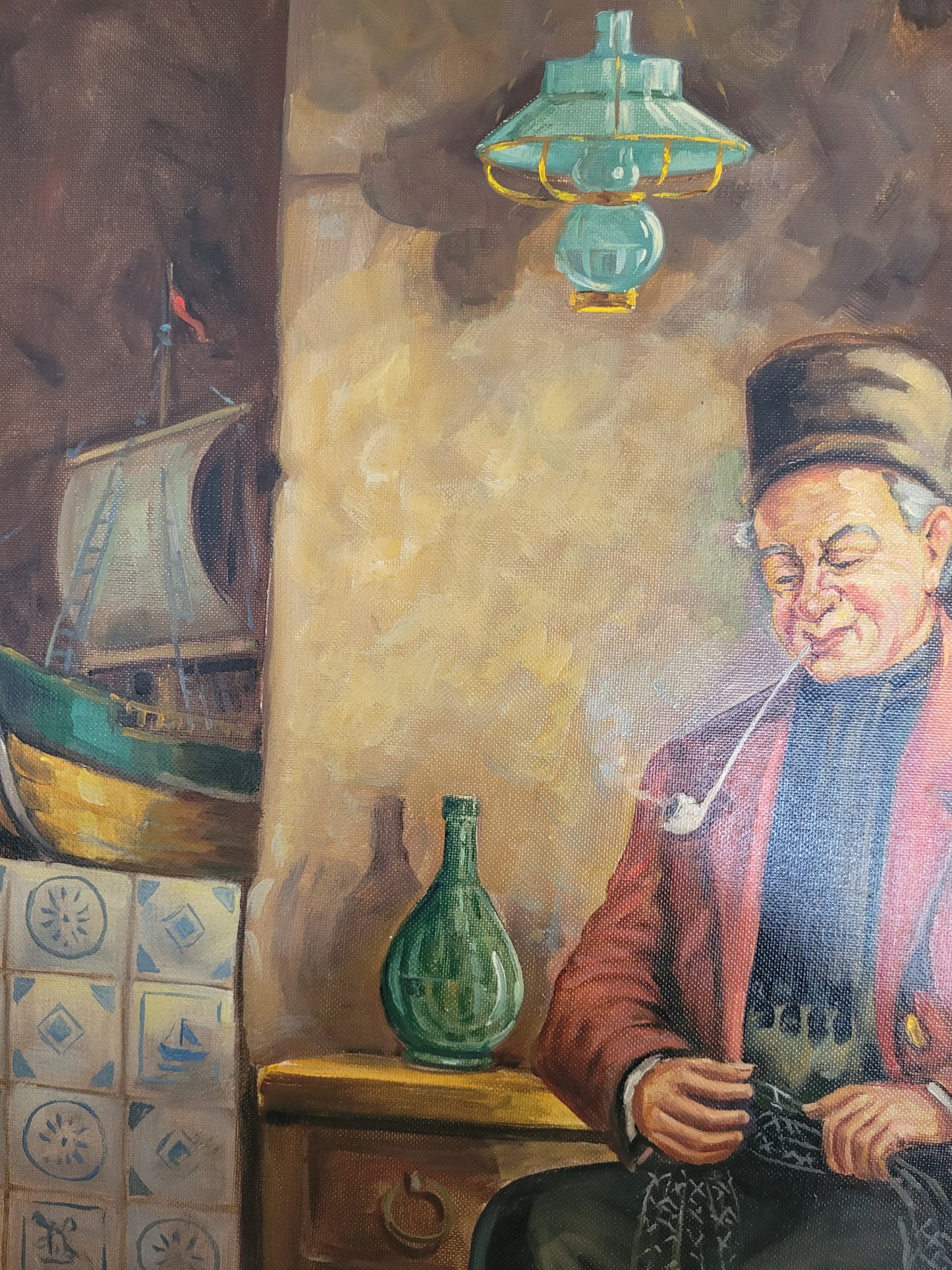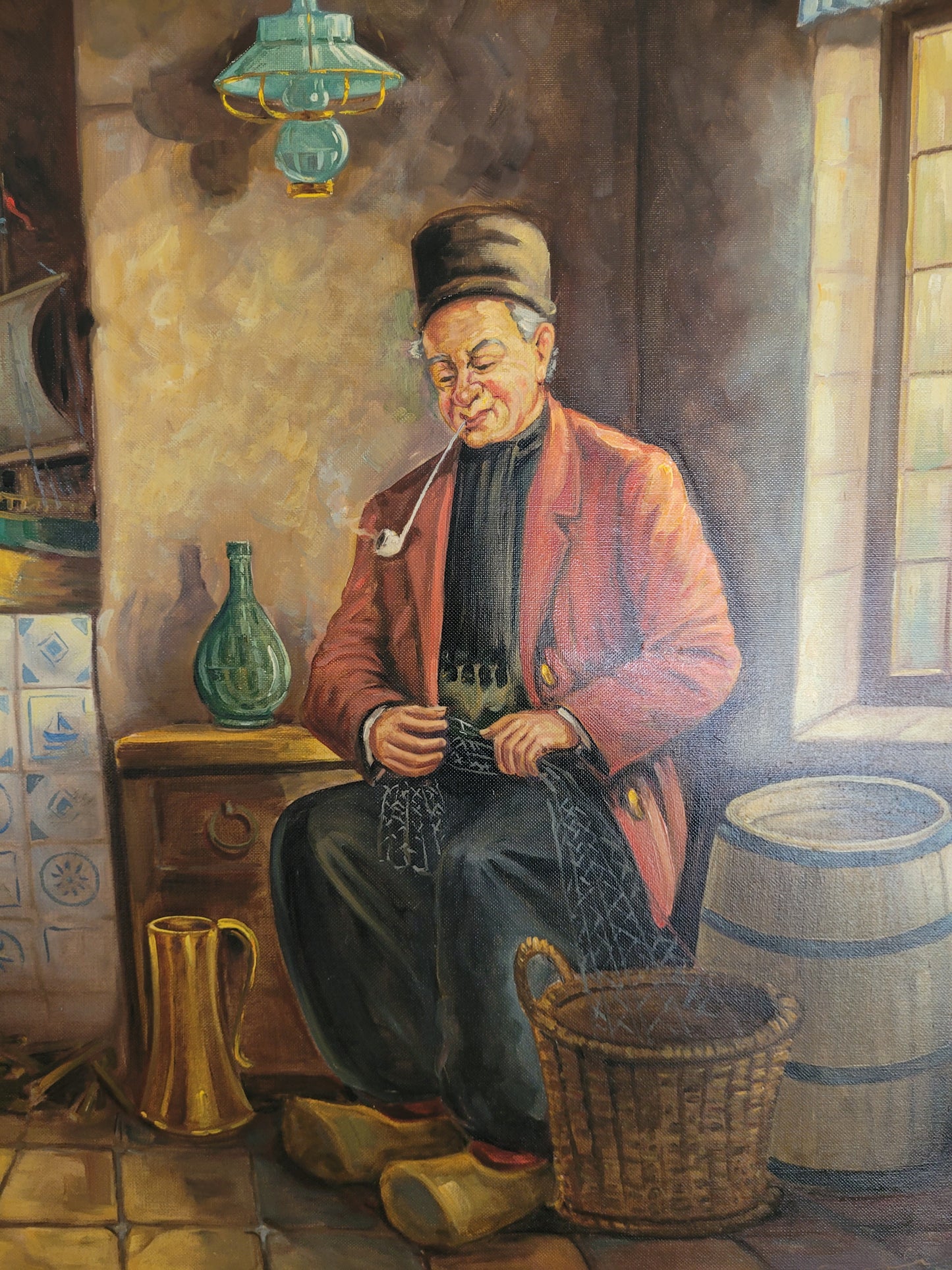 Holländische Schule (XX) Ölgemälde Mann mit Pfeife 70x60cm