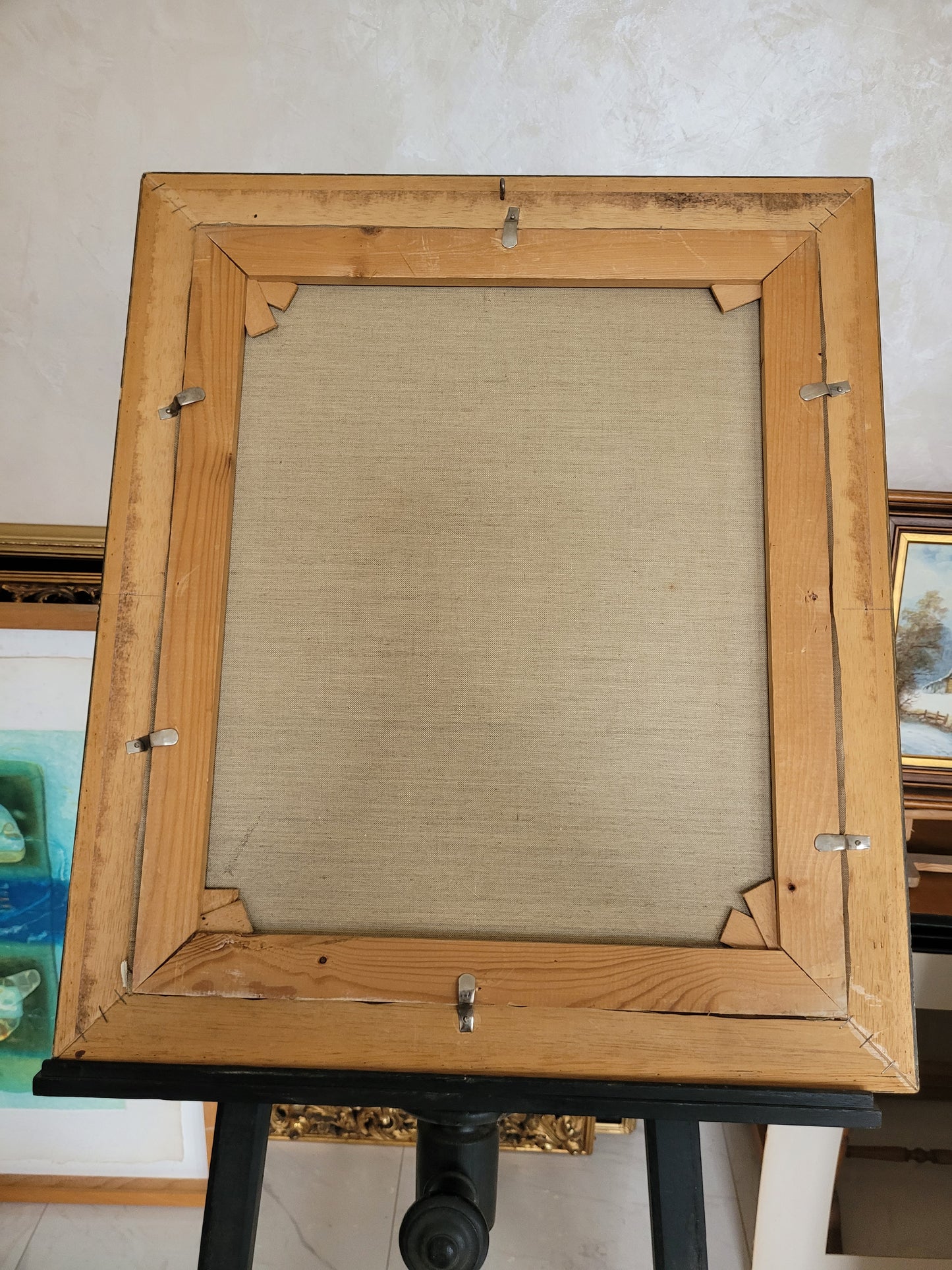 Das Gemälde ist in einem sehr guten Zustand. Der Rahmen, der die Gesamtmaße auf 70x60cm erweitert, ist ebenfalls gut erhalten und ergänzt das Werk hervorragend. Ohne Rahmen misst das Gemälde 60x50cm.