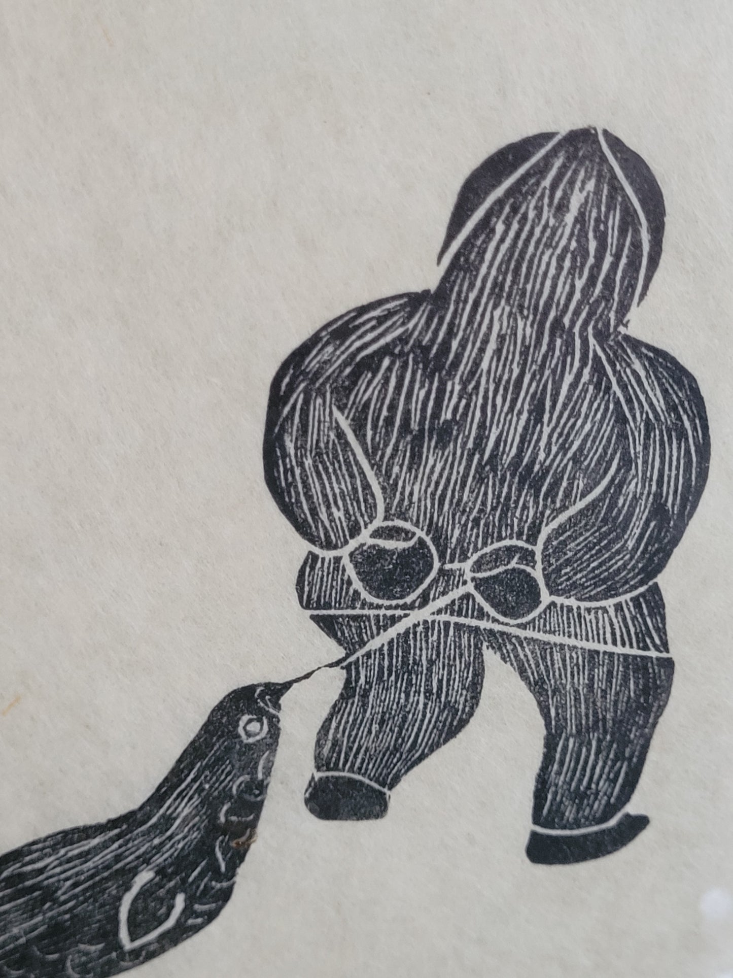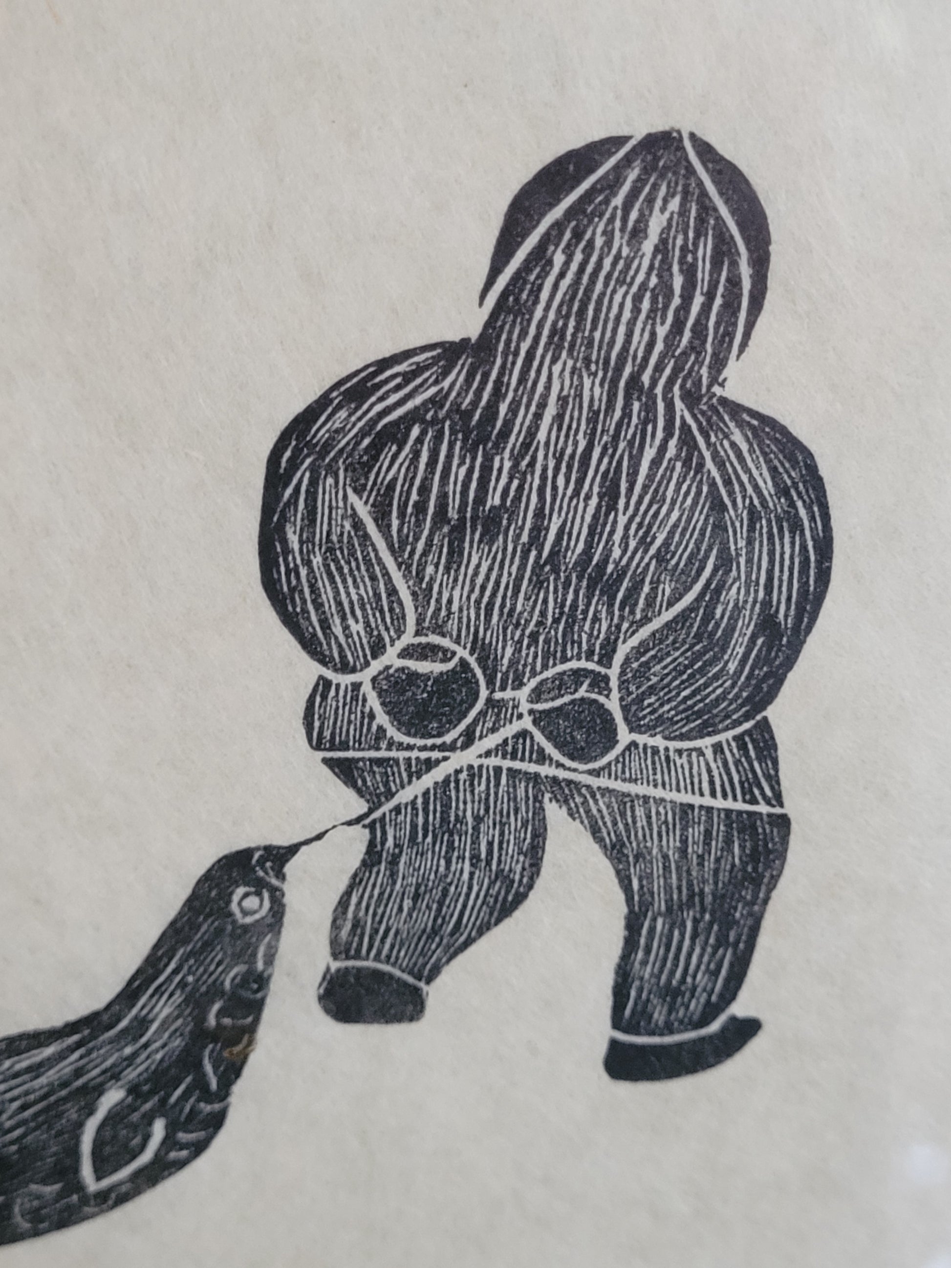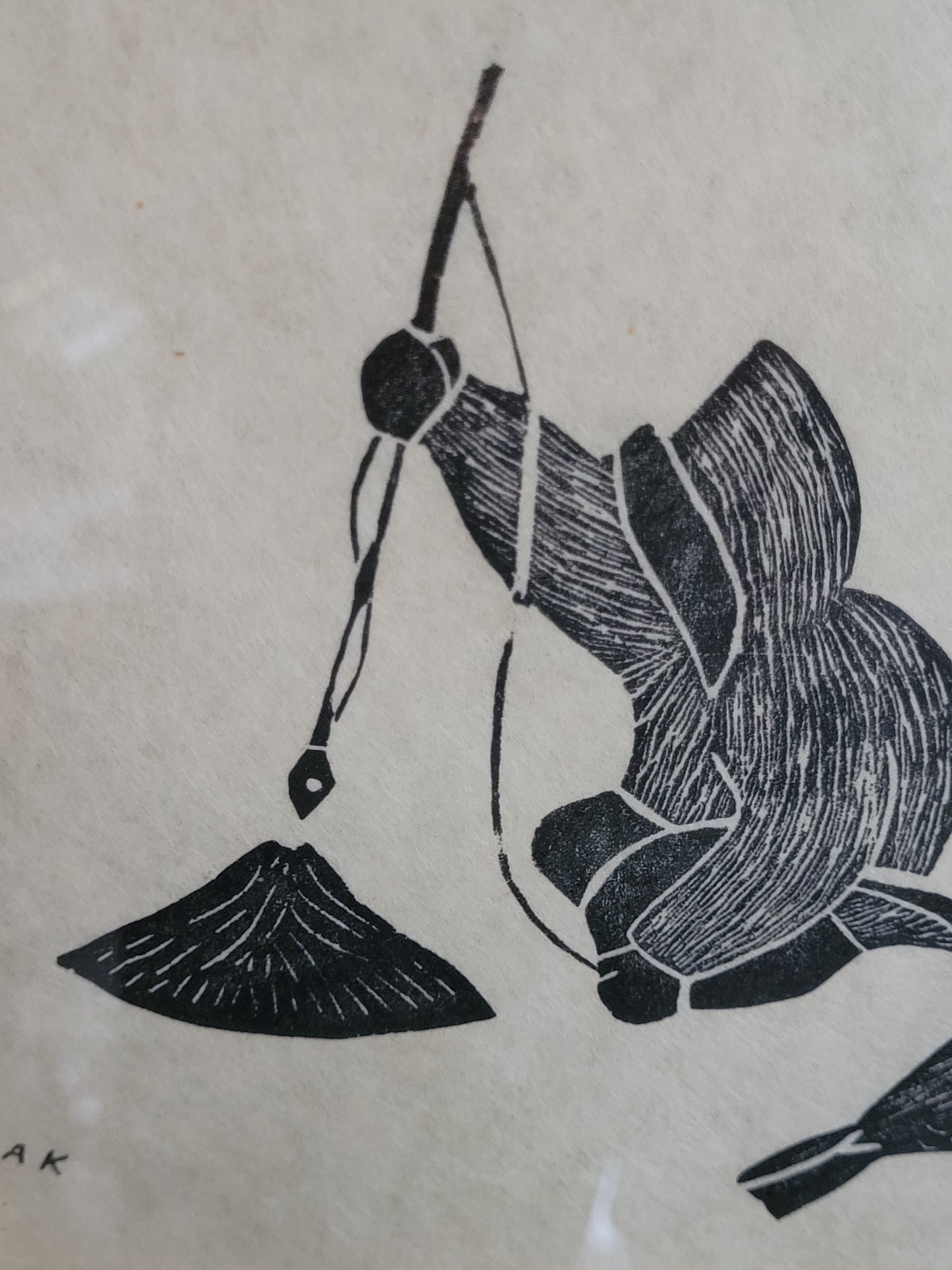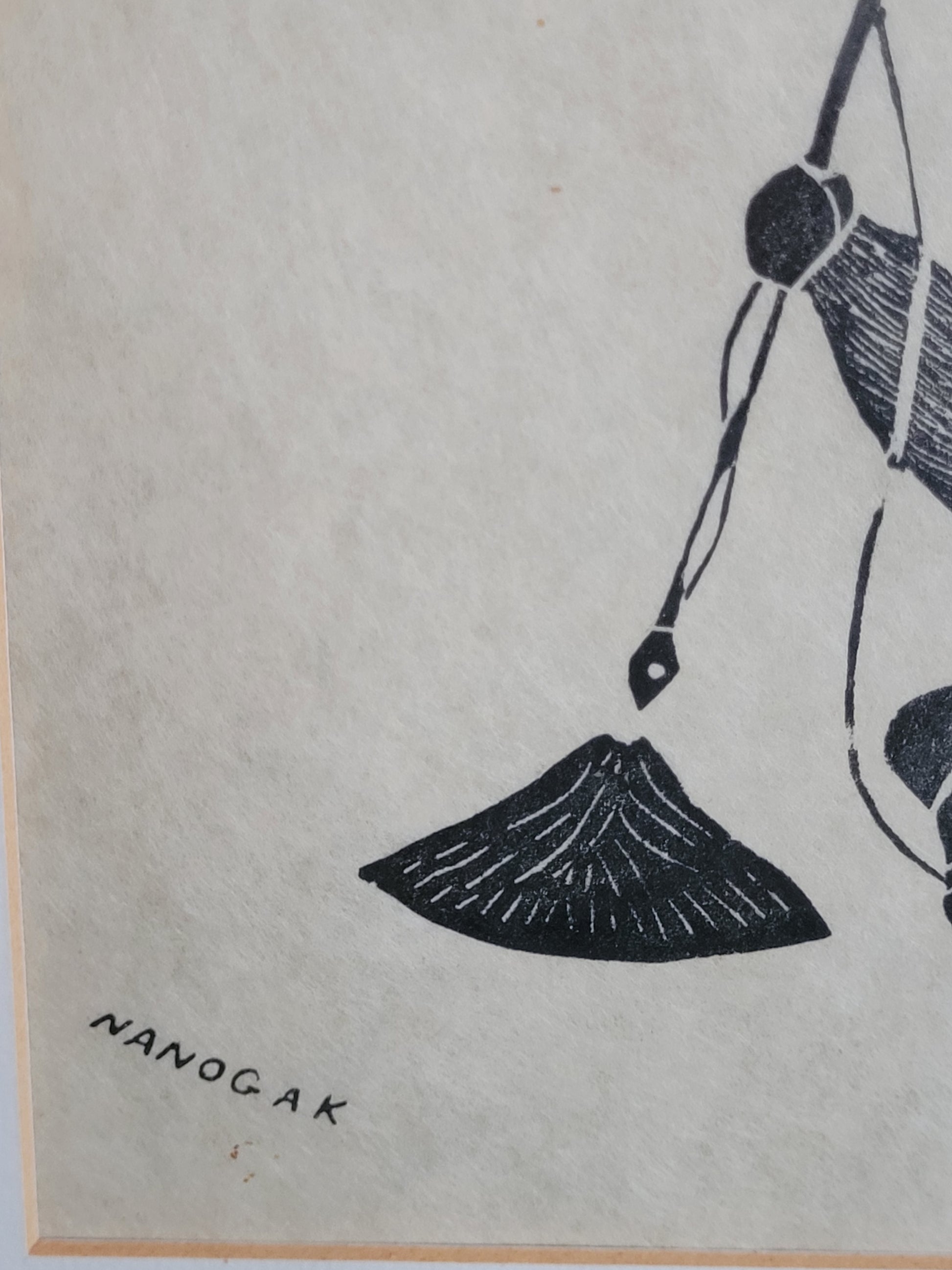 Agnes Nanogak Holzschnitt Zwei Inuit Fischer mit Seehund Fang