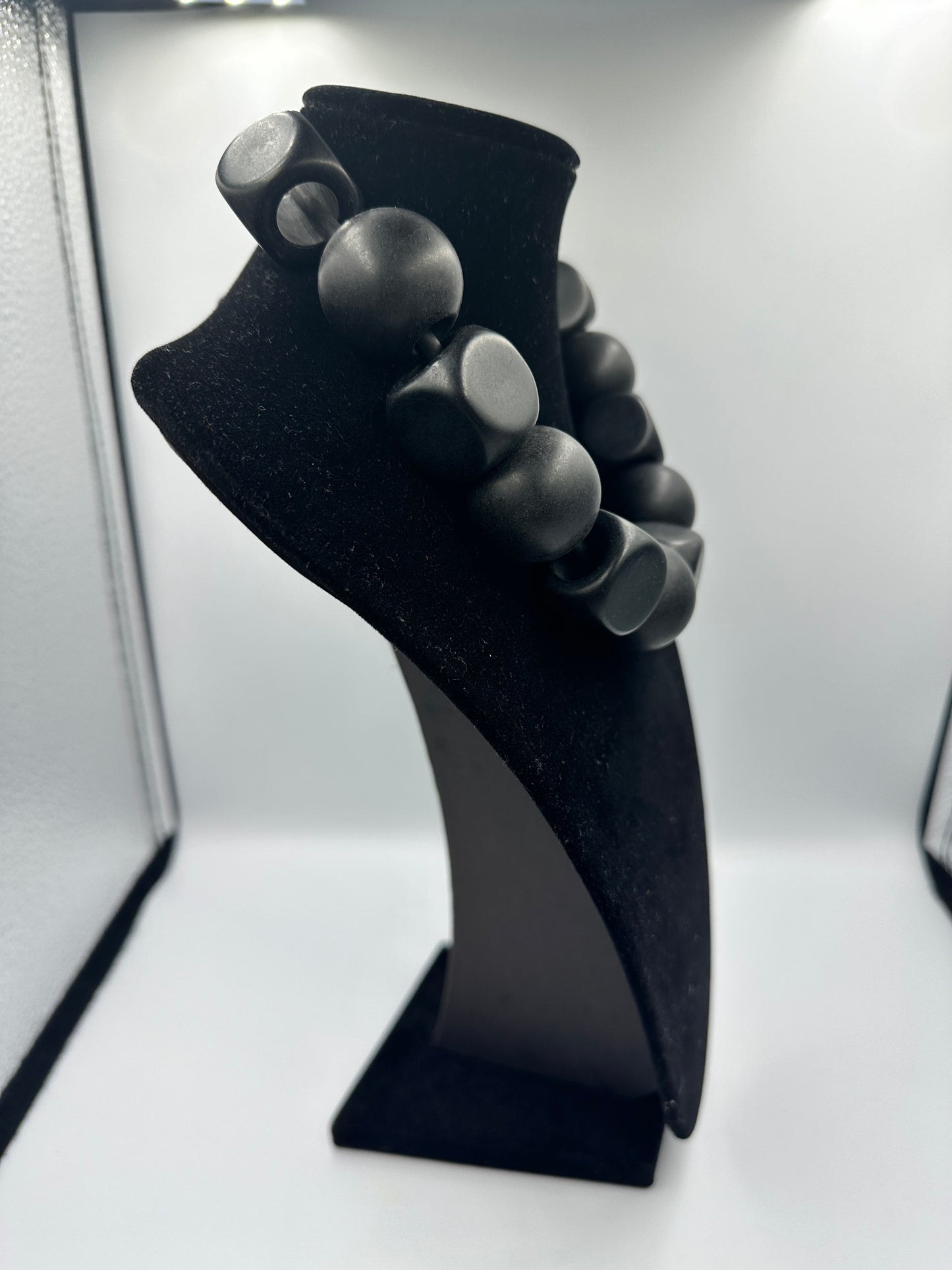 Die Kette zeichnet sich durch ihre robuste Bauweise und das einzigartige Design aus, welches sowohl traditionelle als auch moderne Elemente elegant vereint. Die geometrischen Steine verleihen dem ansonsten schlichten Holz eine außergewöhnliche Note und machen jedes Stück zu einem Unikat.