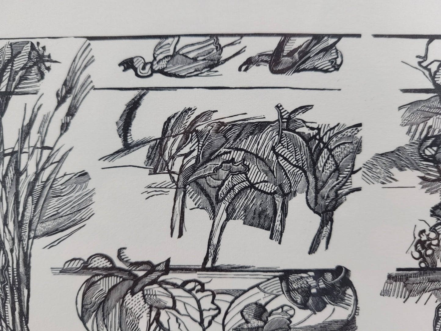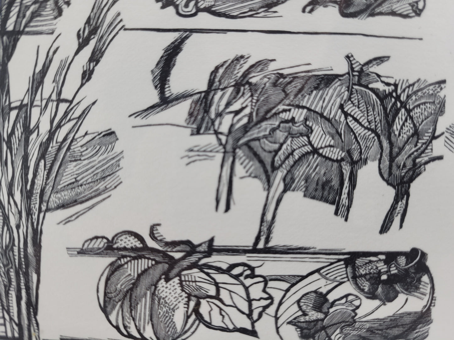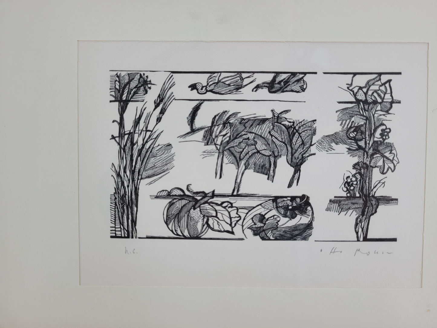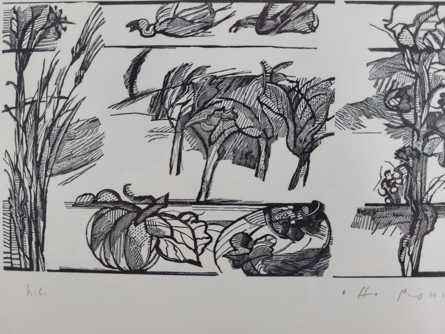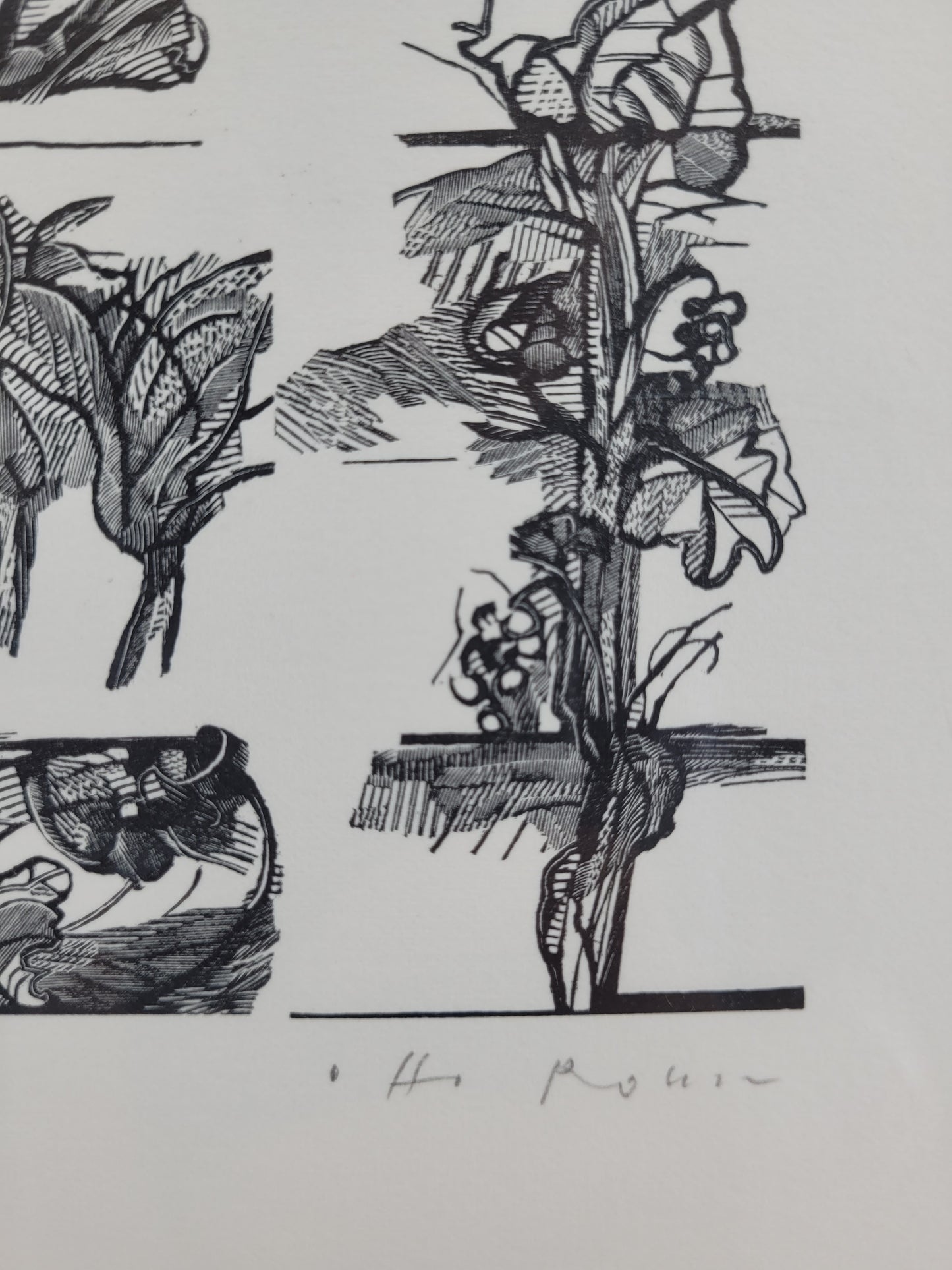 Original Holzschnitt, H.C. Künstlerabzug Handsigniert Pflanzen
