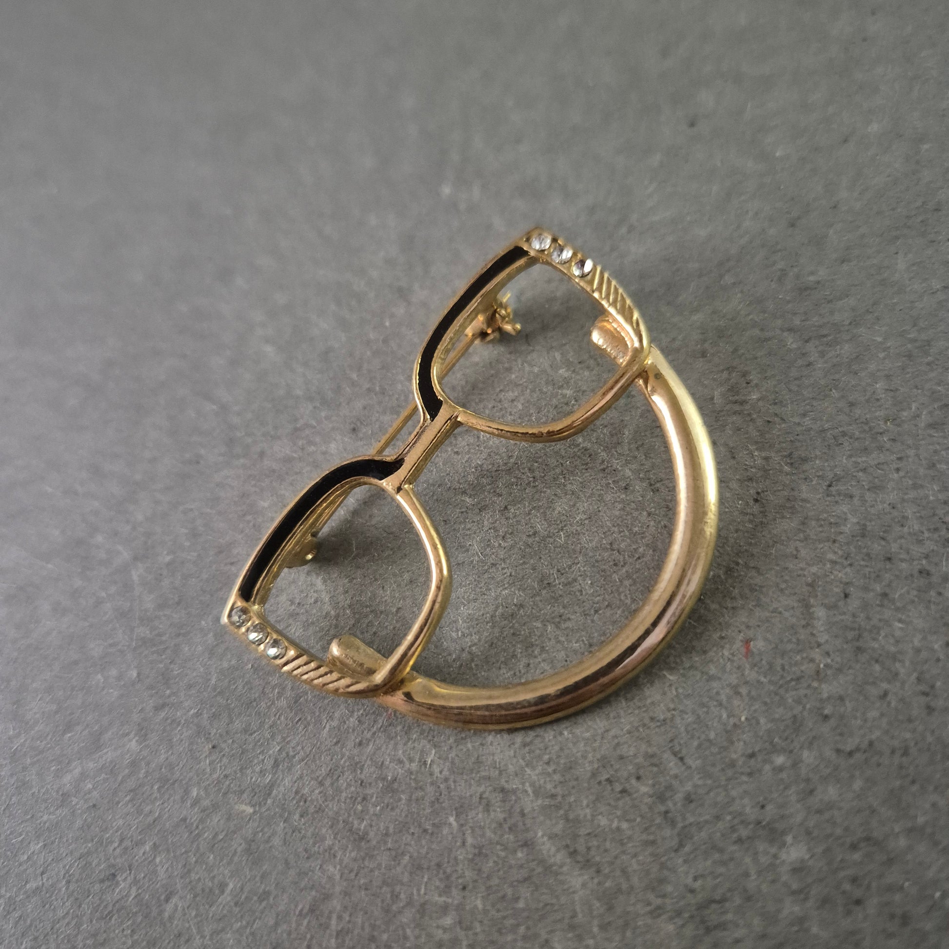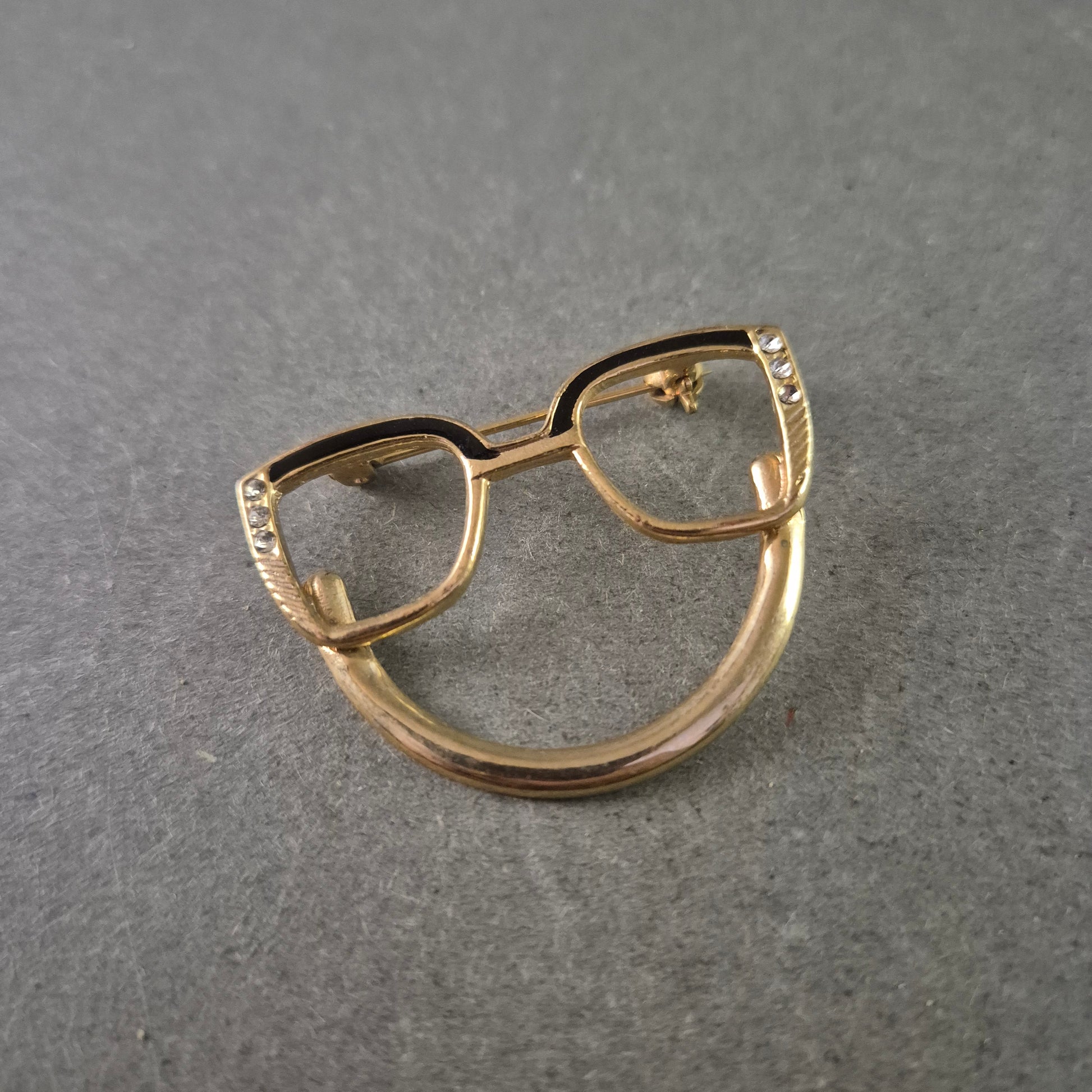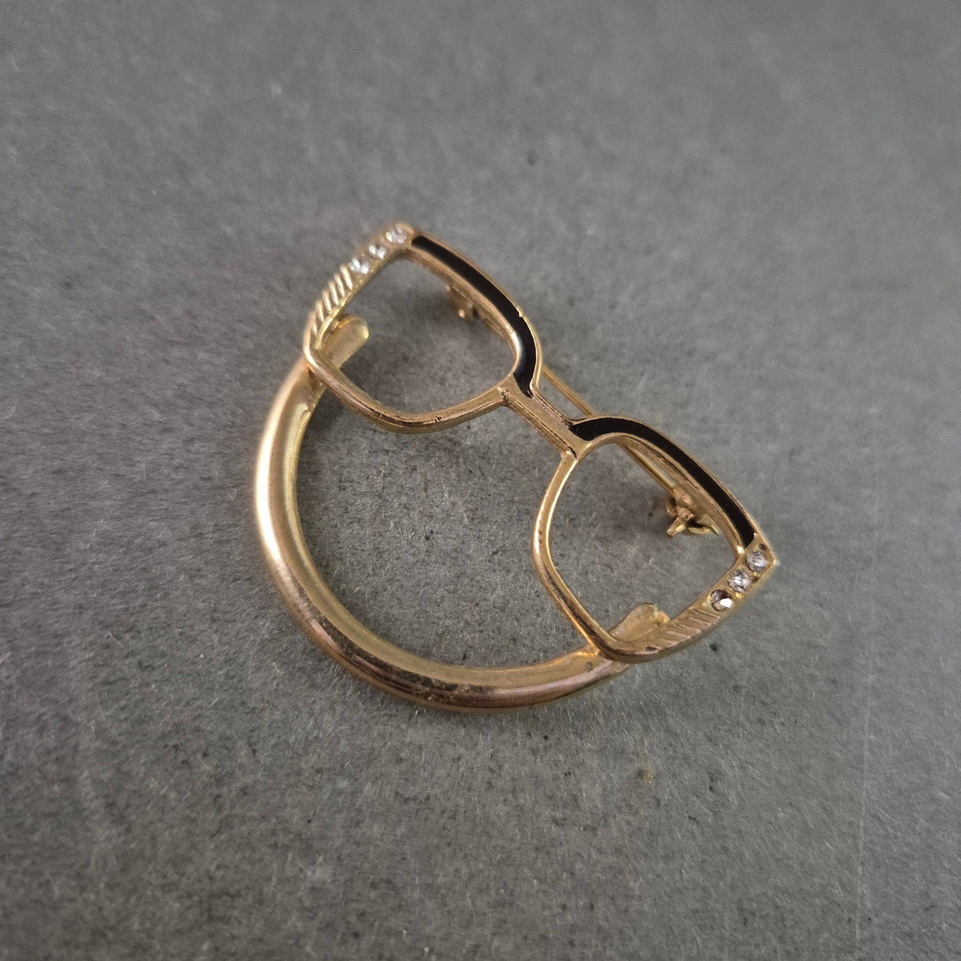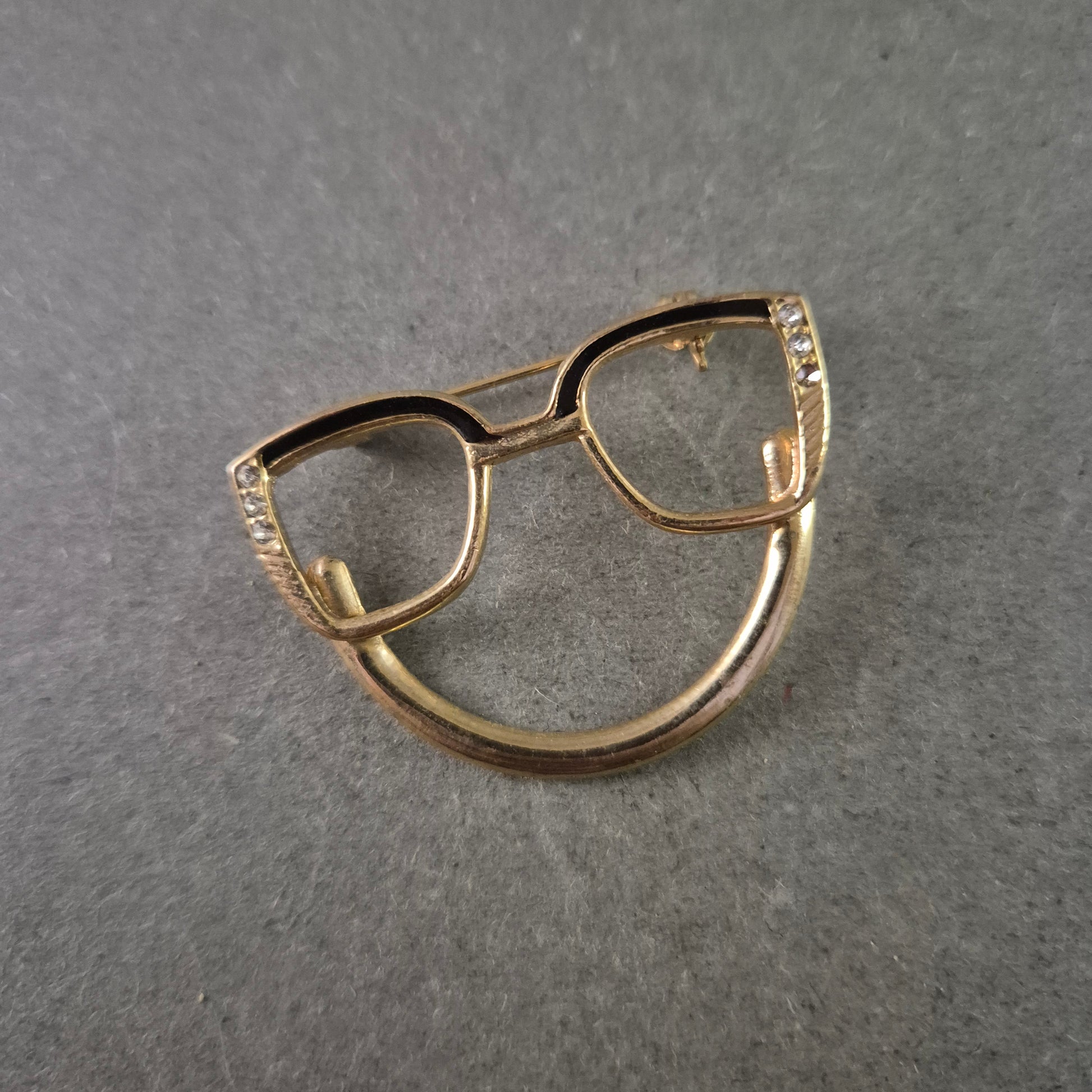 Diese ausgefallene Brosche in Form einer Brille mit angedeutetem Lächeln bringt modischen Witz in jedes Outfit. Das Design ist mit kleinen Strasssteinen an den Brillenrändern verziert und besticht durch seinen Vintage-Charme. Ein tolles Accessoire für alle, die Humor und Stil verbinden möchten.