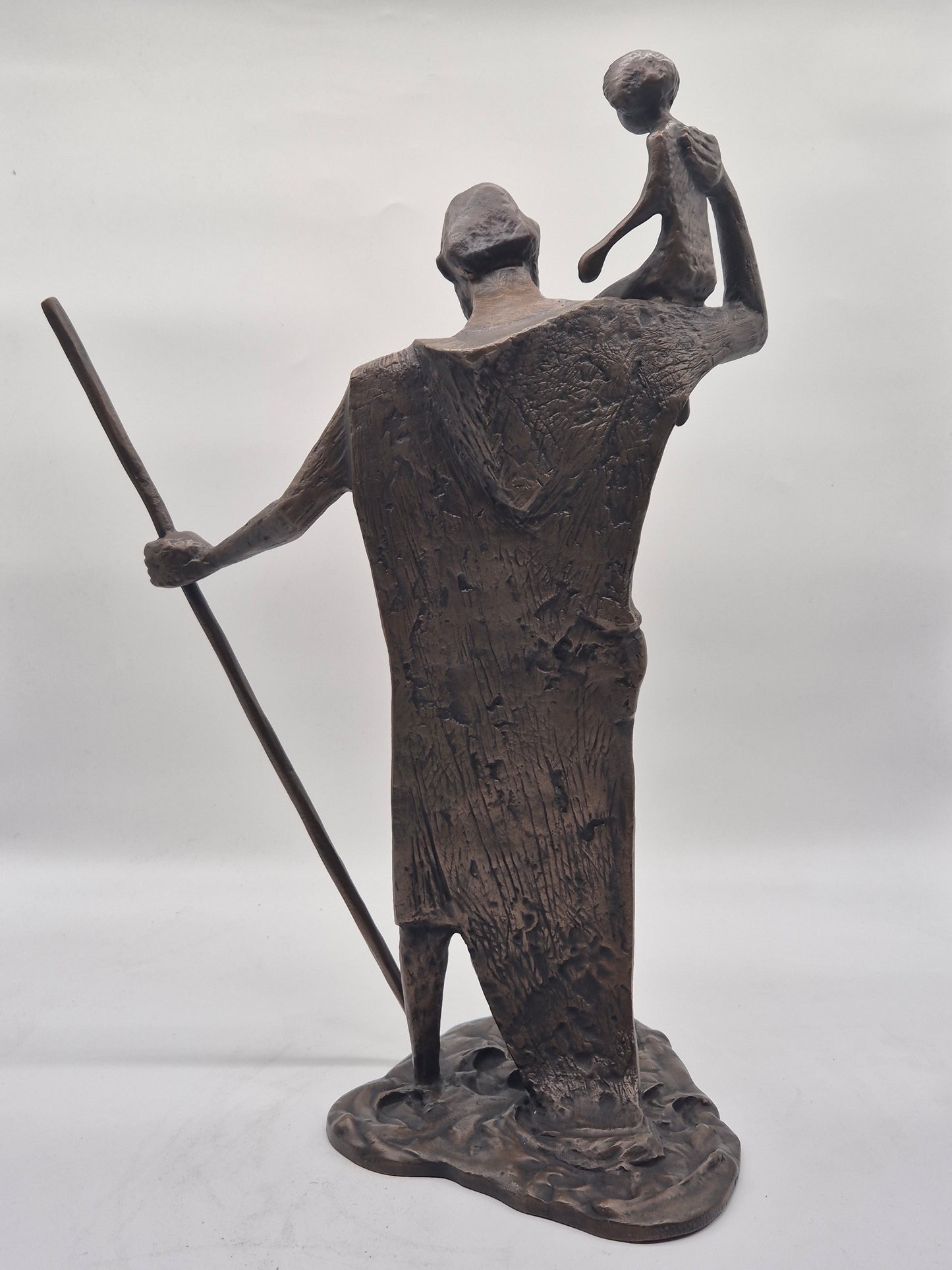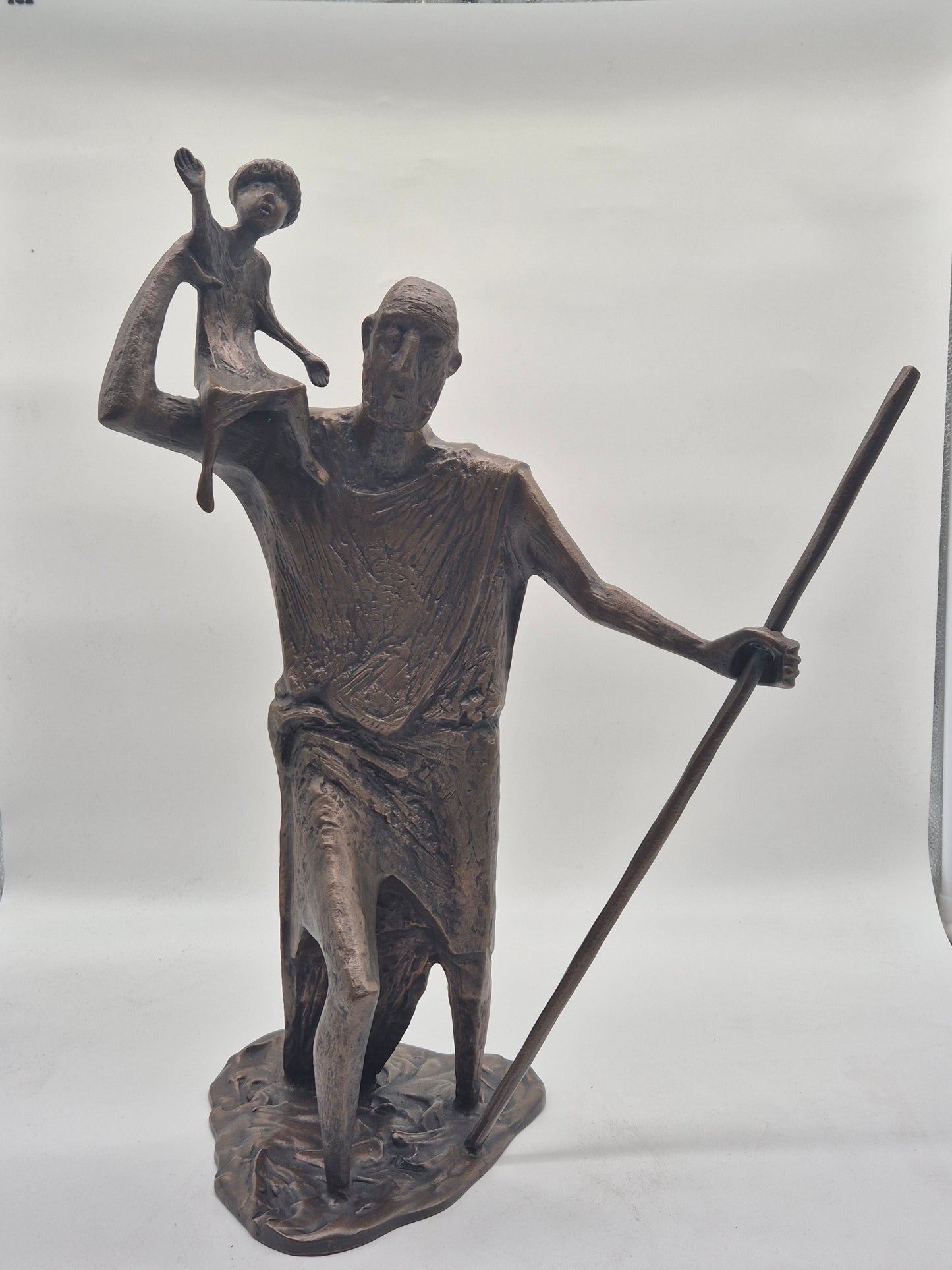 Schwere Massive Bronze Hl. Christophorus mit dem Jesuskind