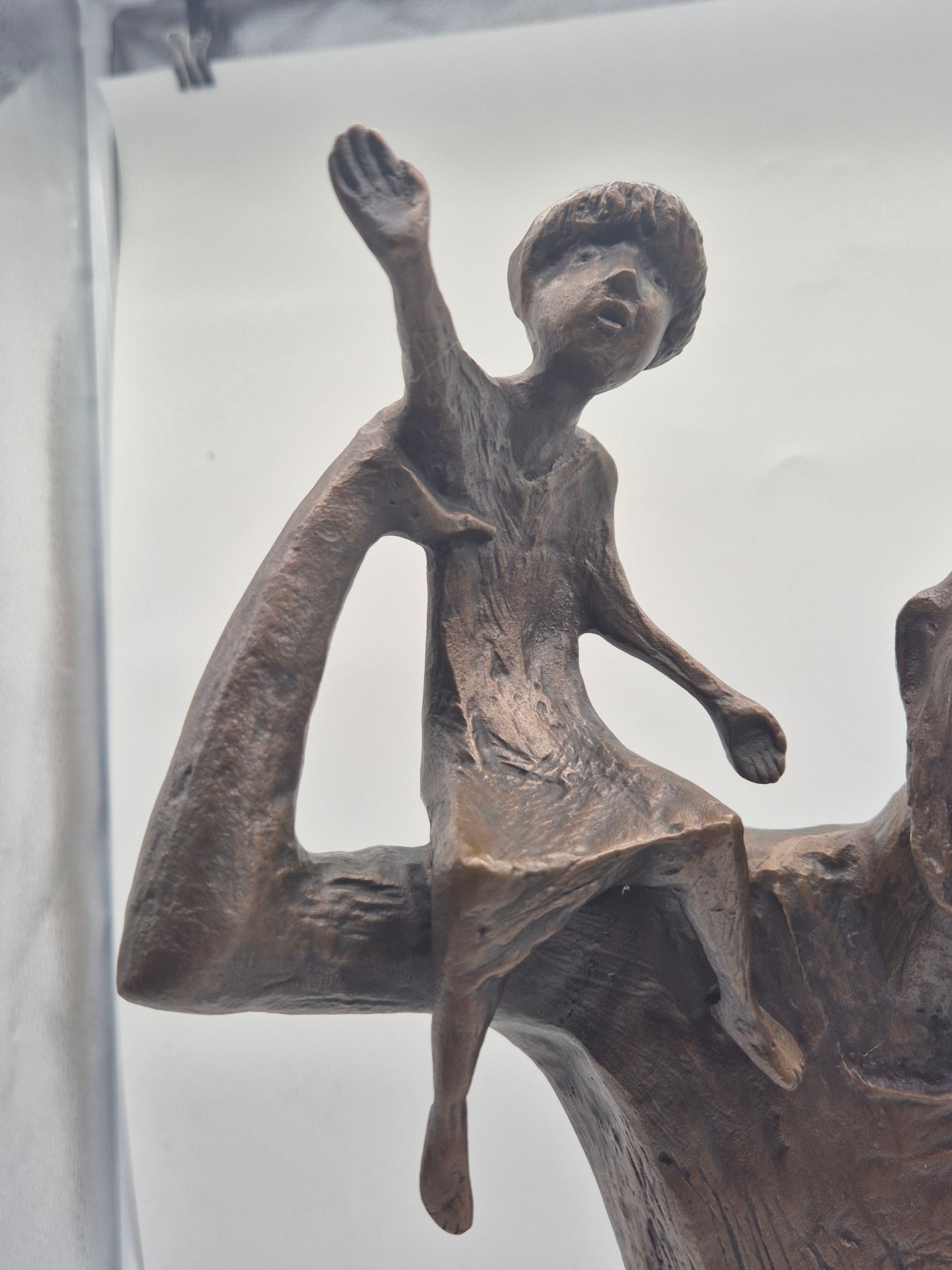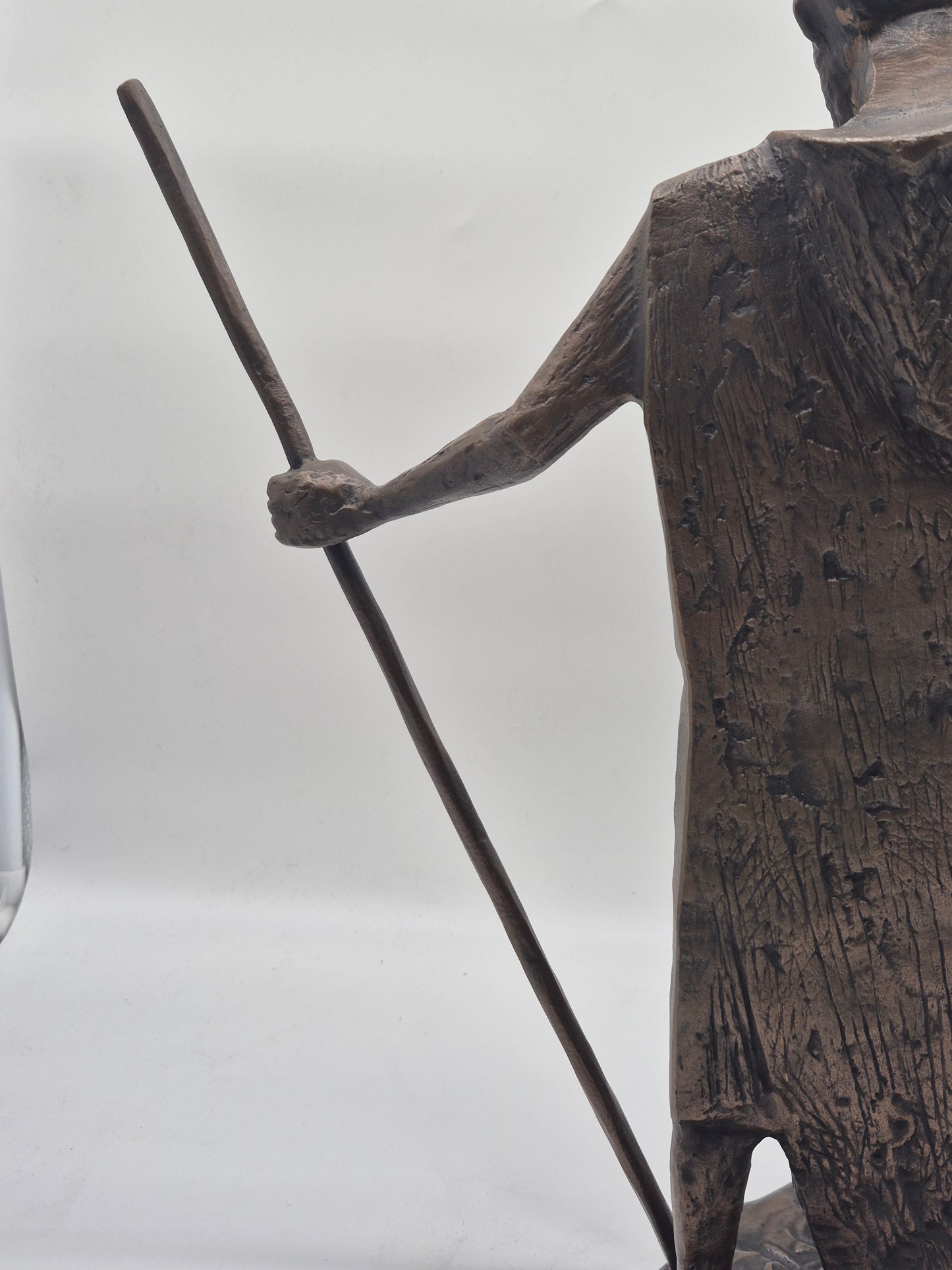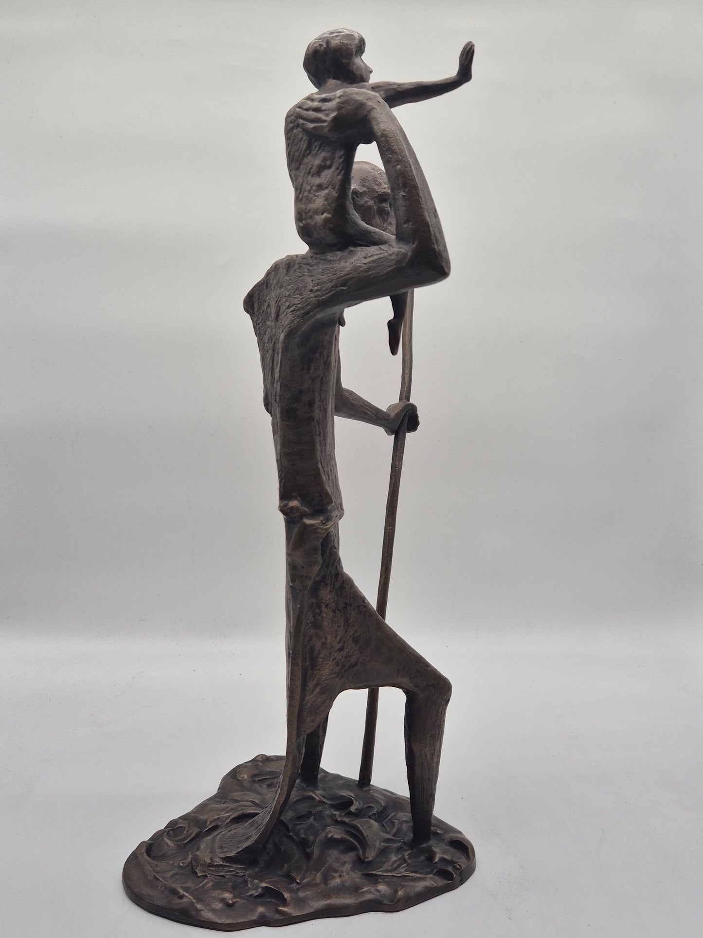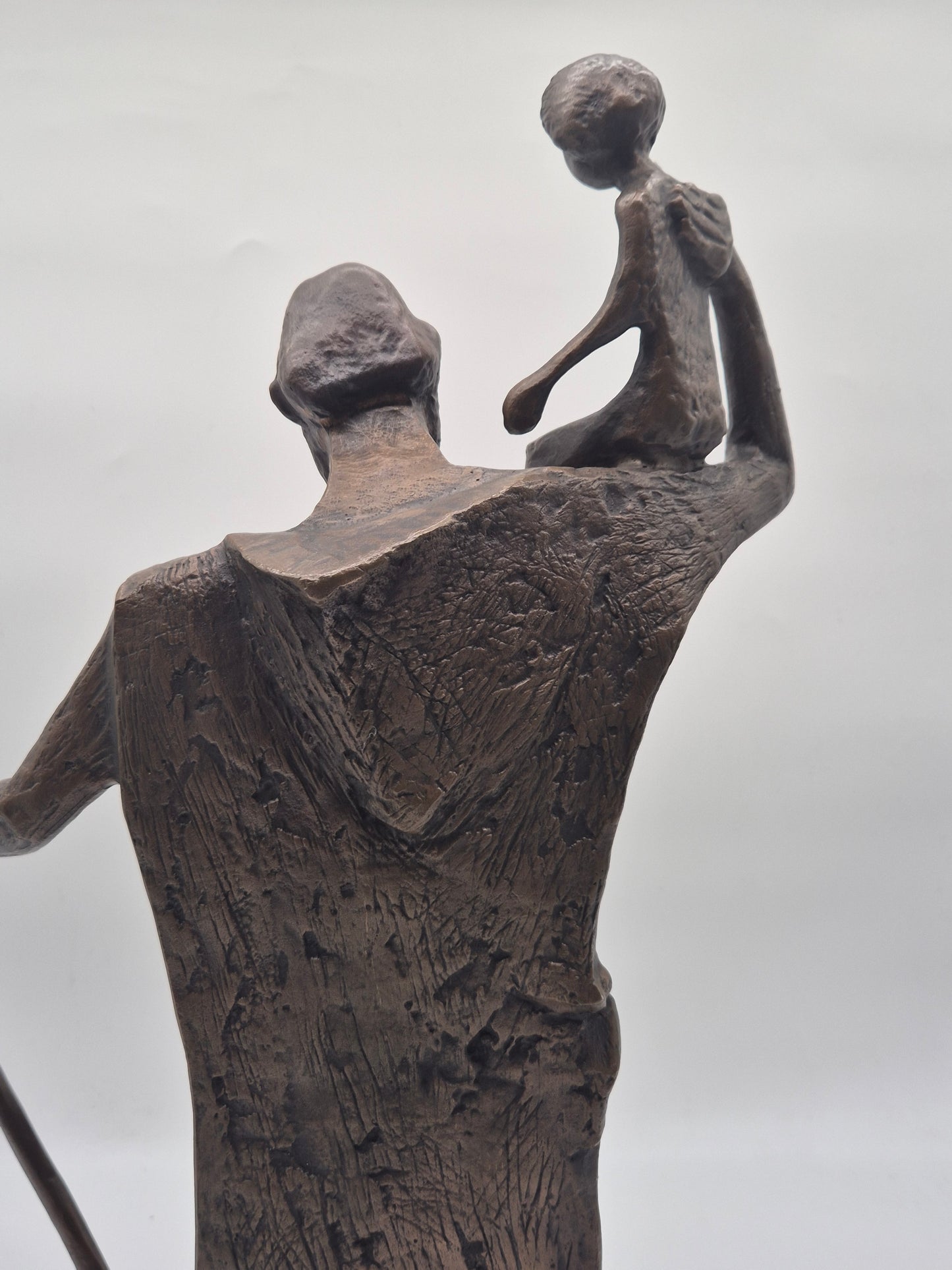 Tauchen Sie ein in die Welt der Urzeit mit dieser beeindruckenden Bronzeskulptur „Hl. Christophorus mit dem Jesuskind”. Diese meisterhaft gearbeitete Skulptur fängt einen kraftvollen Moment ein: Ein prähistorischer Mensch trägt schützend sein Kind auf der Schulter, während er mit festem Griff einen Stock in der Hand hält. Die eindrucksvolle Größe von 55 cm Höhe und 43 cm Breite, gepaart mit einem Gewicht von ca. 20 kg, verleiht dieser Skulptur eine beeindruckende Präsenz.