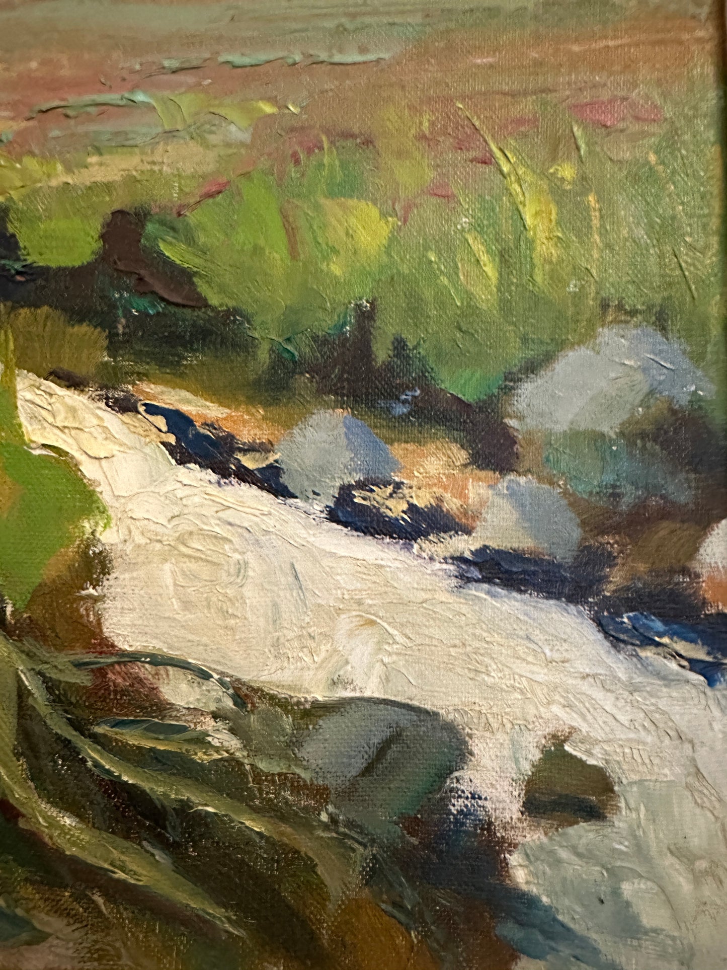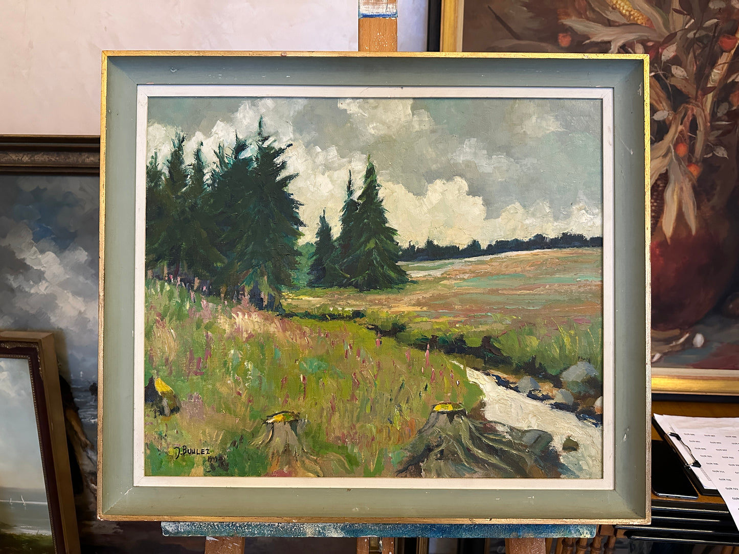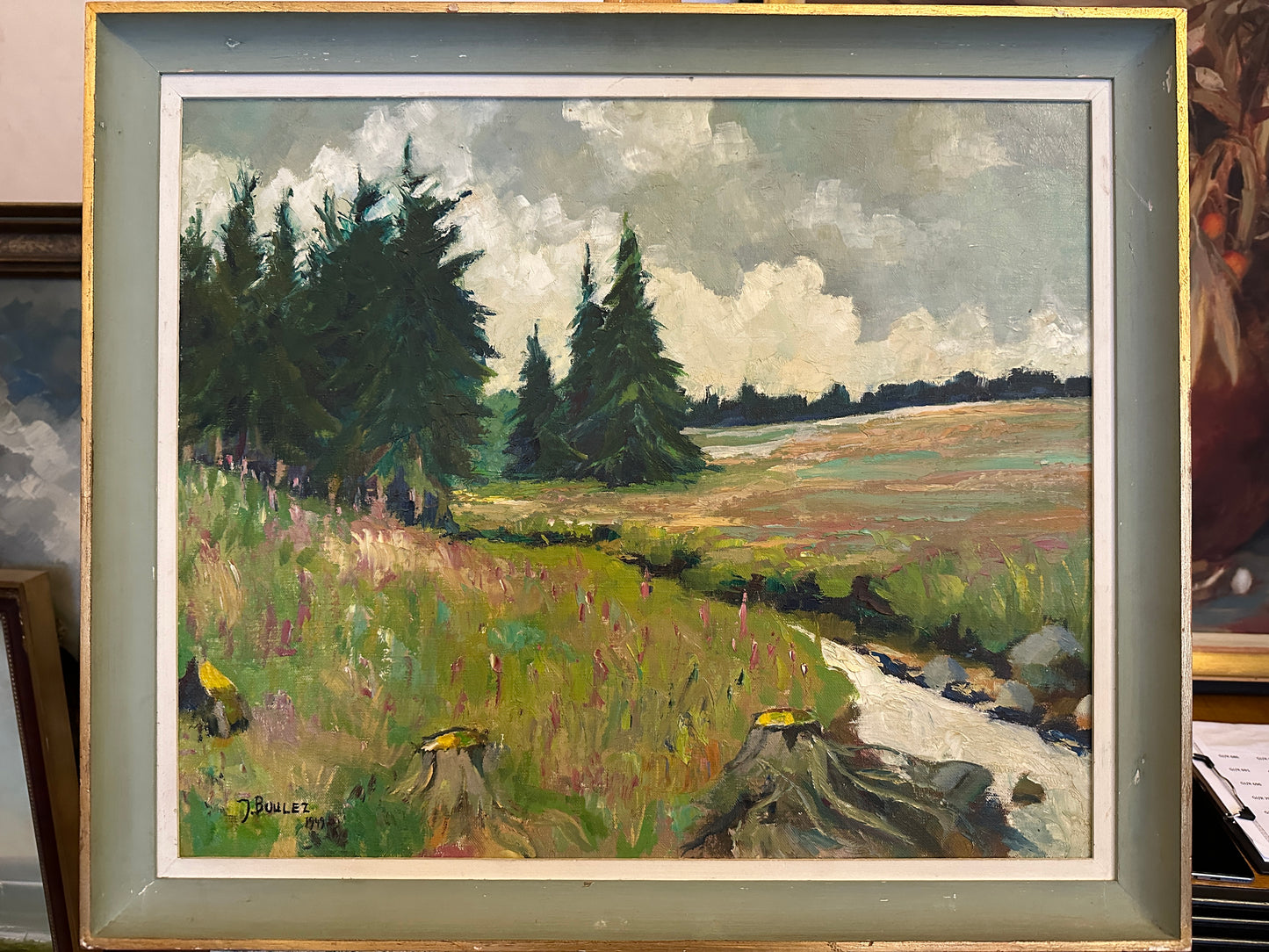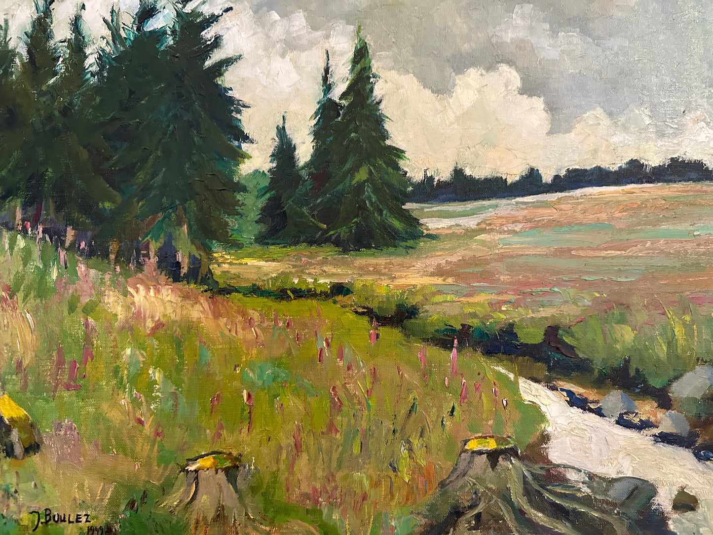 J. Boulez (XX) Ölgemälde Interessante Landschaft mit Tannen und Bach