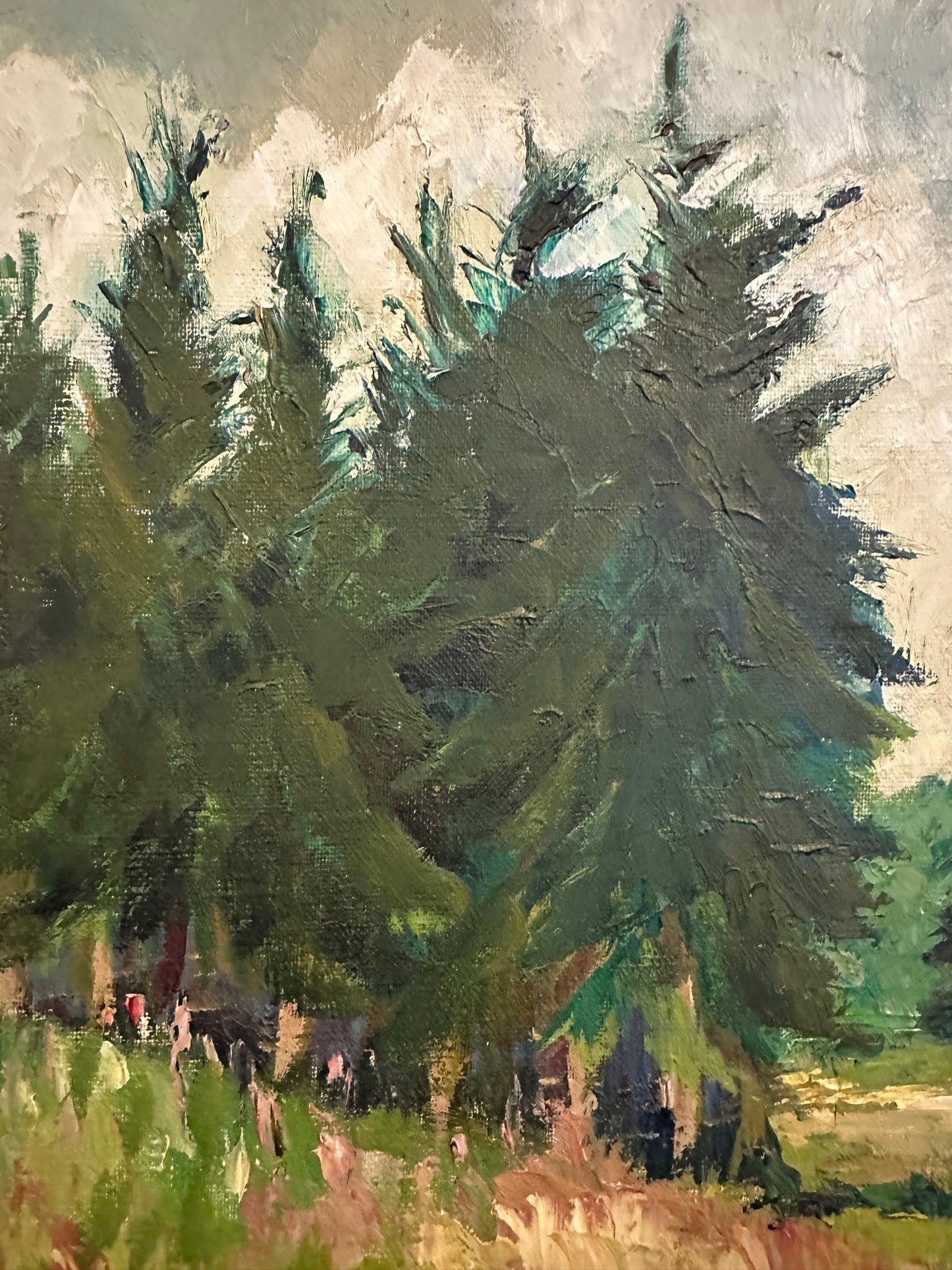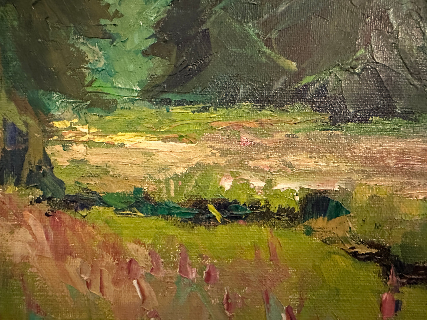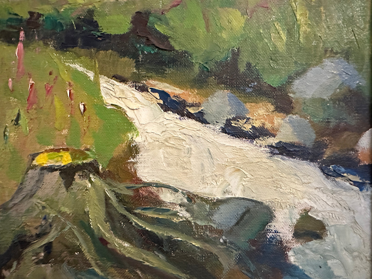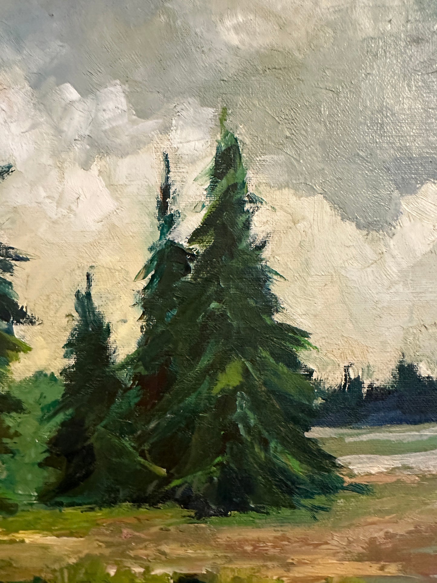 J. Boulez (XX) Ölgemälde Interessante Landschaft mit Tannen und Bach