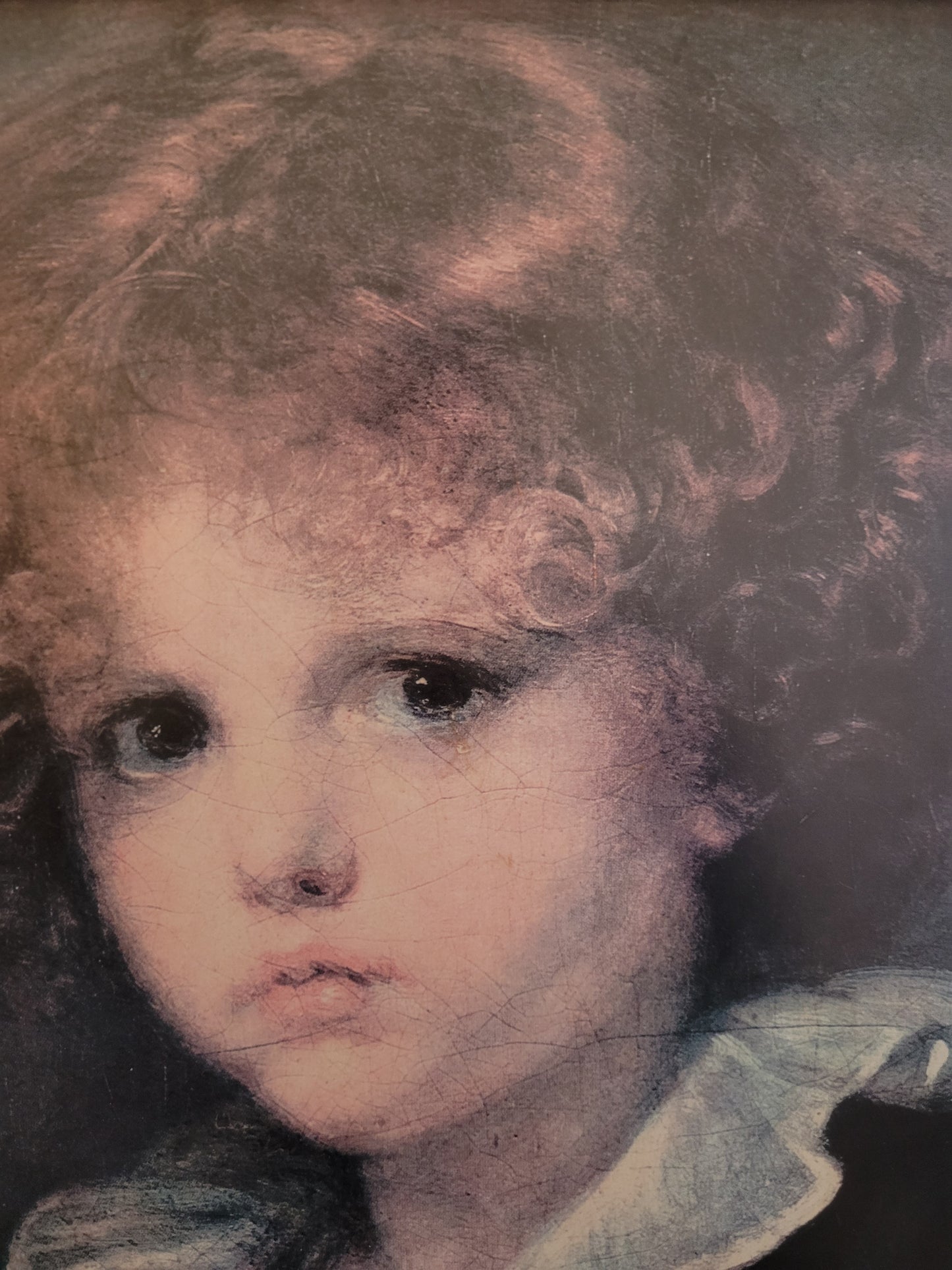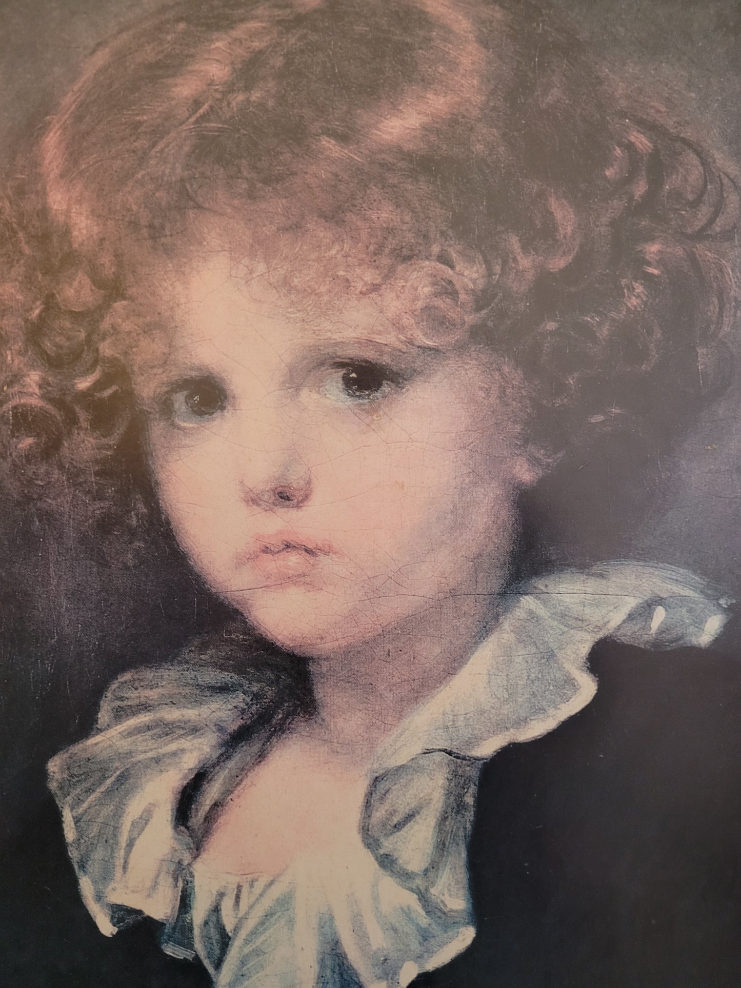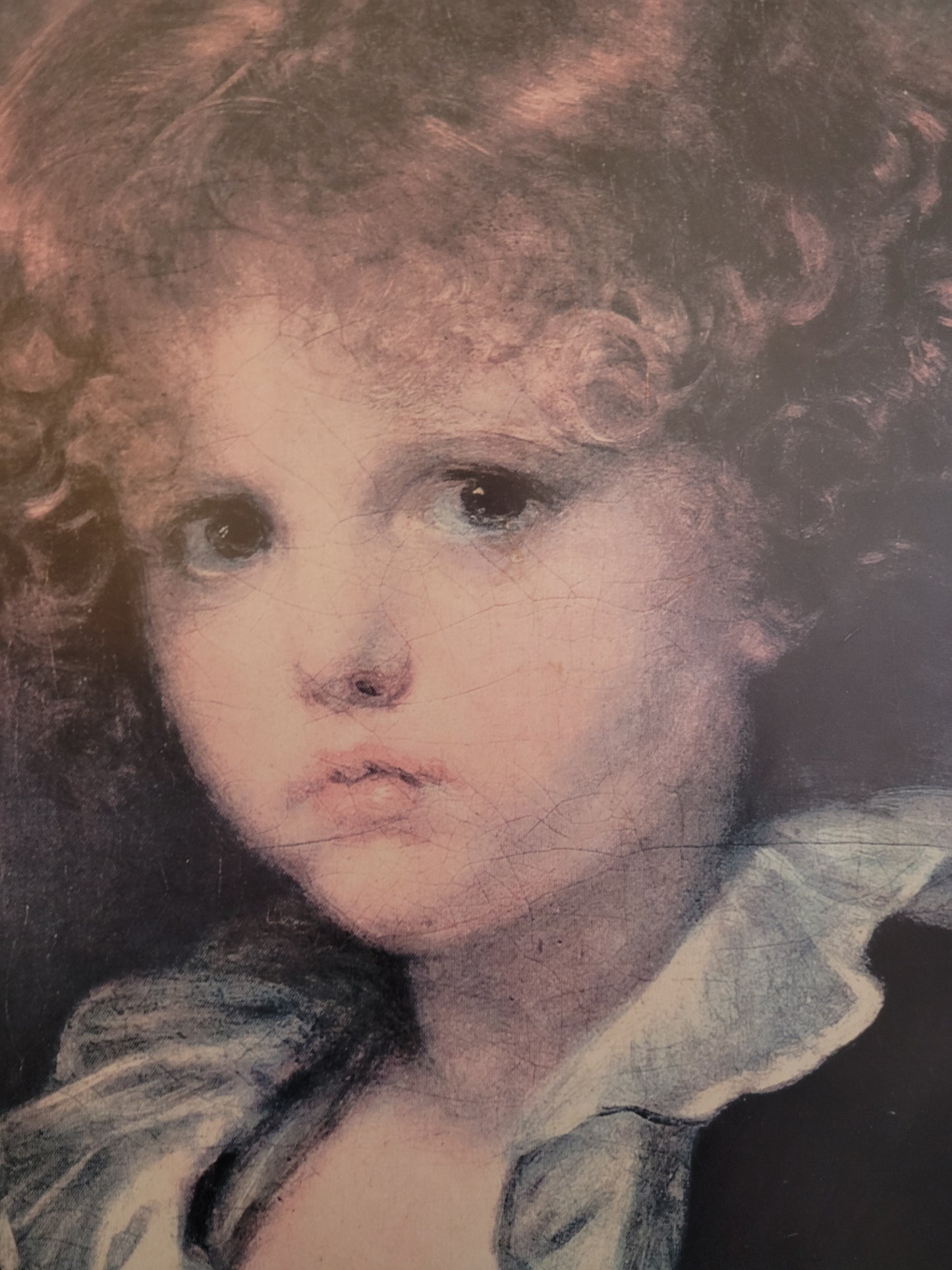 Der hochwertige Druck bringt die zarten Farbtöne und die feine Pinselführung des Originals beeindruckend zur Geltung. Der Junge, mit seinen sanften Gesichtszügen und dem lebhaften Ausdruck, scheint direkt aus der Leinwand zu schauen, was dem Betrachter eine unmittelbare und persönliche Begegnung mit dem Kunstwerk ermöglicht.