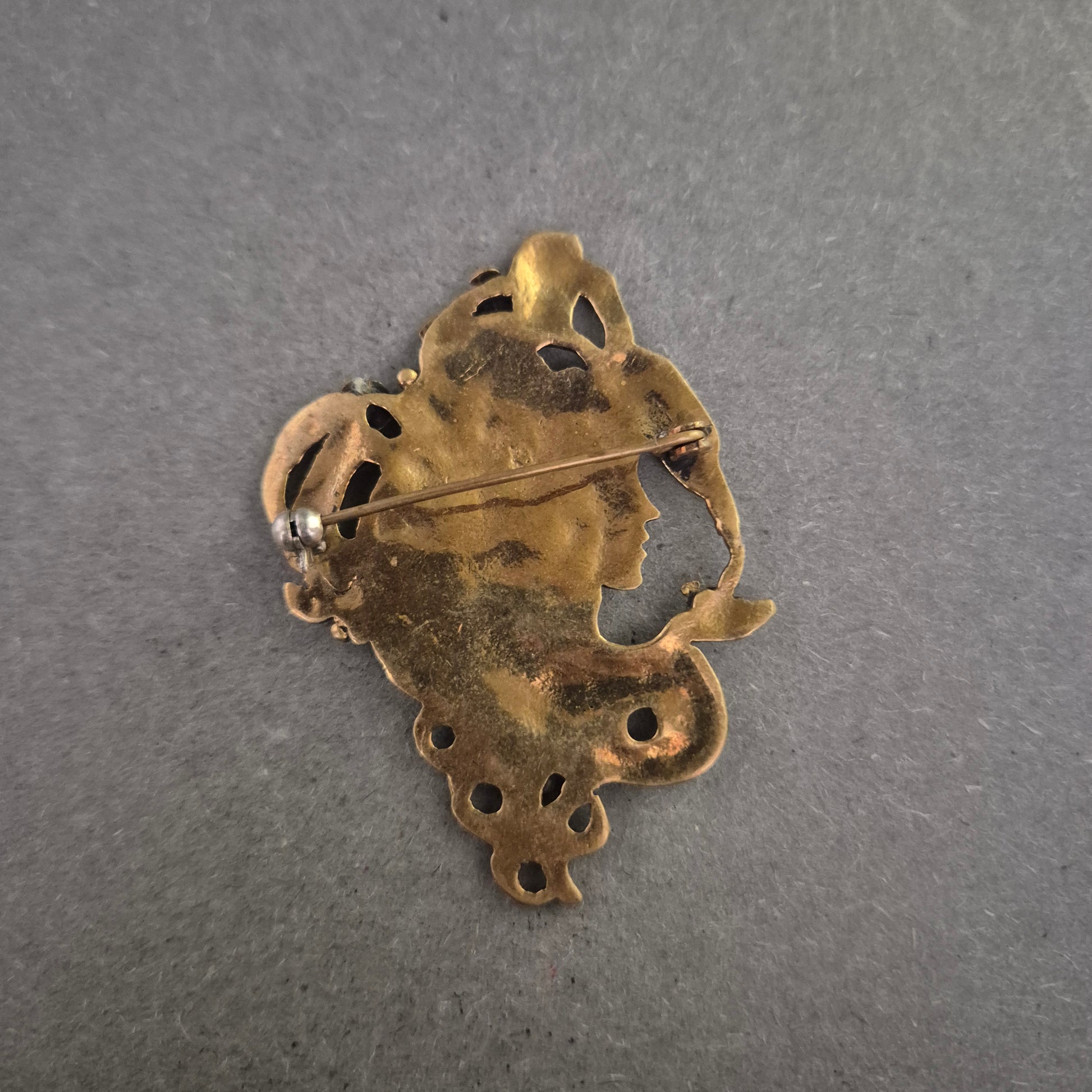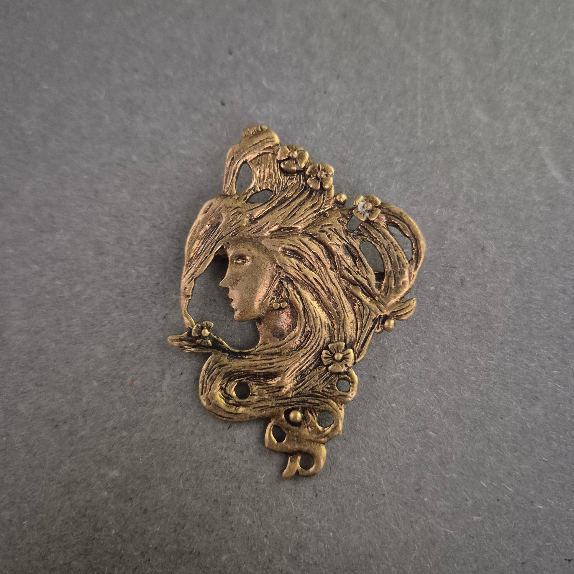 Jugendstil-Brosche mit Frauenmotiv – Antik-Look in Bronzeoptik