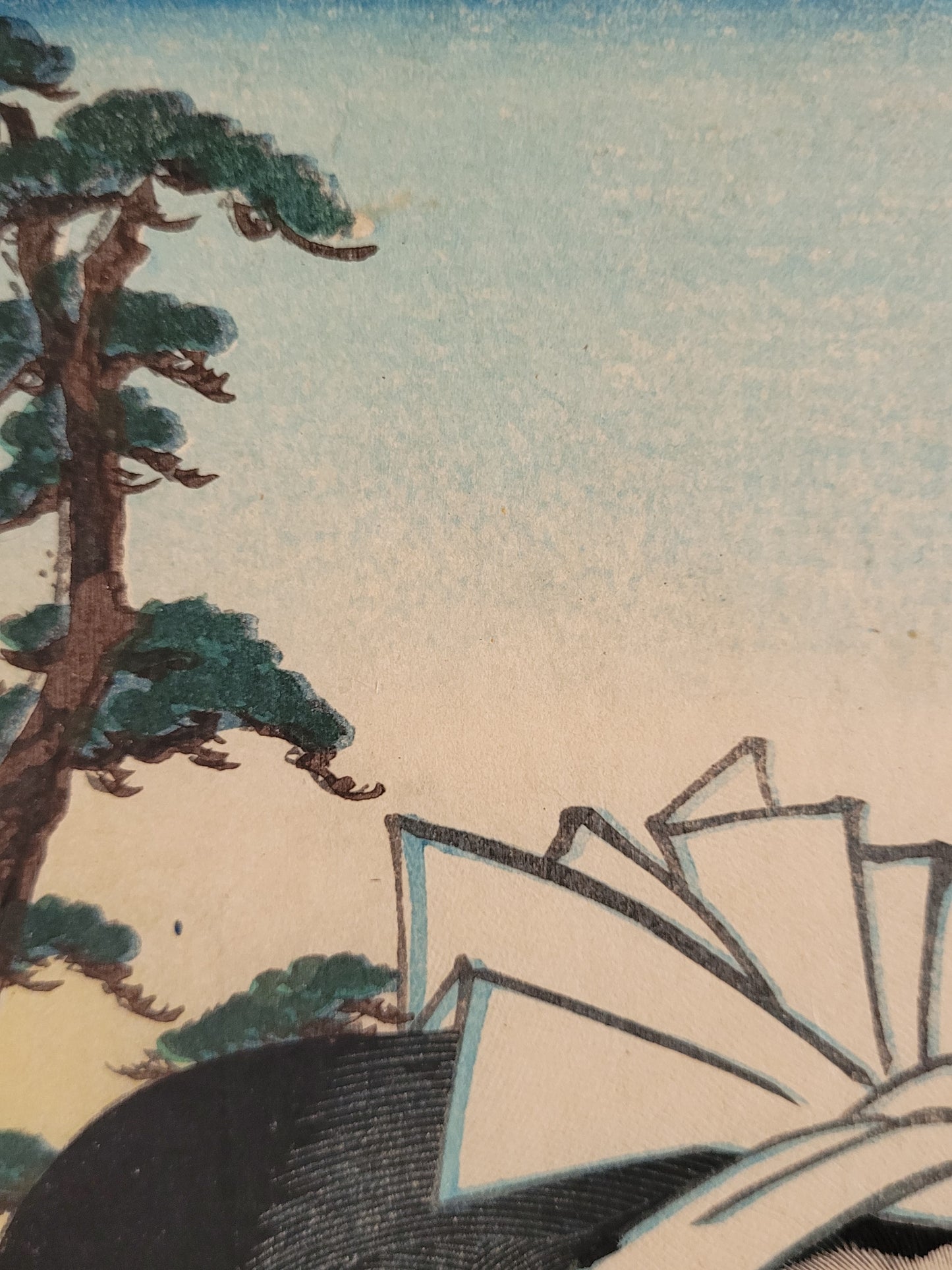 Tauchen Sie ein in die faszinierende Welt des japanischen Theaters und holen Sie sich ein Stück kulturelle Geschichte in Ihr Zuhause. Dieser Holzschnitt wird zweifellos das Interesse und die Bewunderung aller Kunstliebhaber wecken und Ihrem Raum eine einzigartige künstlerische Note verleihen.