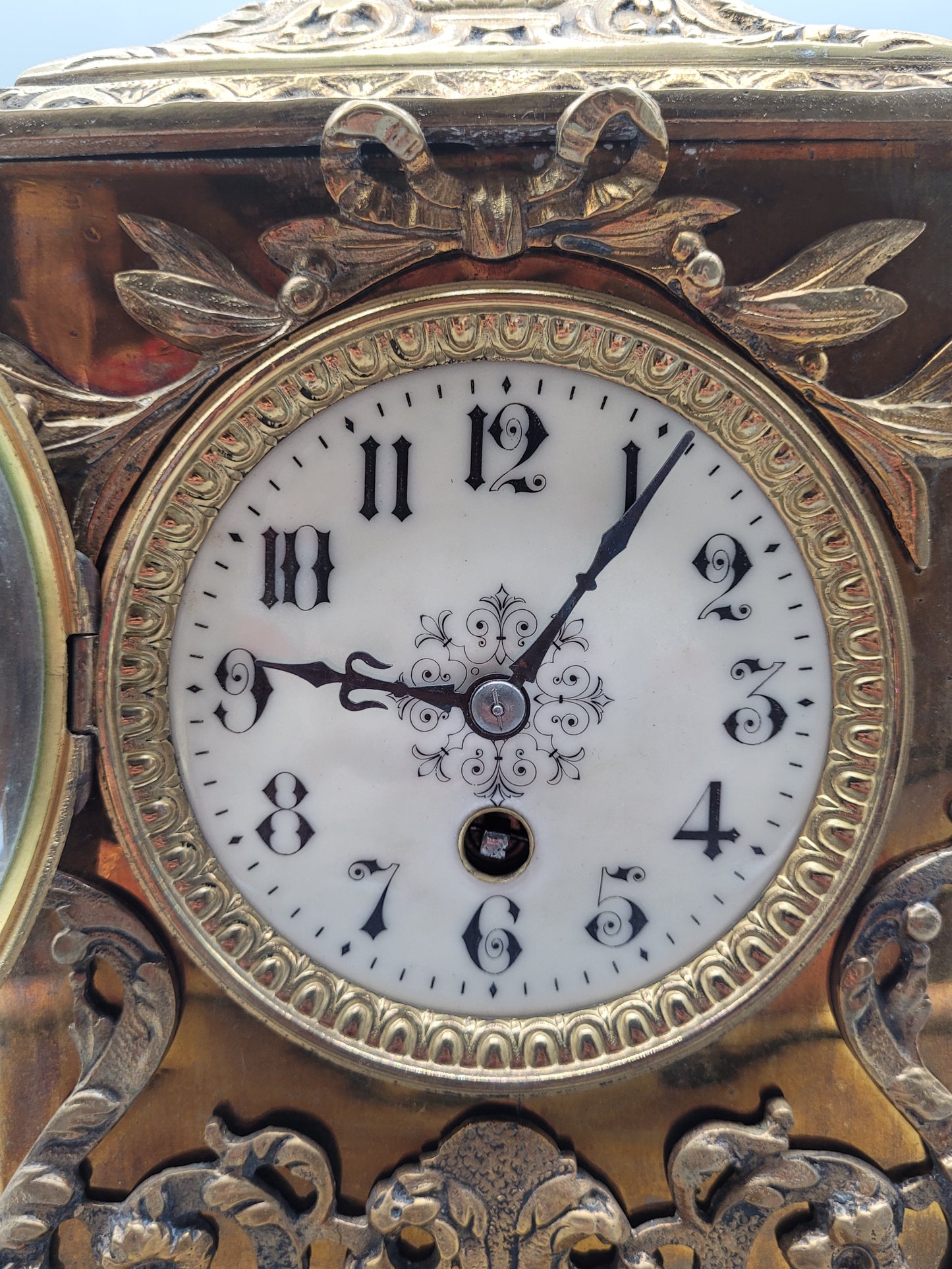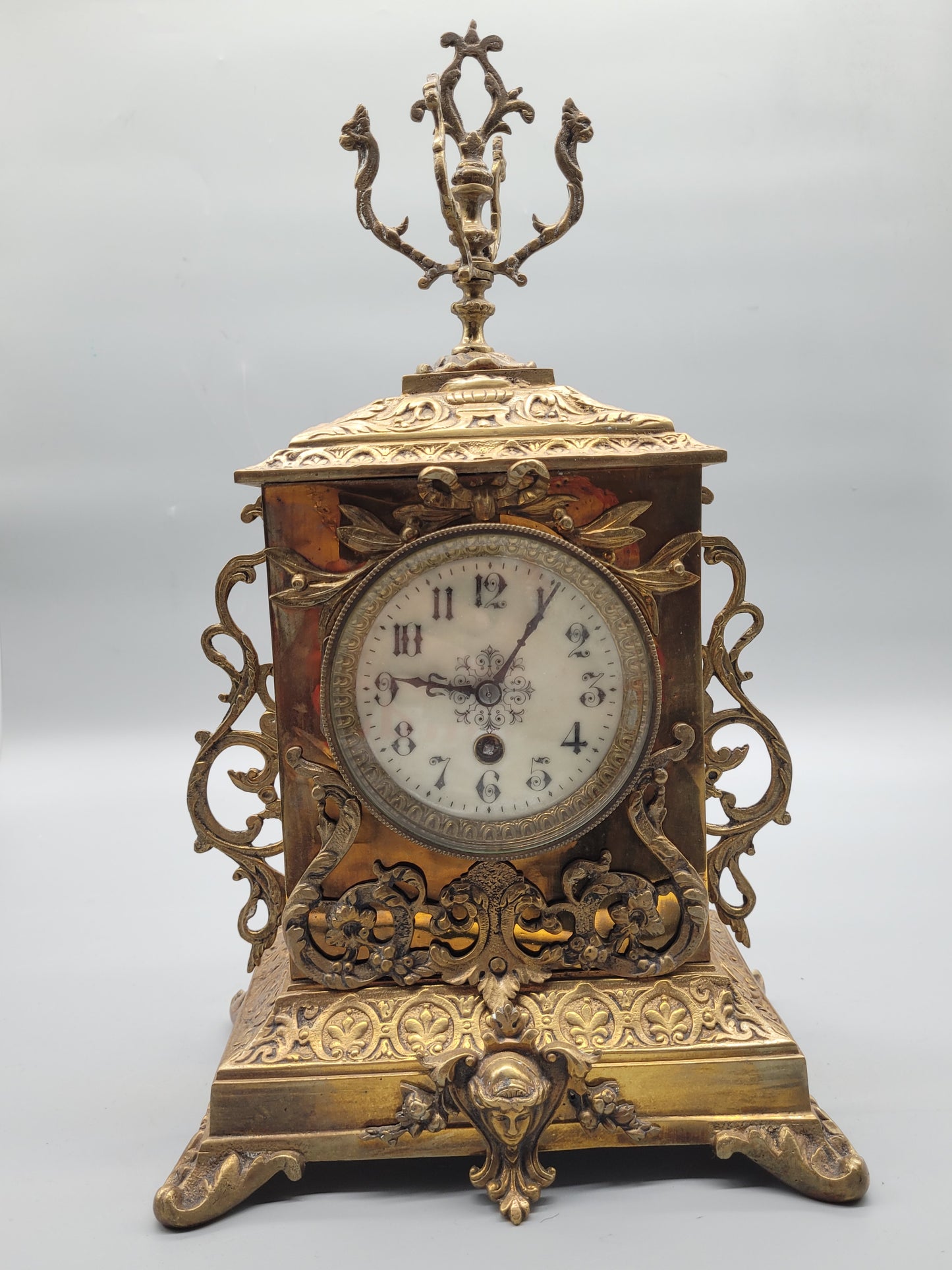 Reich verzierte Viktorianische Tisch-/Kaminuhr, Goldbronze