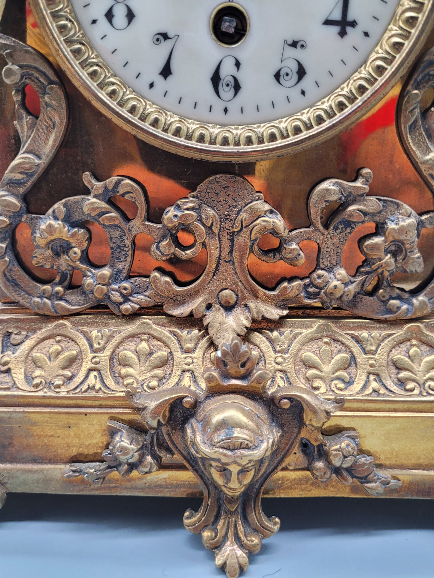 Viktorianische Tisch-/Kaminuhr, Goldbronze und Marmor