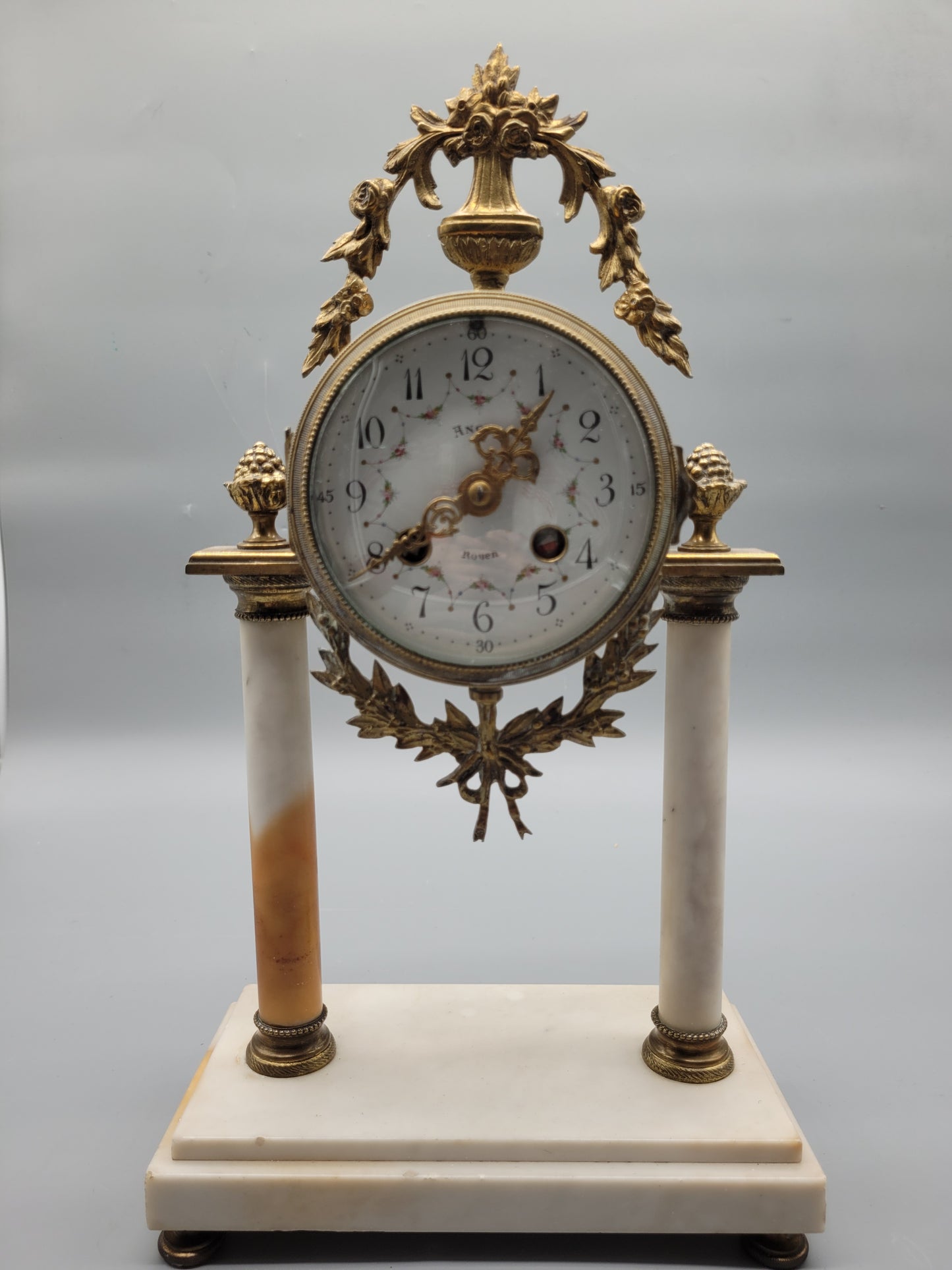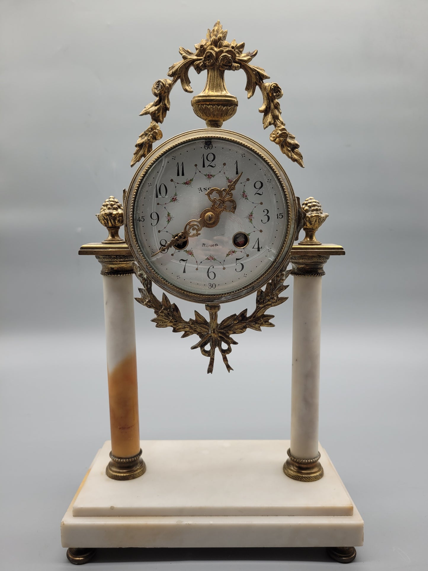 Französische Louis Seize Portal-/Kaminuhr, Ormolu und Marmor