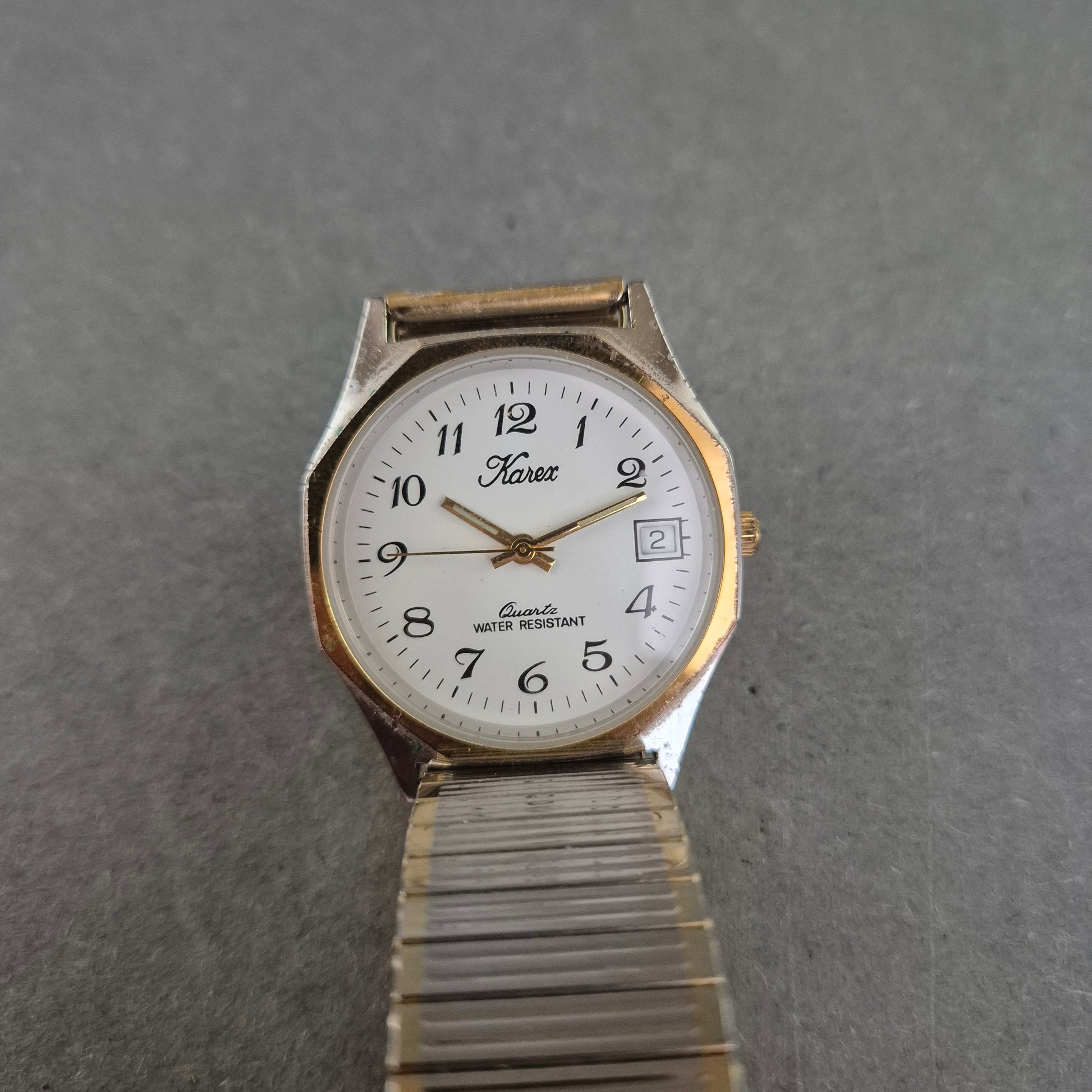 Diese Herrenarmbanduhr von Karex vereint klassisches Design mit funktionaler Ausstattung. Das weiße Zifferblatt ist mit arabischen Zahlen gut ablesbar gestaltet und verfügt über eine praktische Datumsanzeige. Das zweifarbige Flexband aus Metall sorgt für hohen Tragekomfort und einfaches Anlegen – ideal für den Alltag.