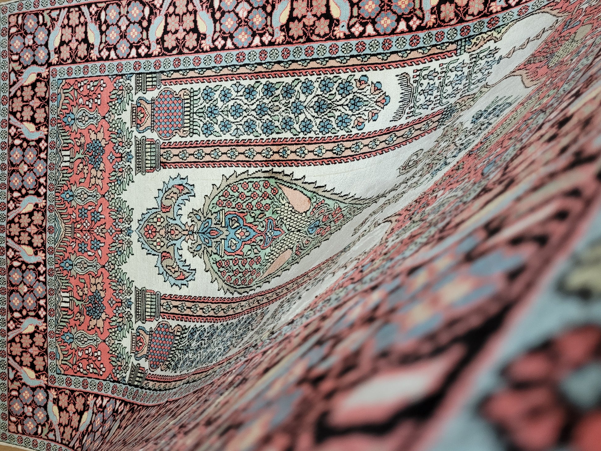 Kaschmir Seidenteppich Gebetsteppich feine Handknüpfung
