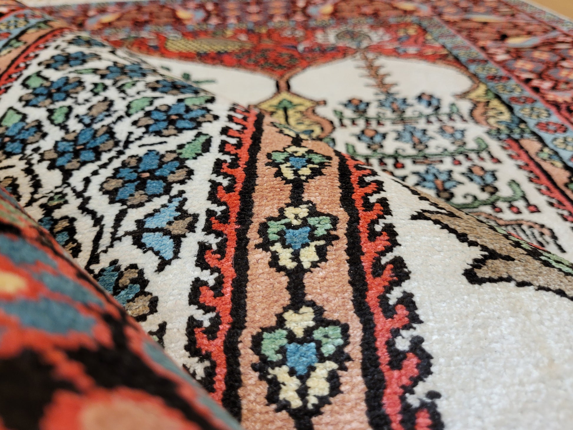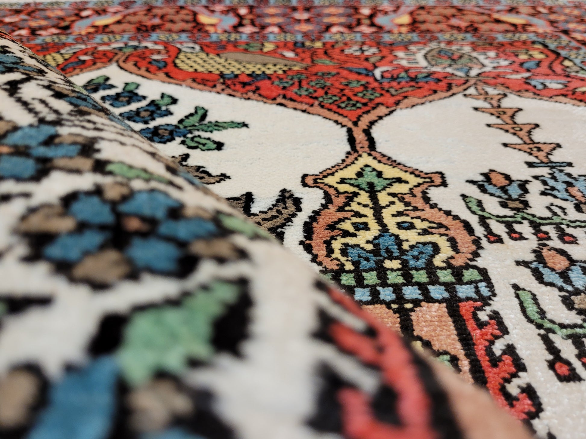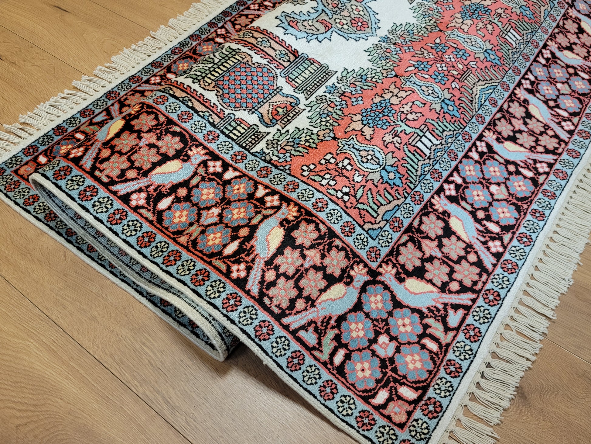 • Verarbeitung: kunstvolle Seidenknüpfung, glänzende Oberfläche, hoher Detailreichtum