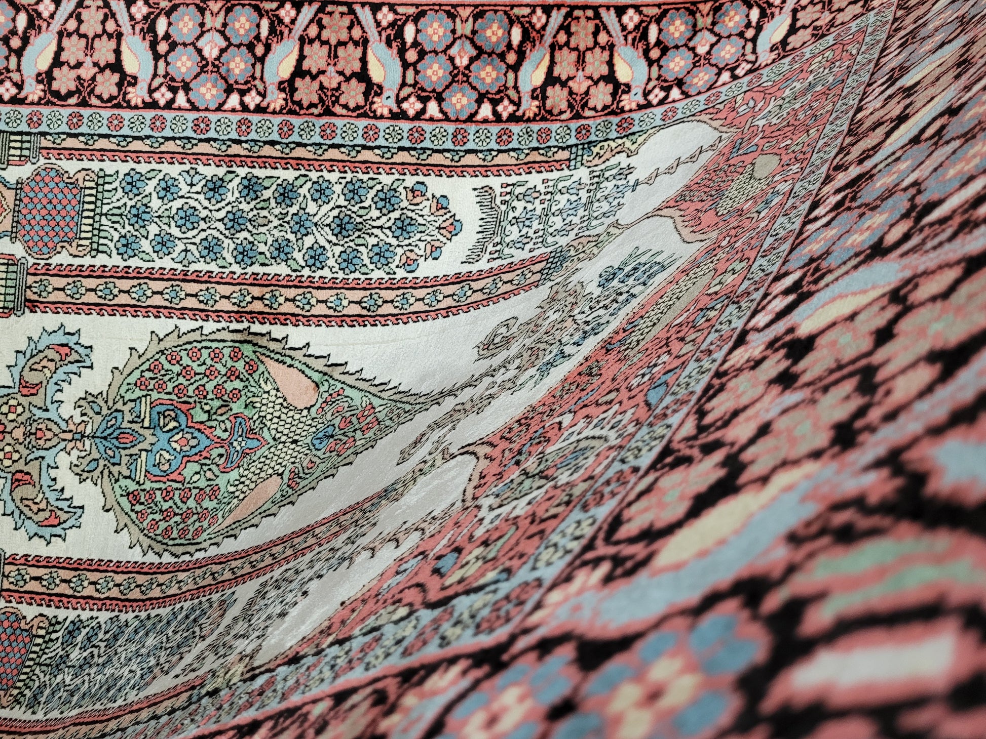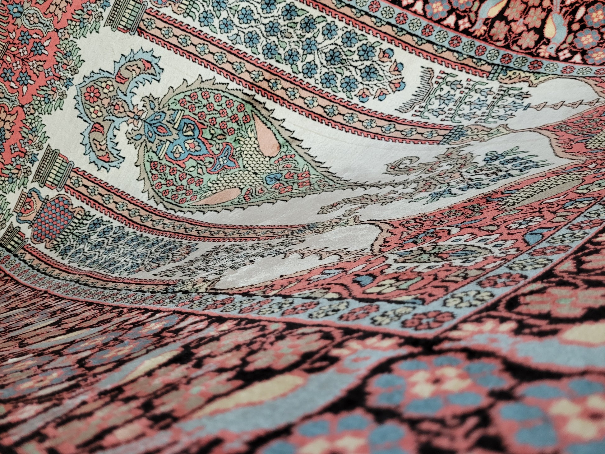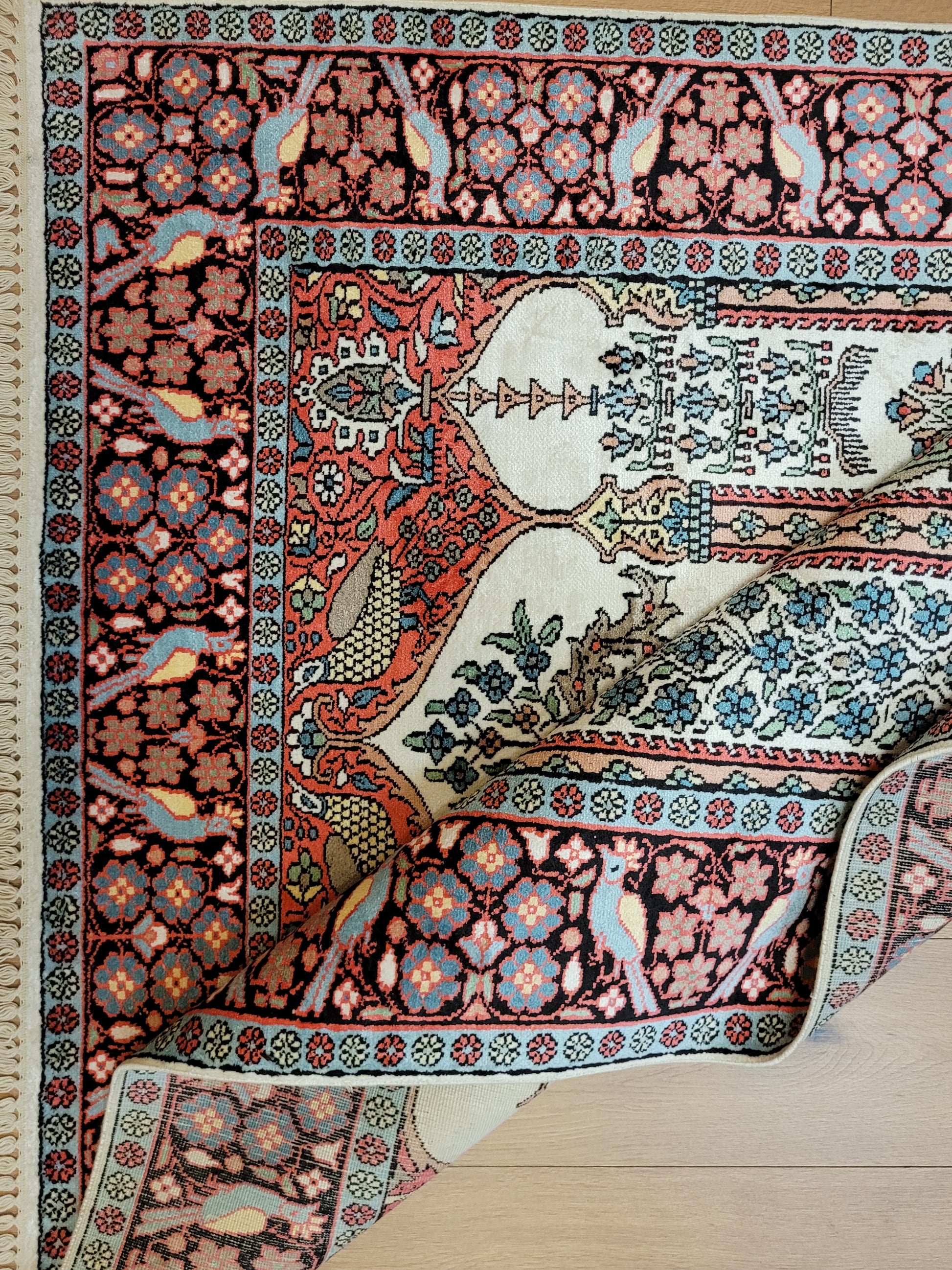 • Verarbeitung: kunstvolle Seidenknüpfung, glänzende Oberfläche, hoher Detailreichtum