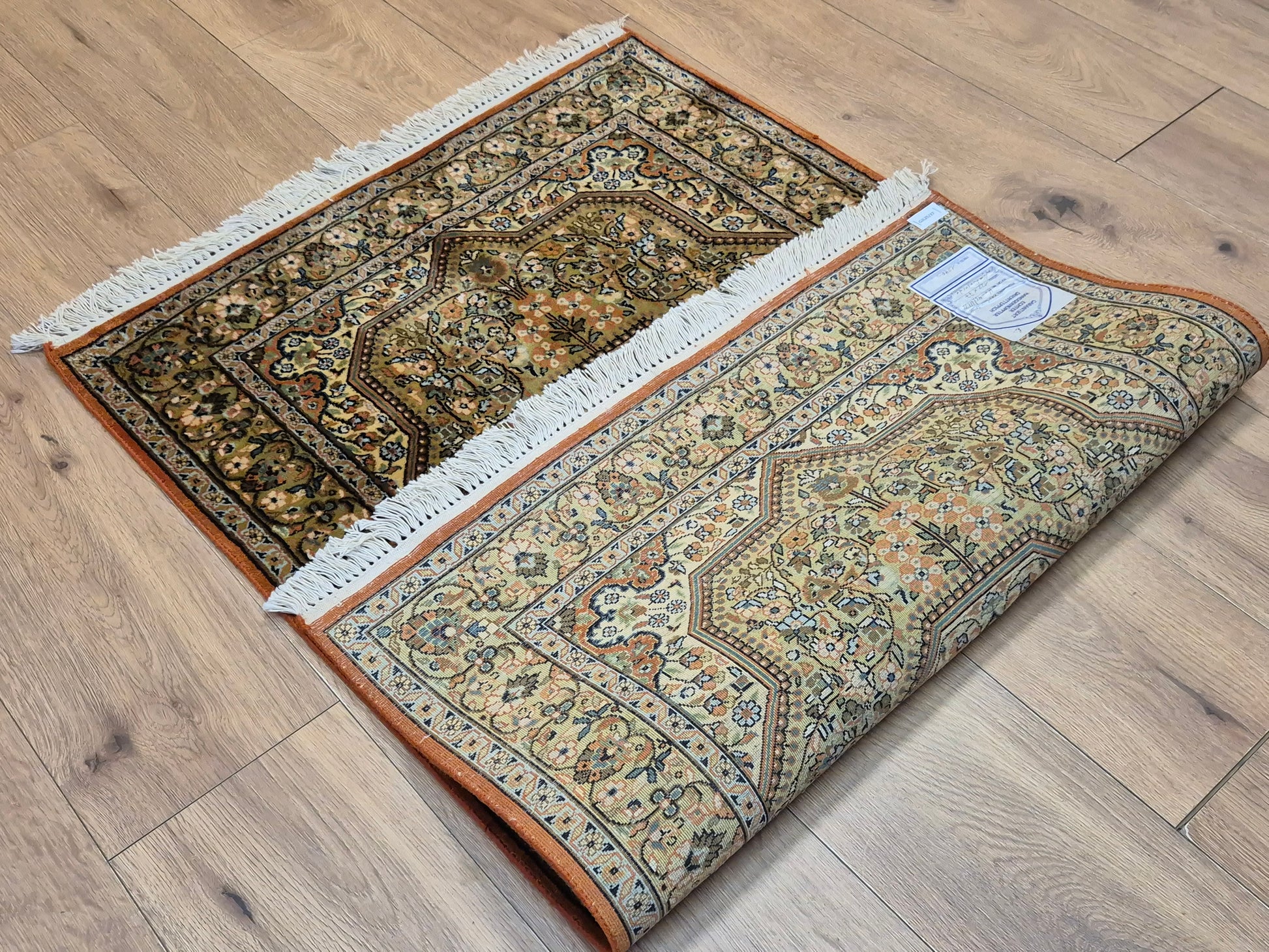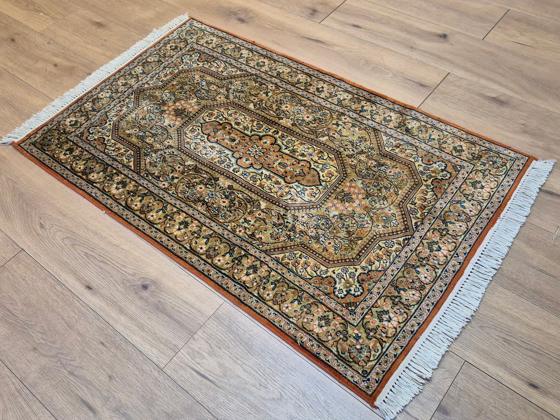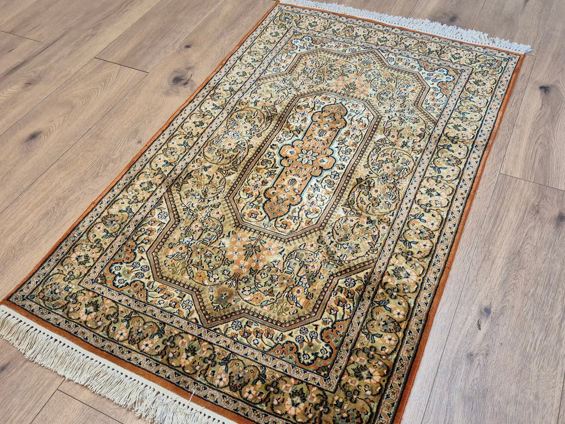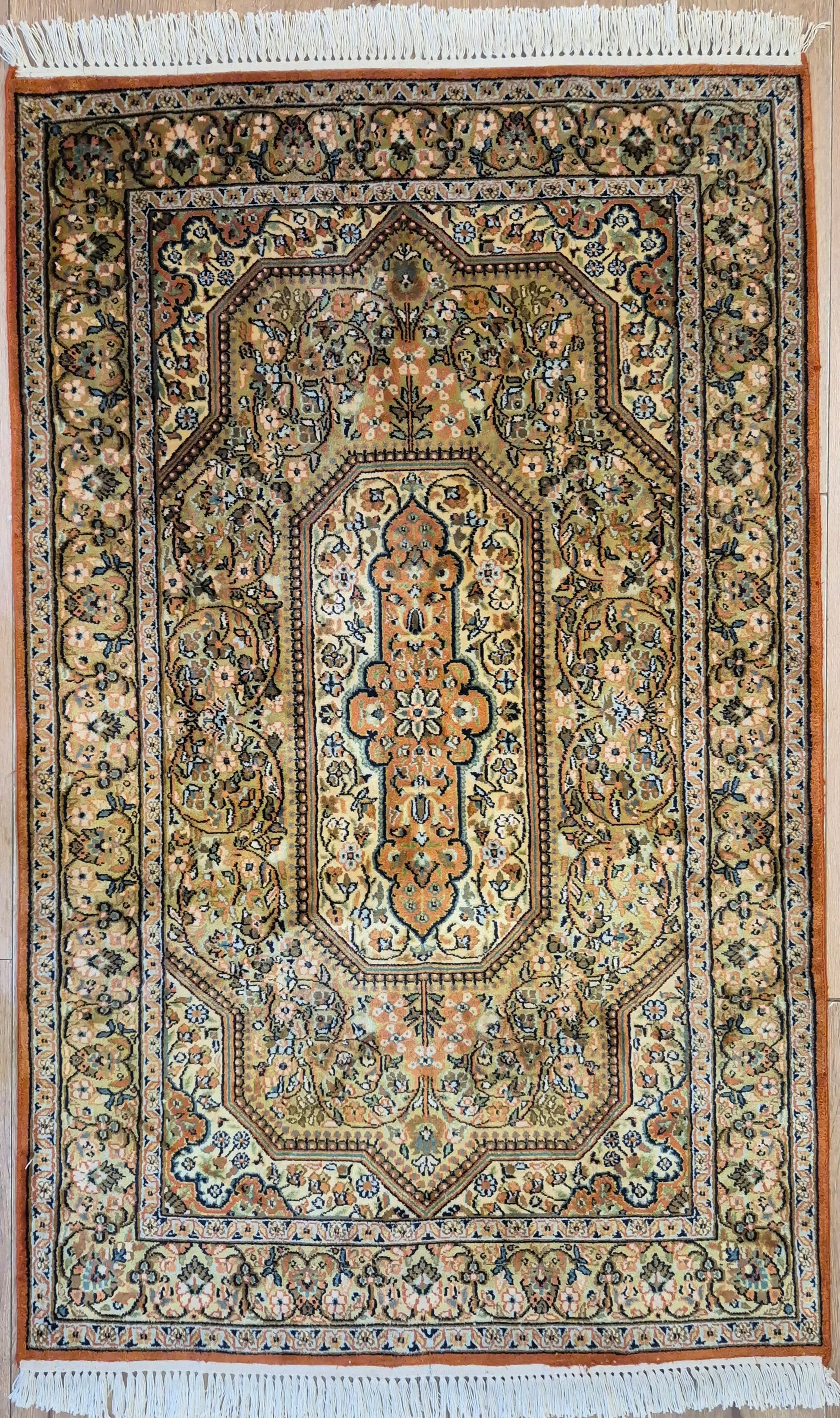 Kaschmir Seidenteppich Naturseide Medaillon fein