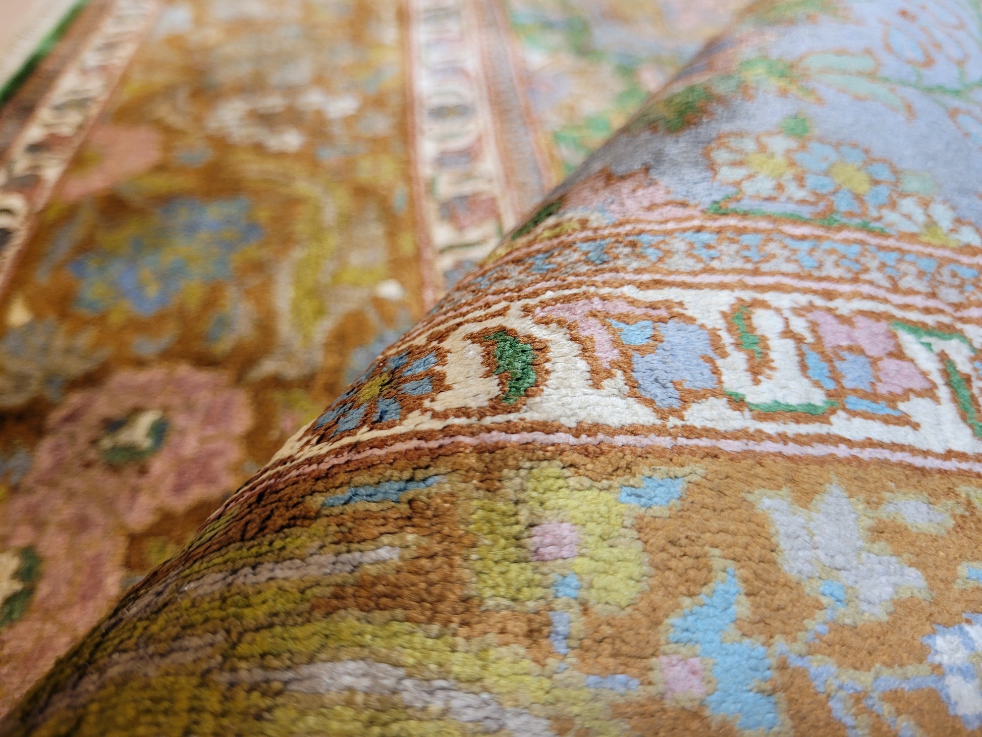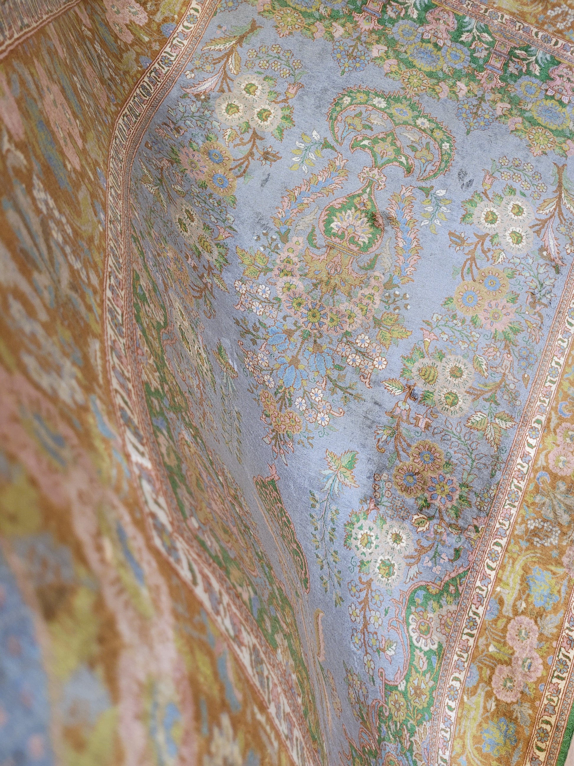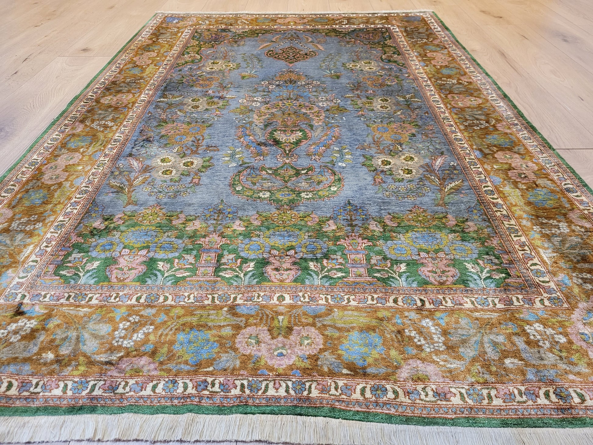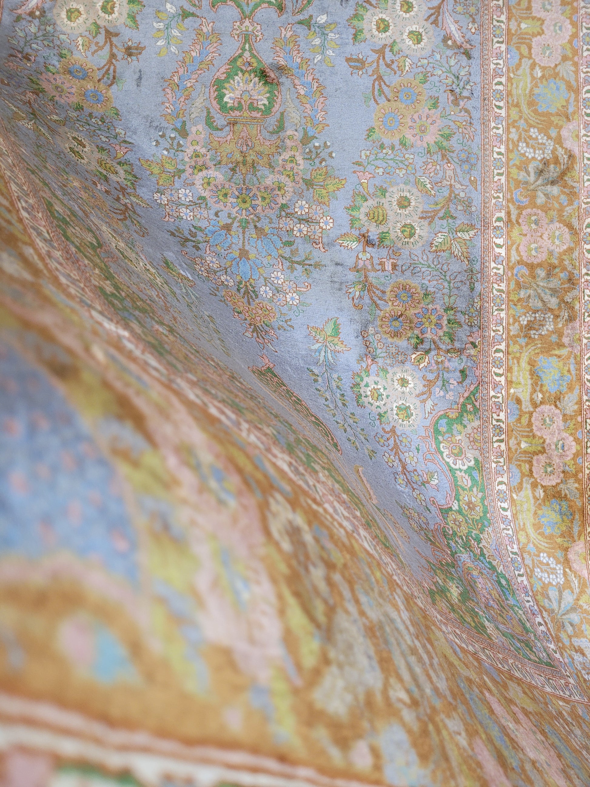 Kaschmir Teppich Naturseide feine Handknüpfung florales Design