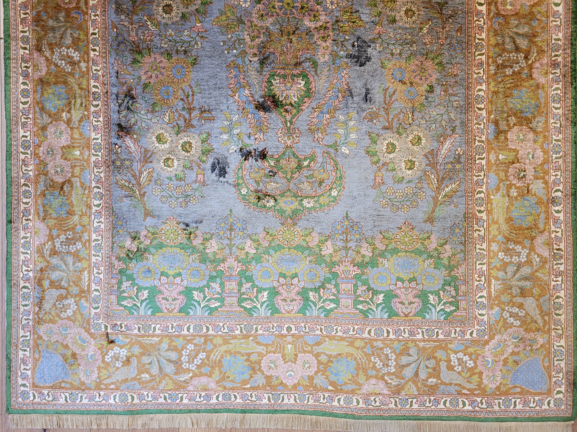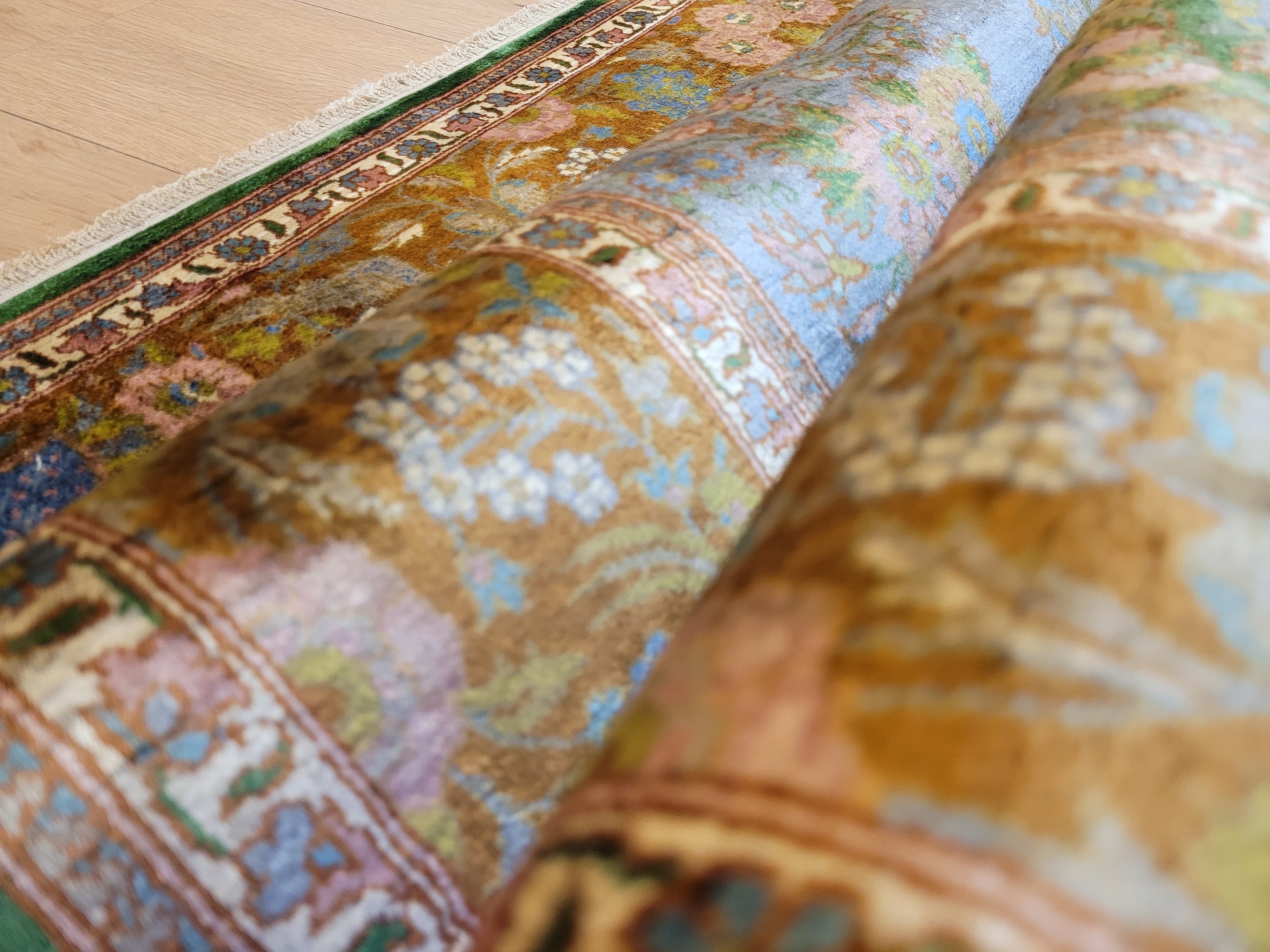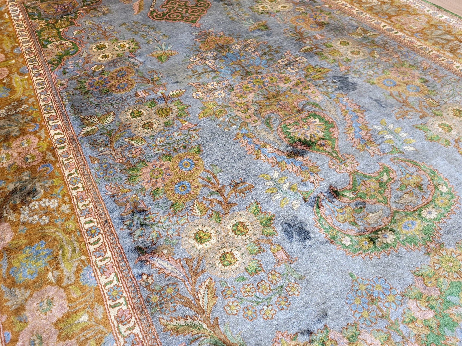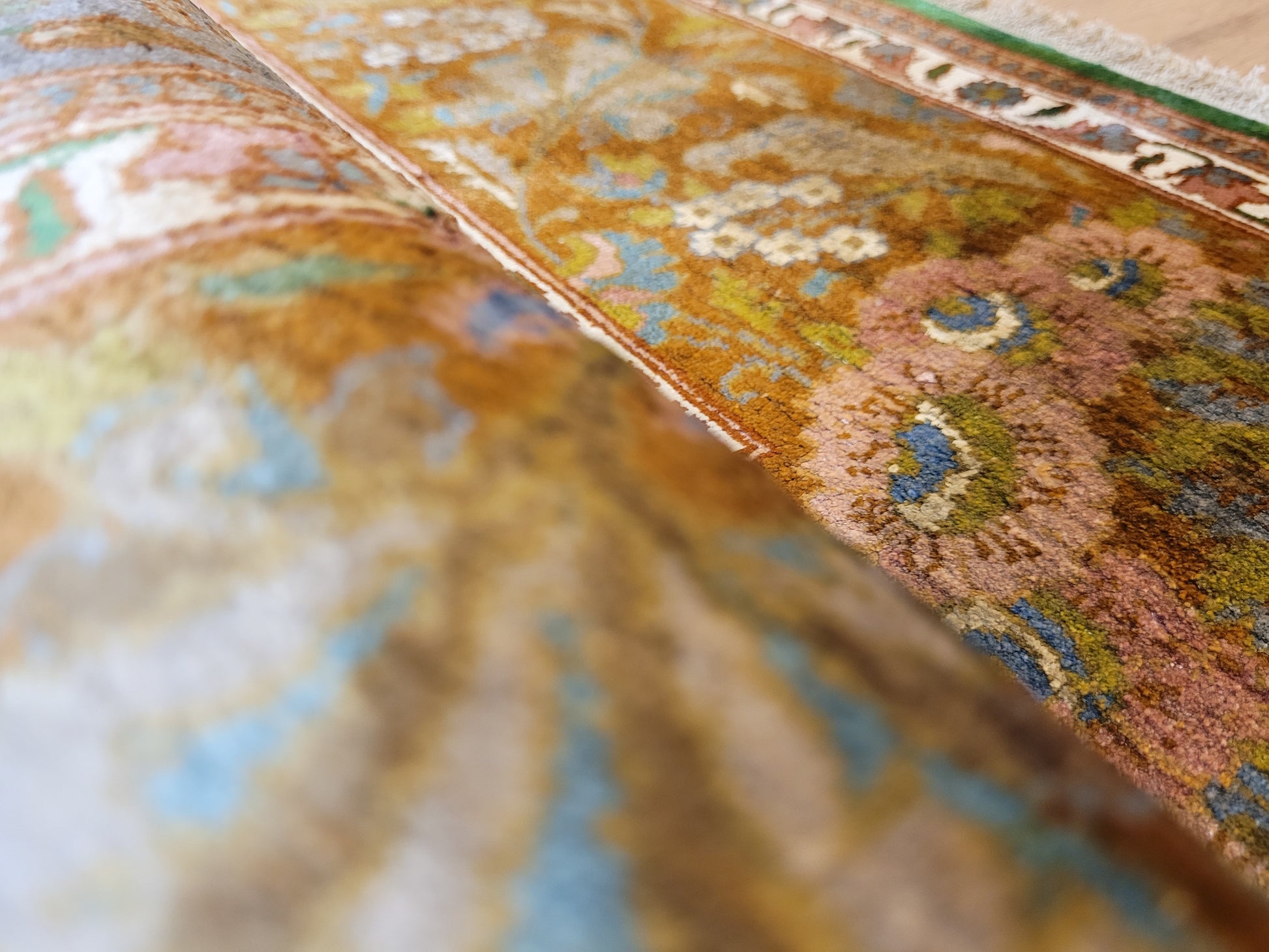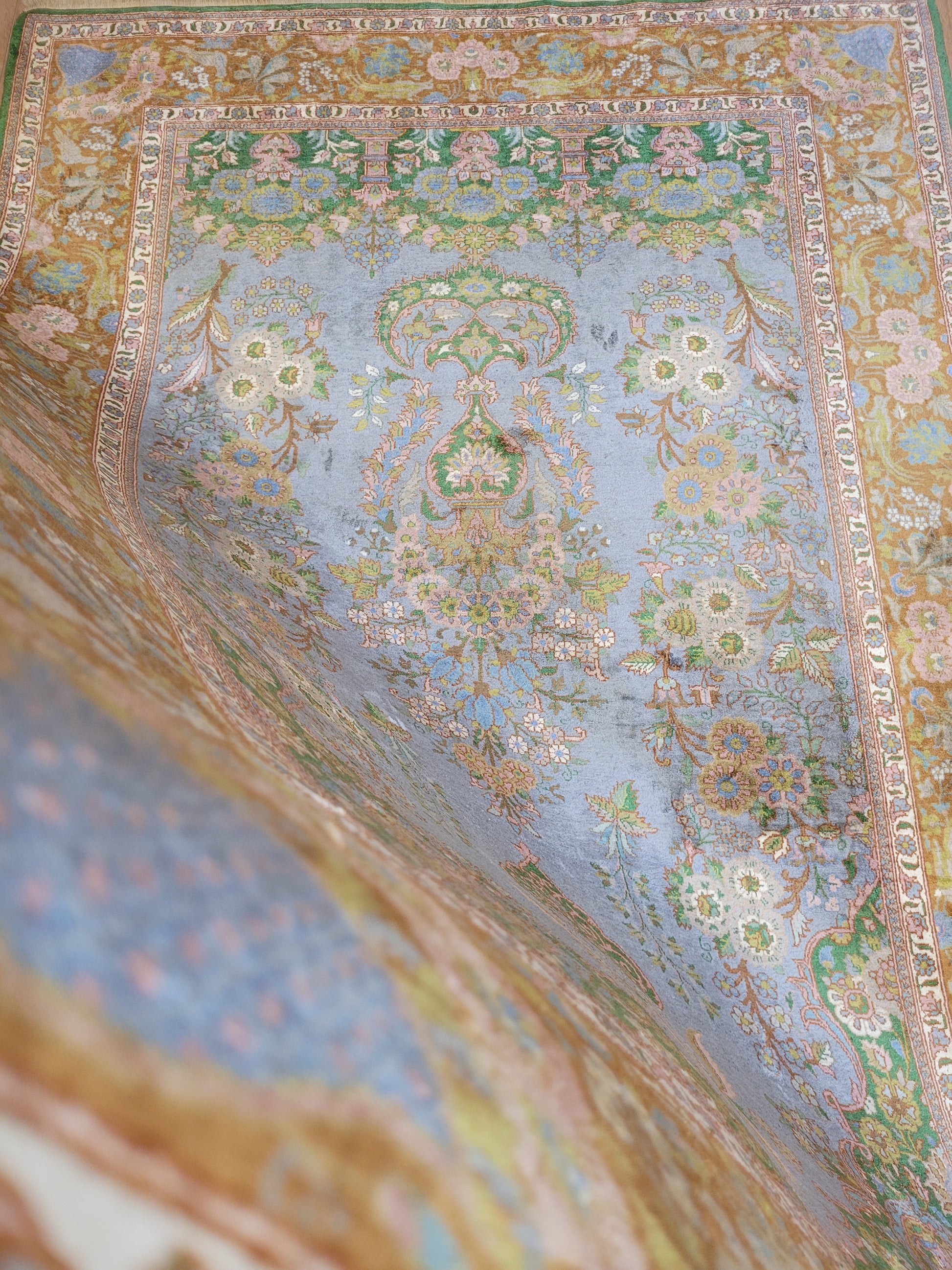 Kaschmir Teppich Naturseide feine Handknüpfung florales Design