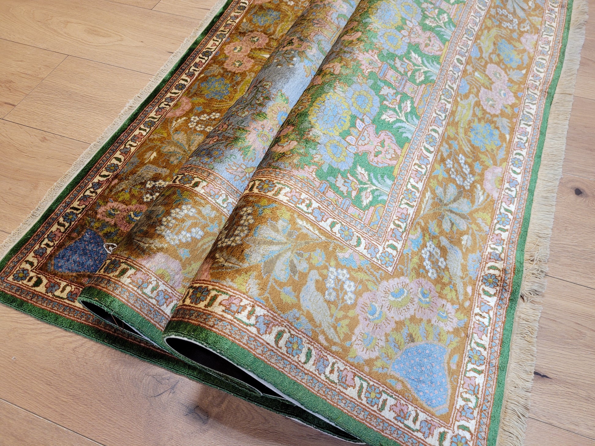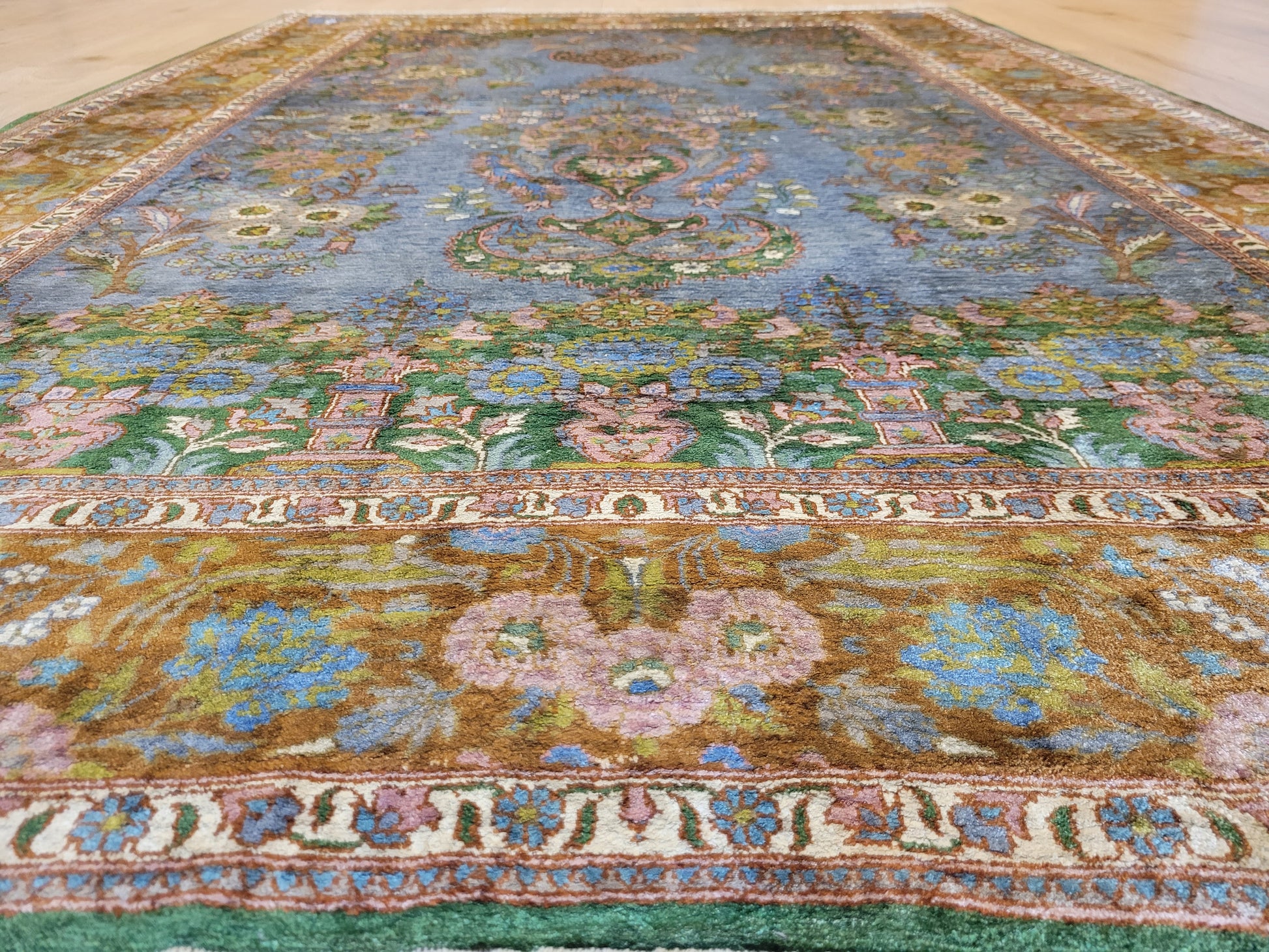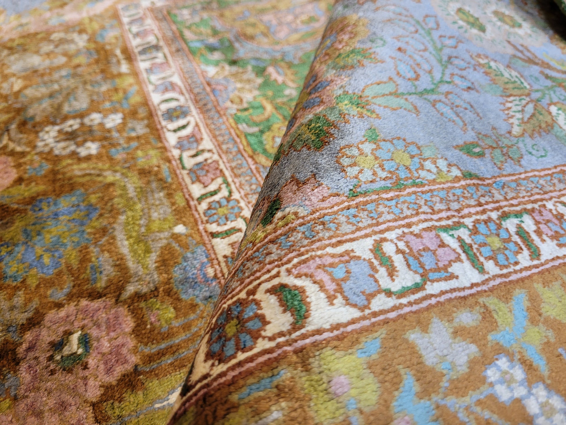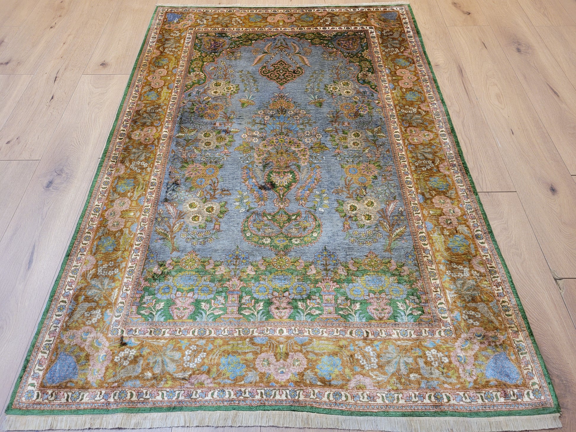 Kaschmir Teppich Naturseide feine Handknüpfung florales Design