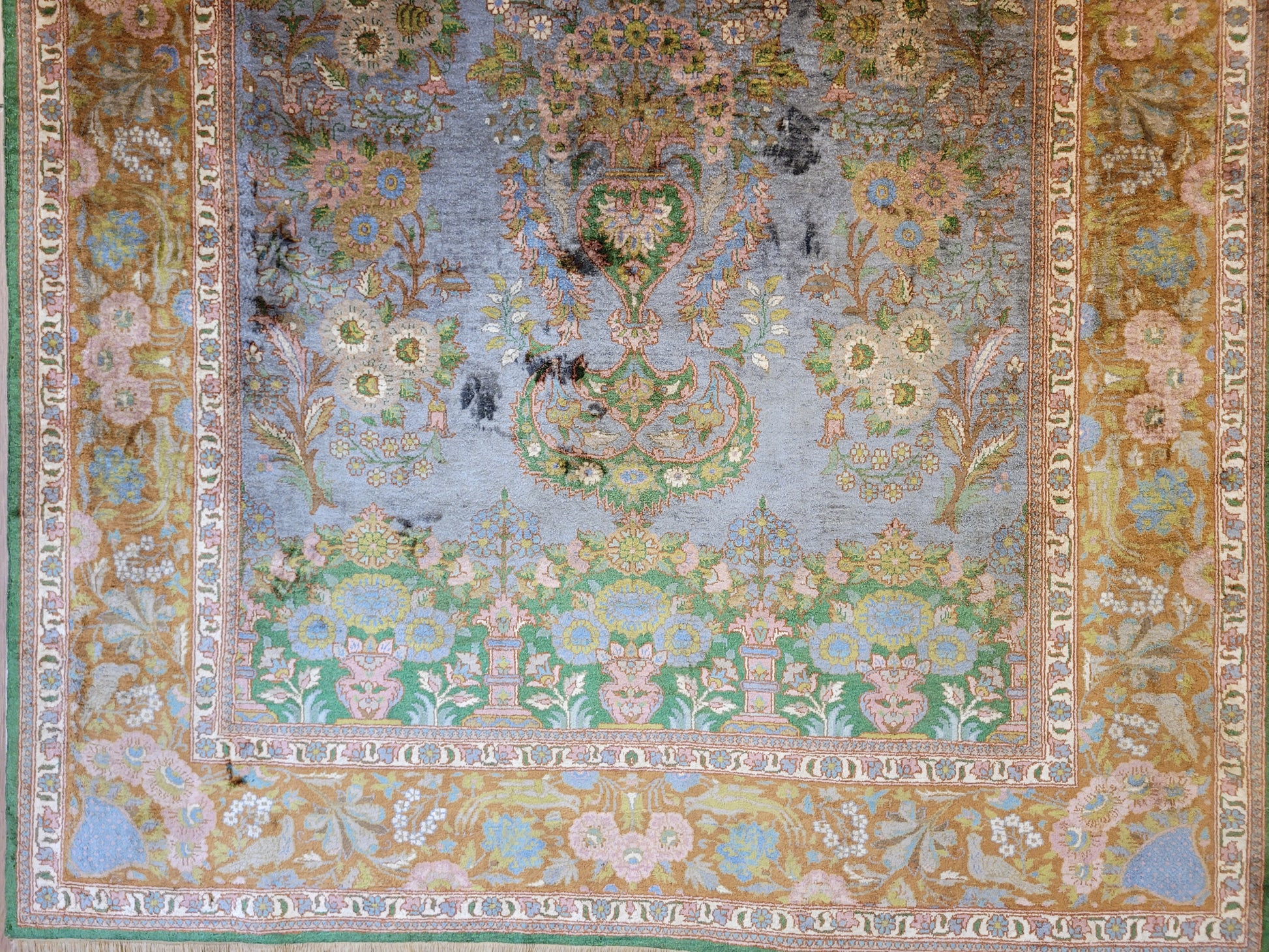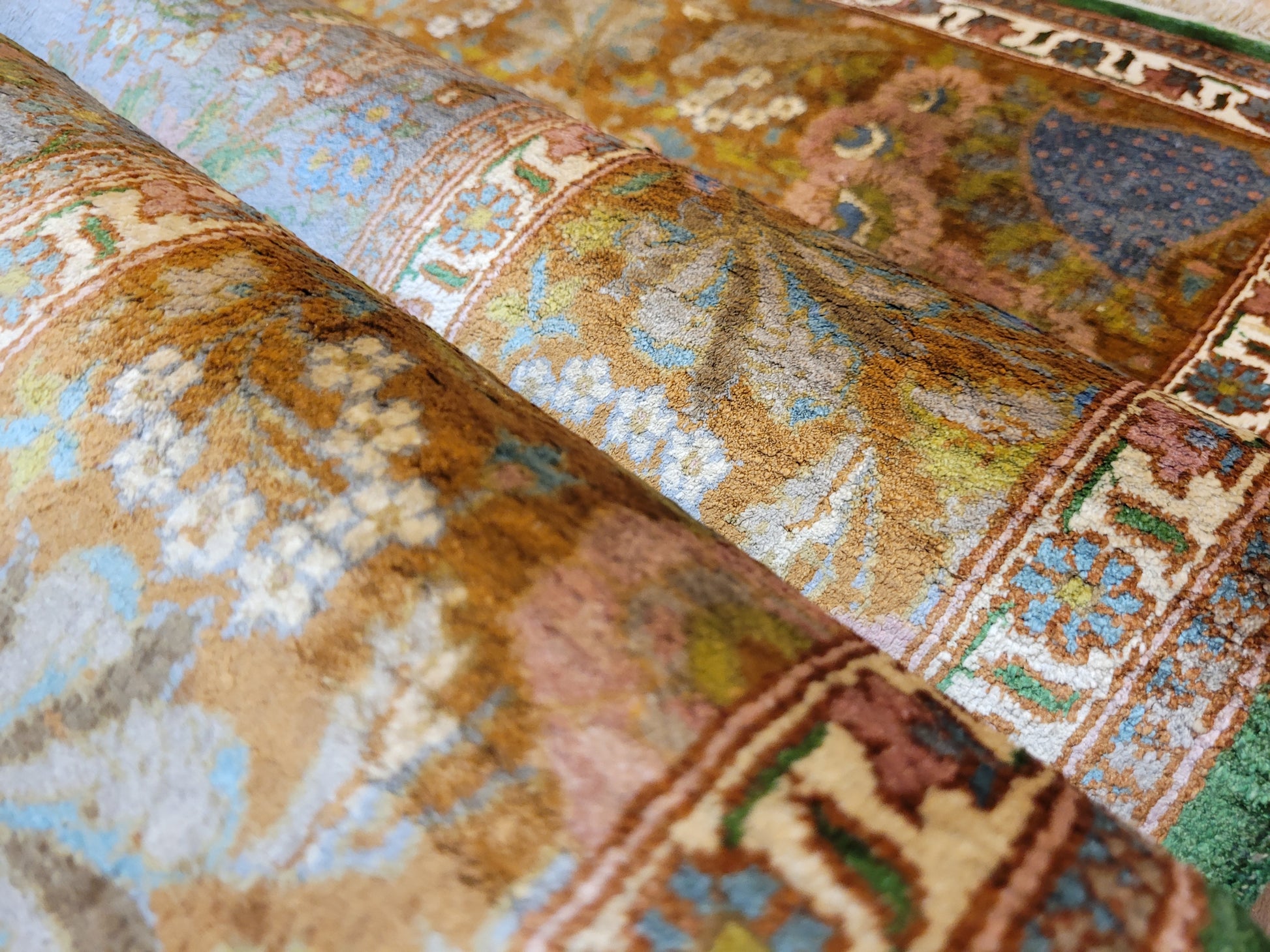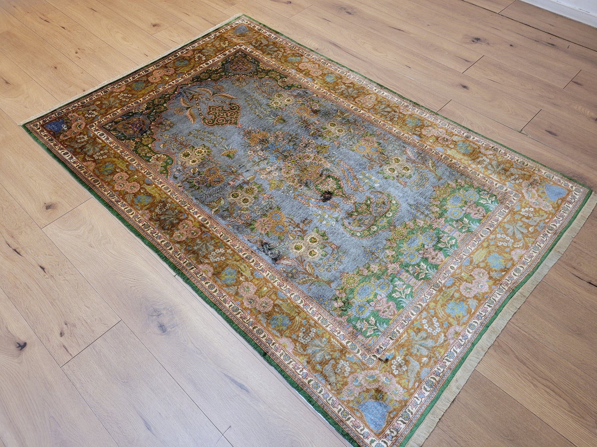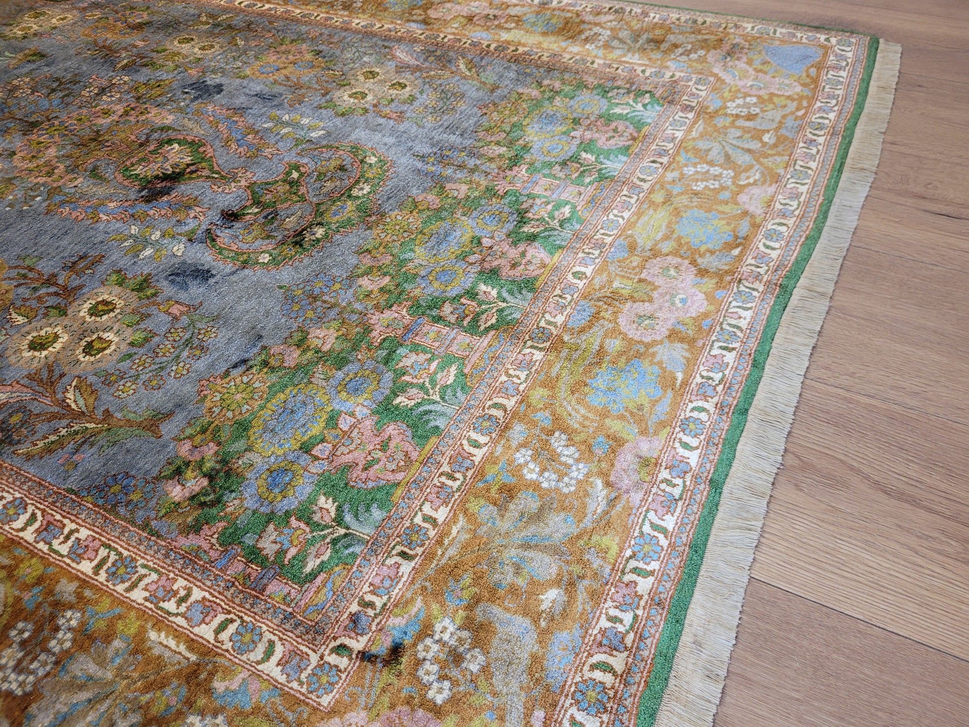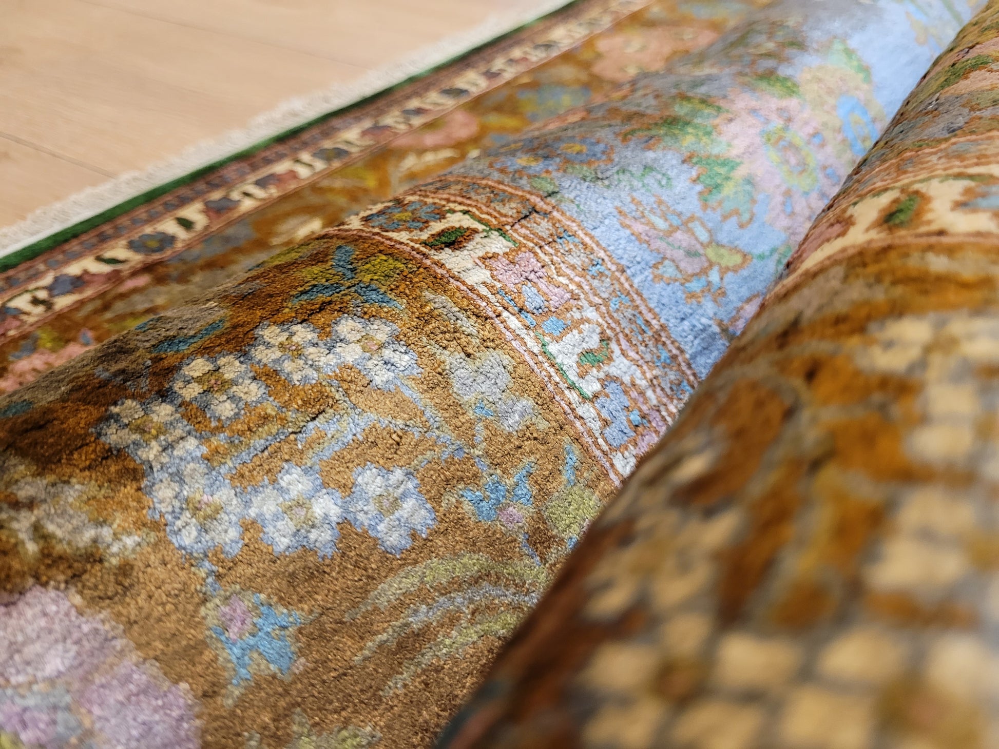 Kaschmir Teppich Naturseide feine Handknüpfung florales Design