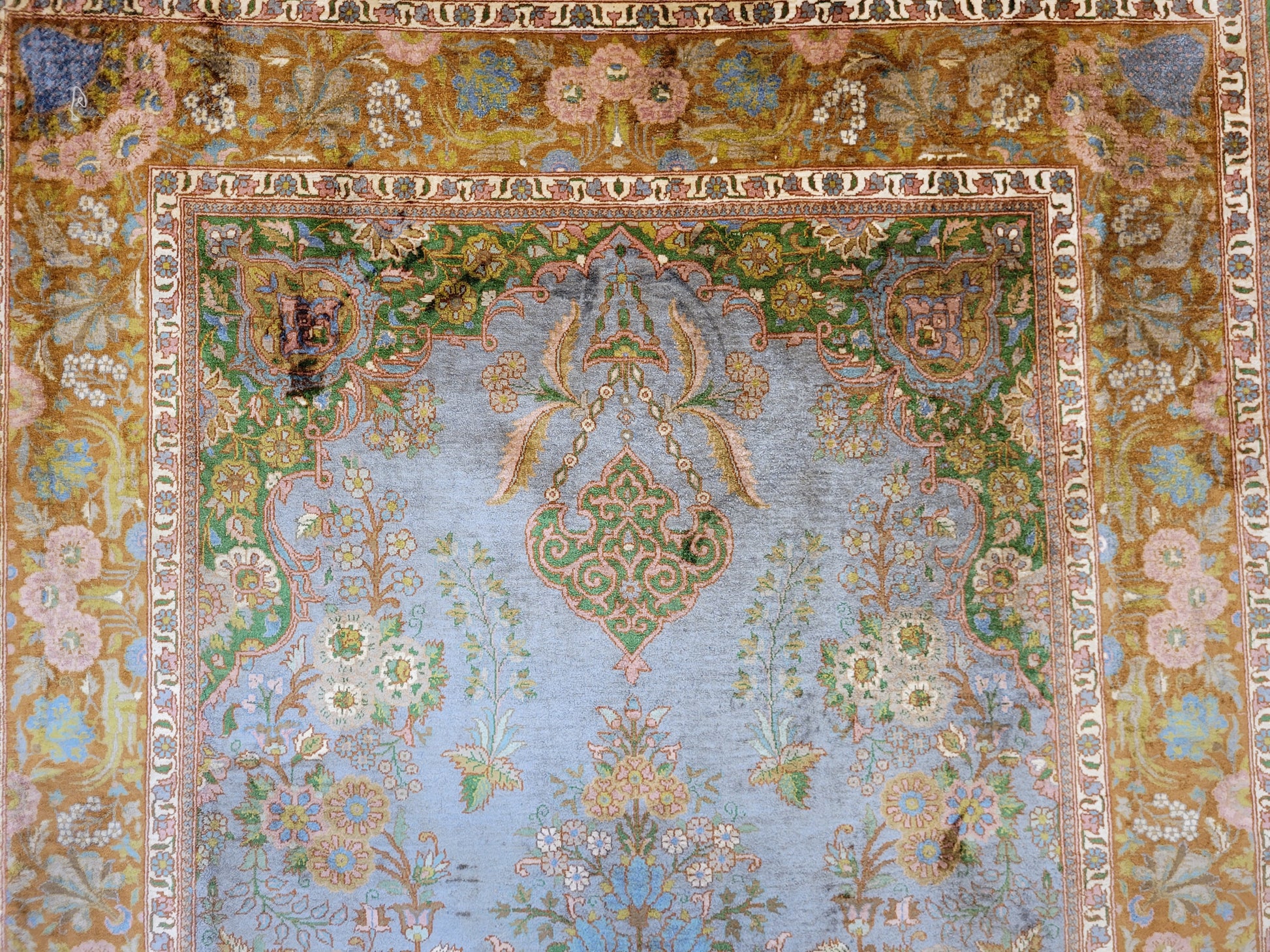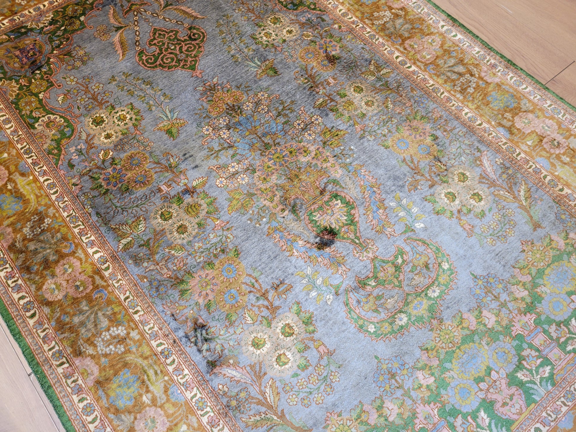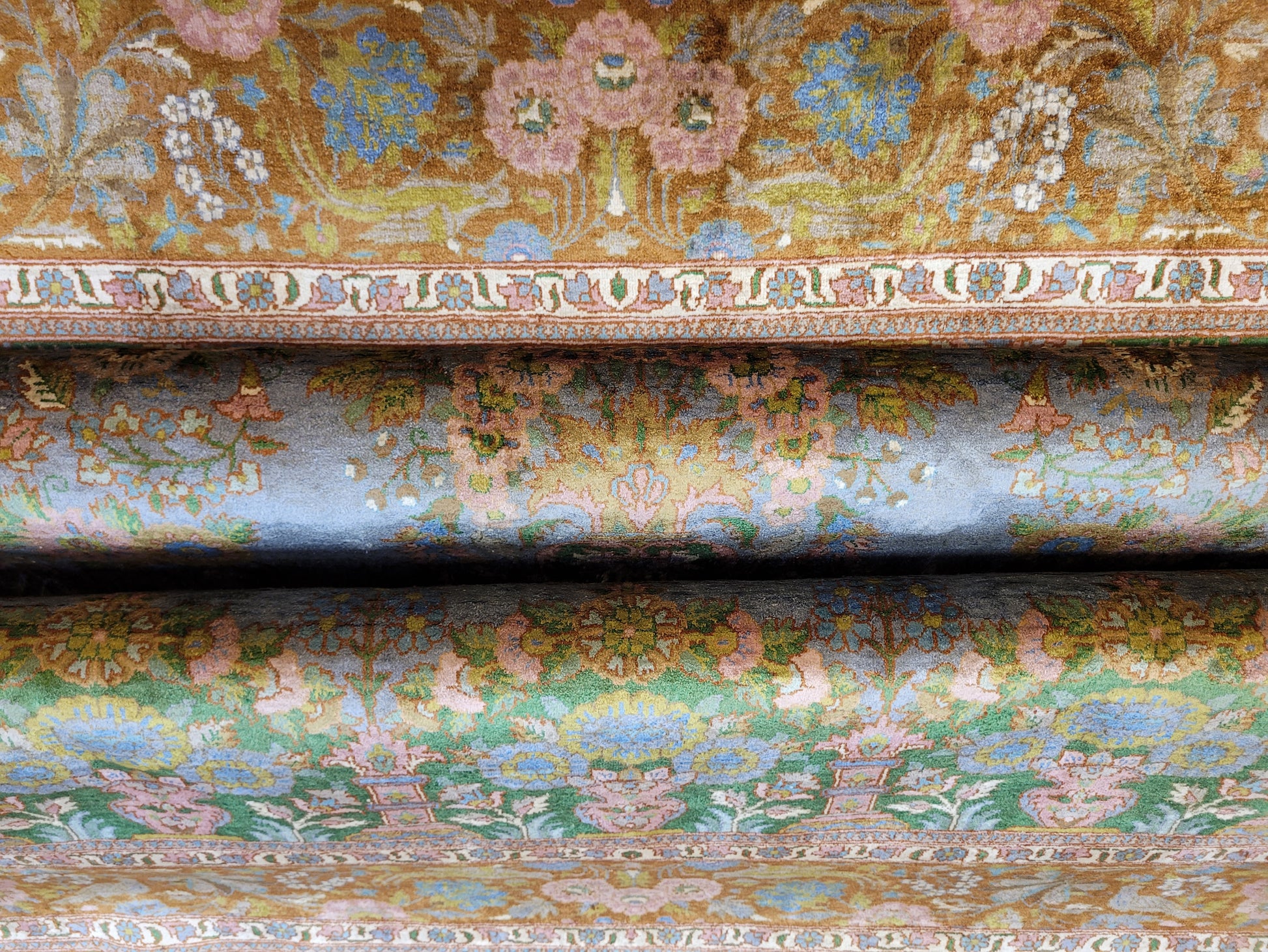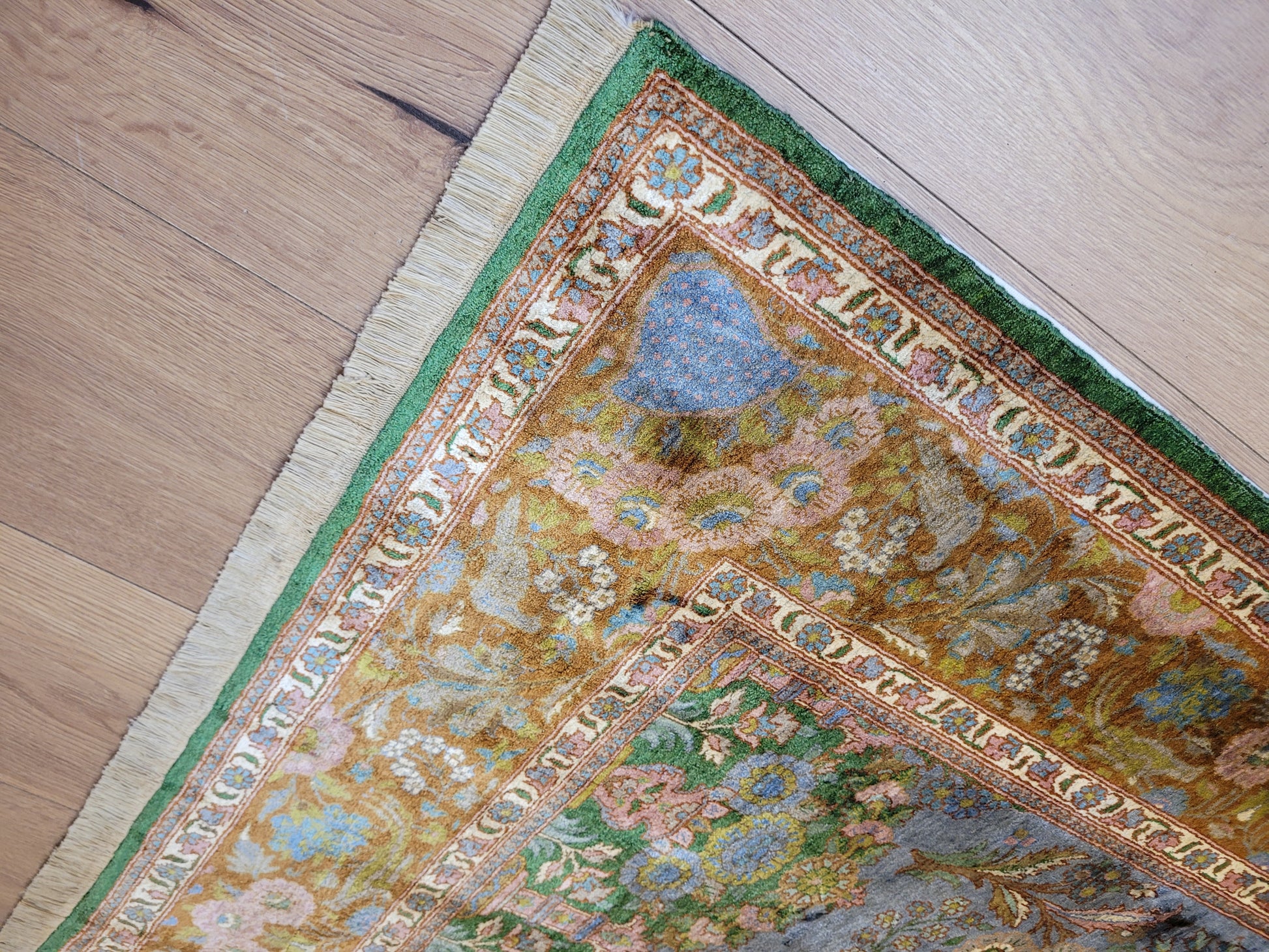 Kaschmir Teppich Naturseide feine Handknüpfung florales Design