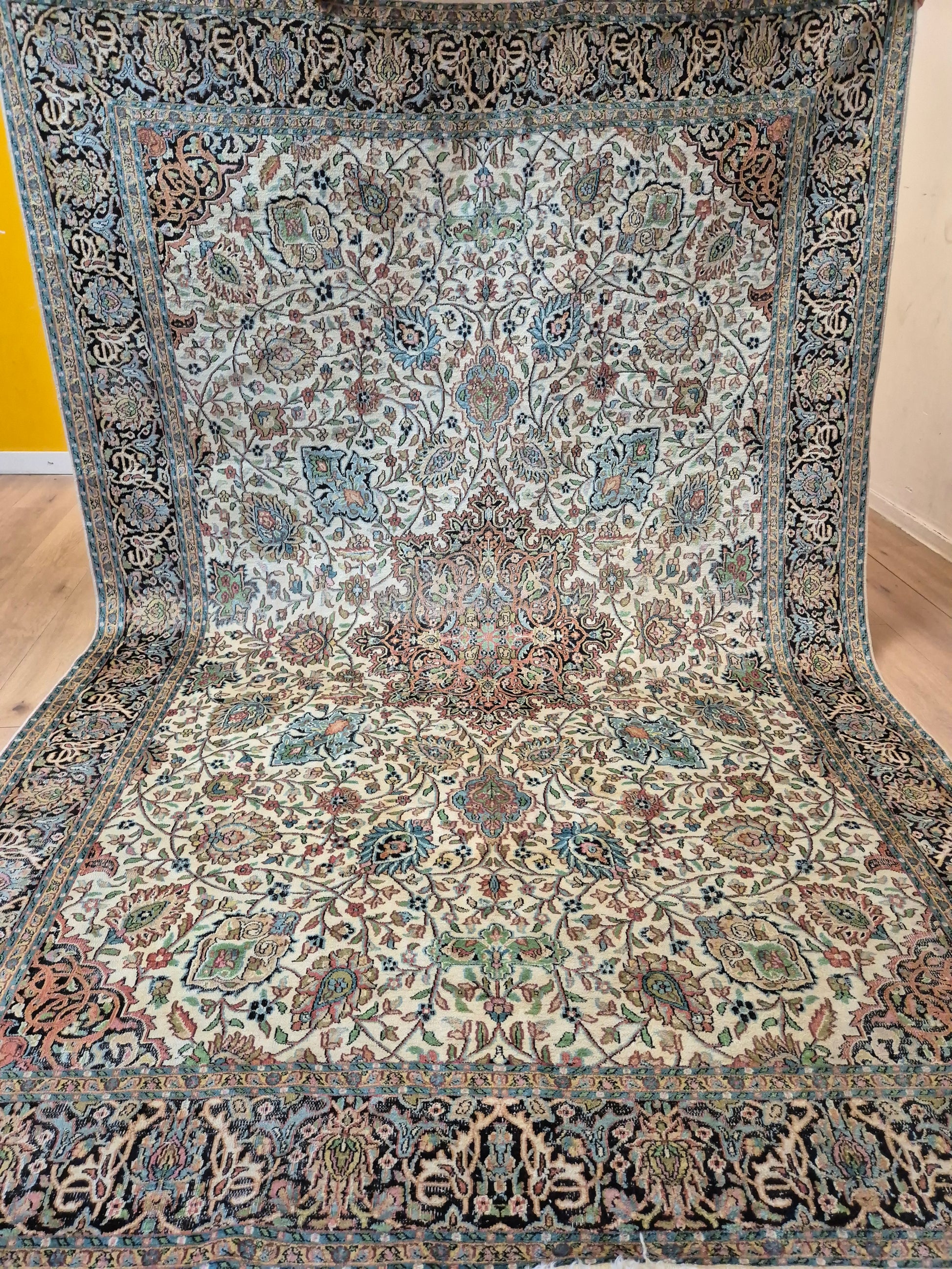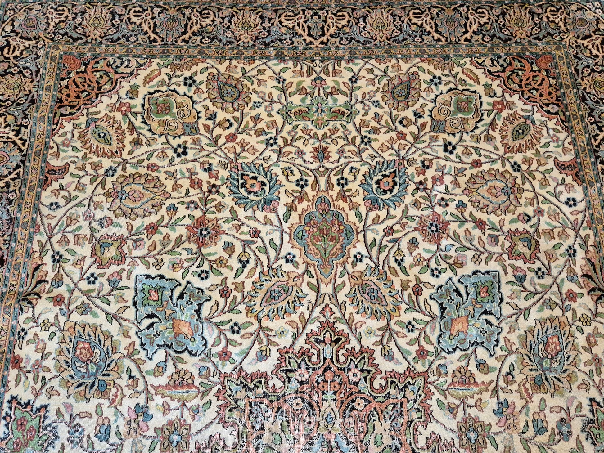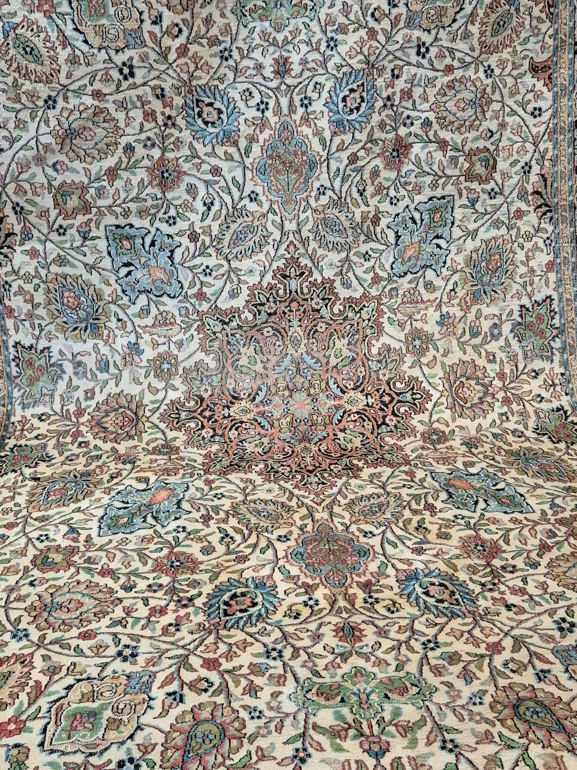 Kashmir Seidenteppich – filigranes Floralmuster auf hellem Fond