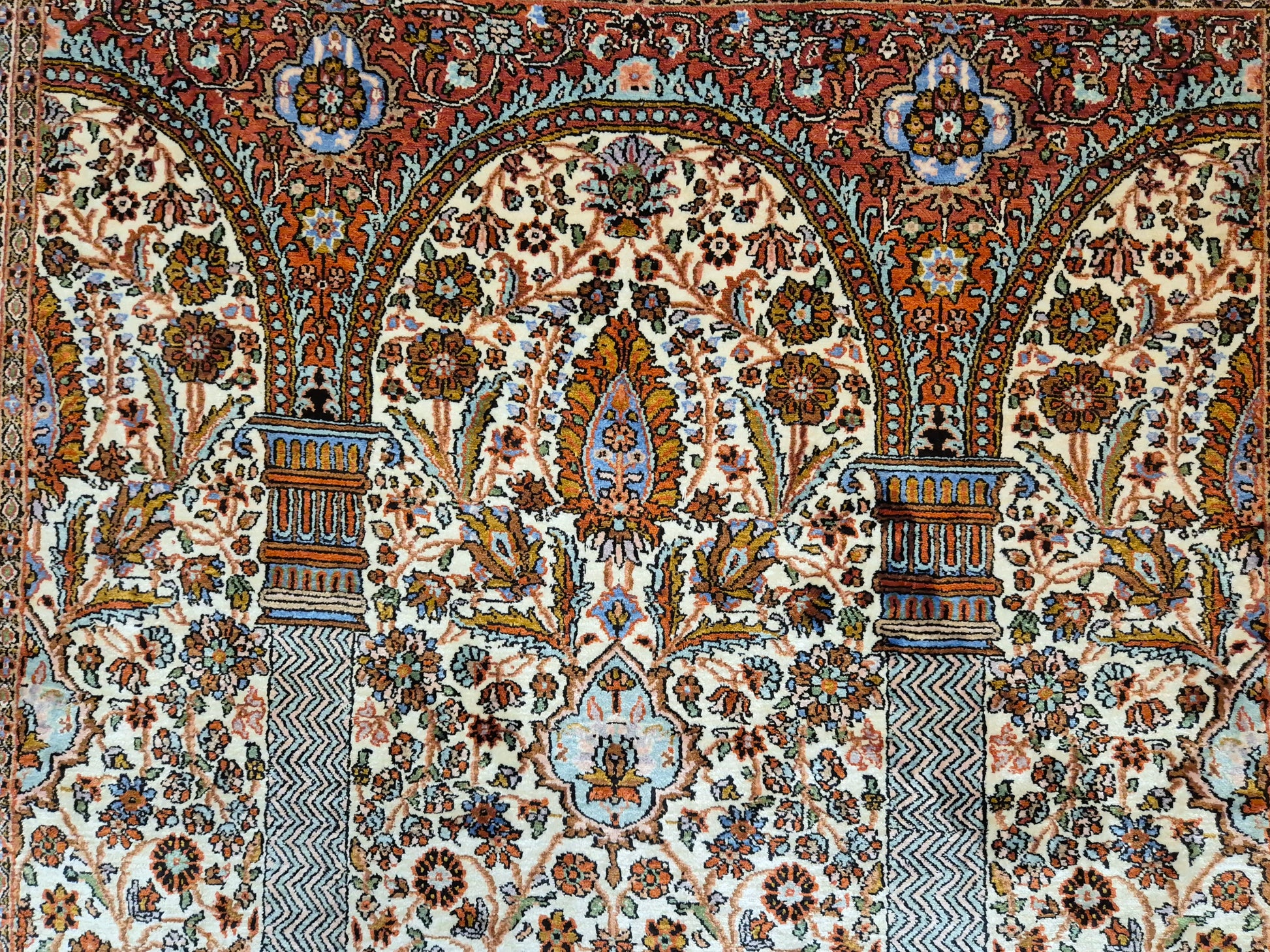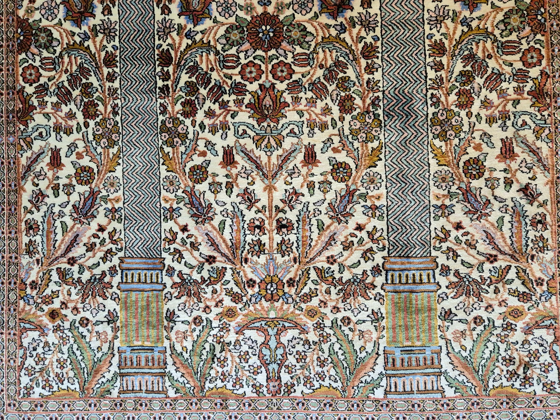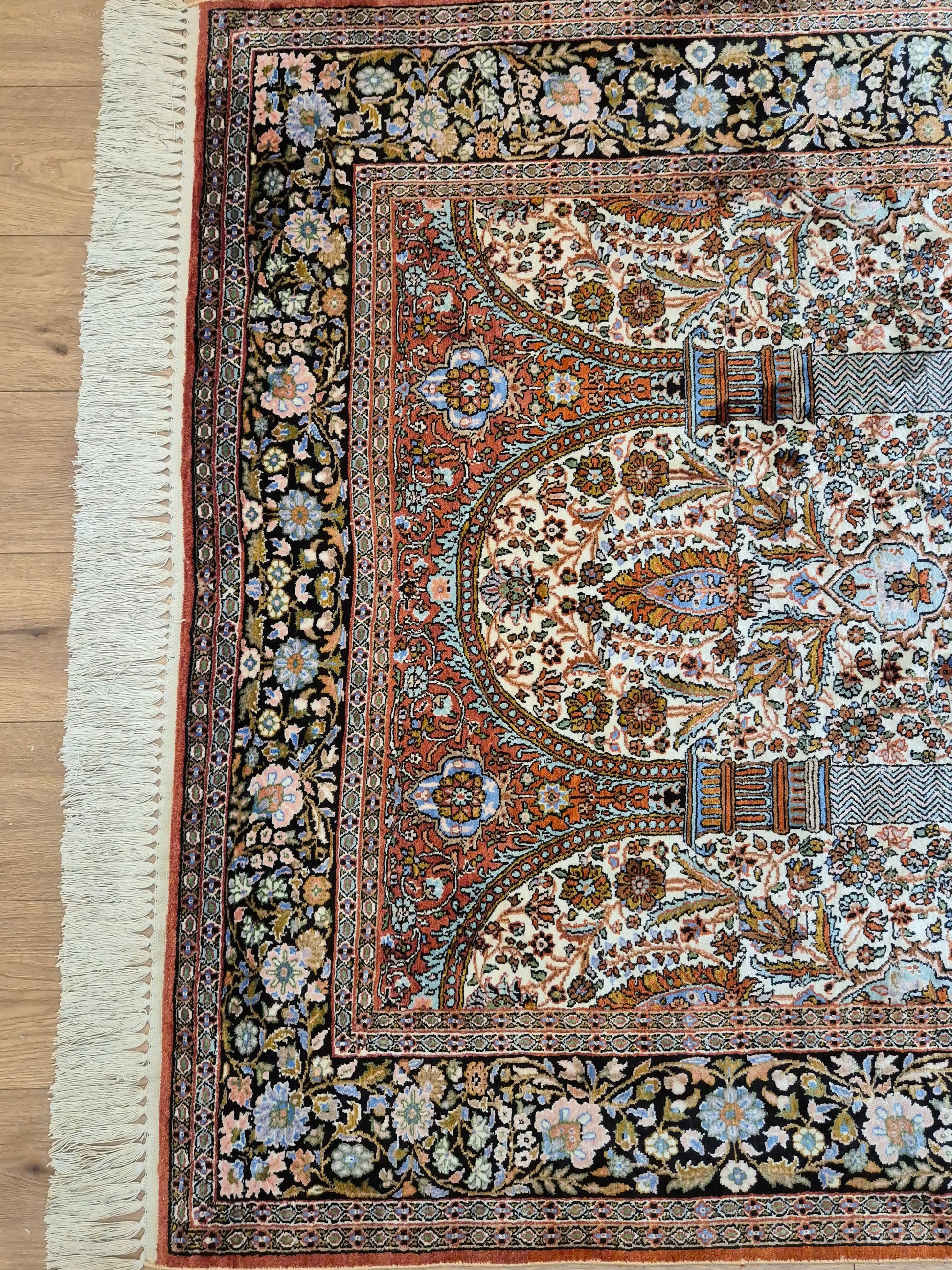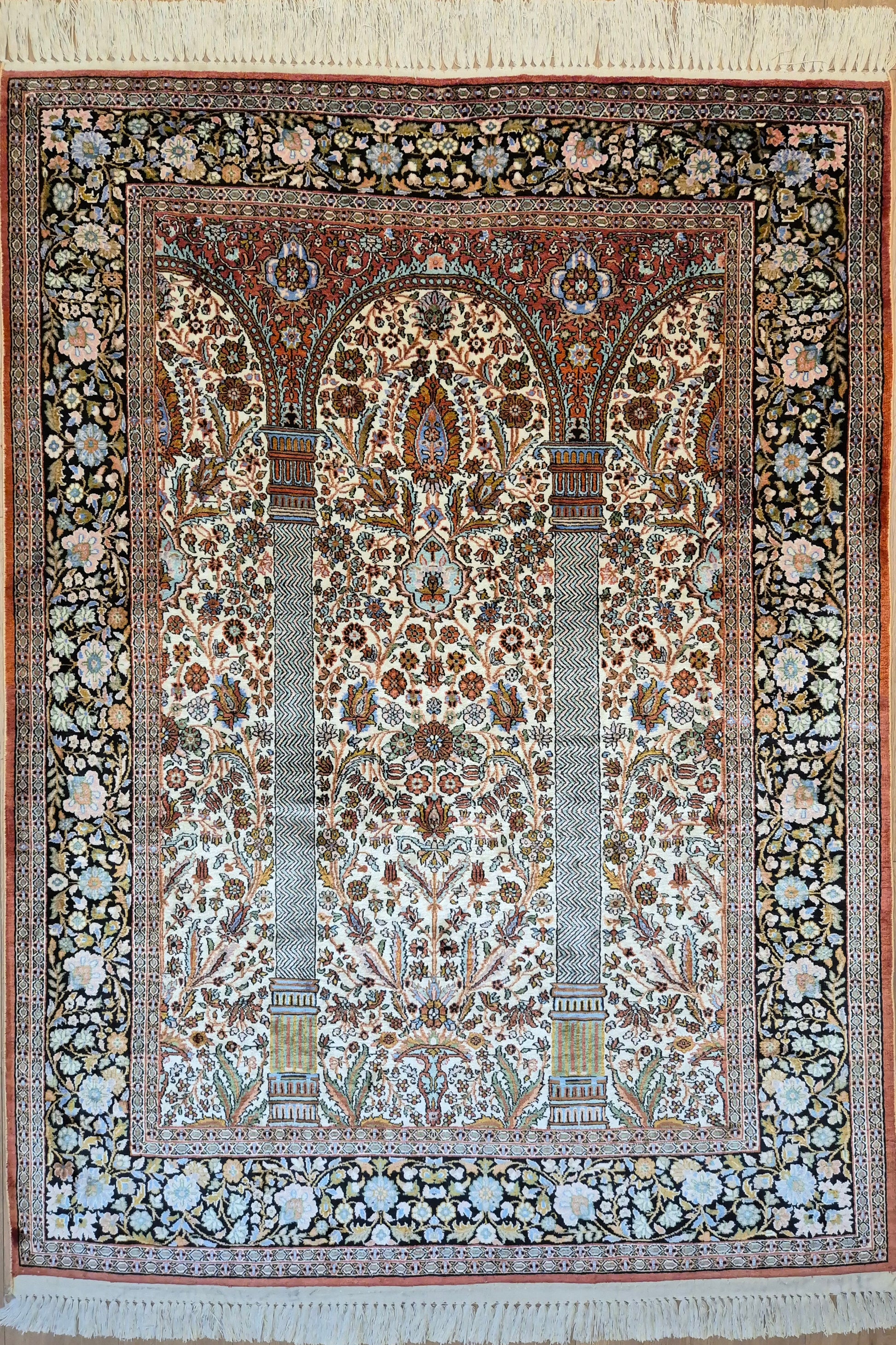 Kashmir Seidenteppich Naturseide Arkadenmuster feine Knüpfung