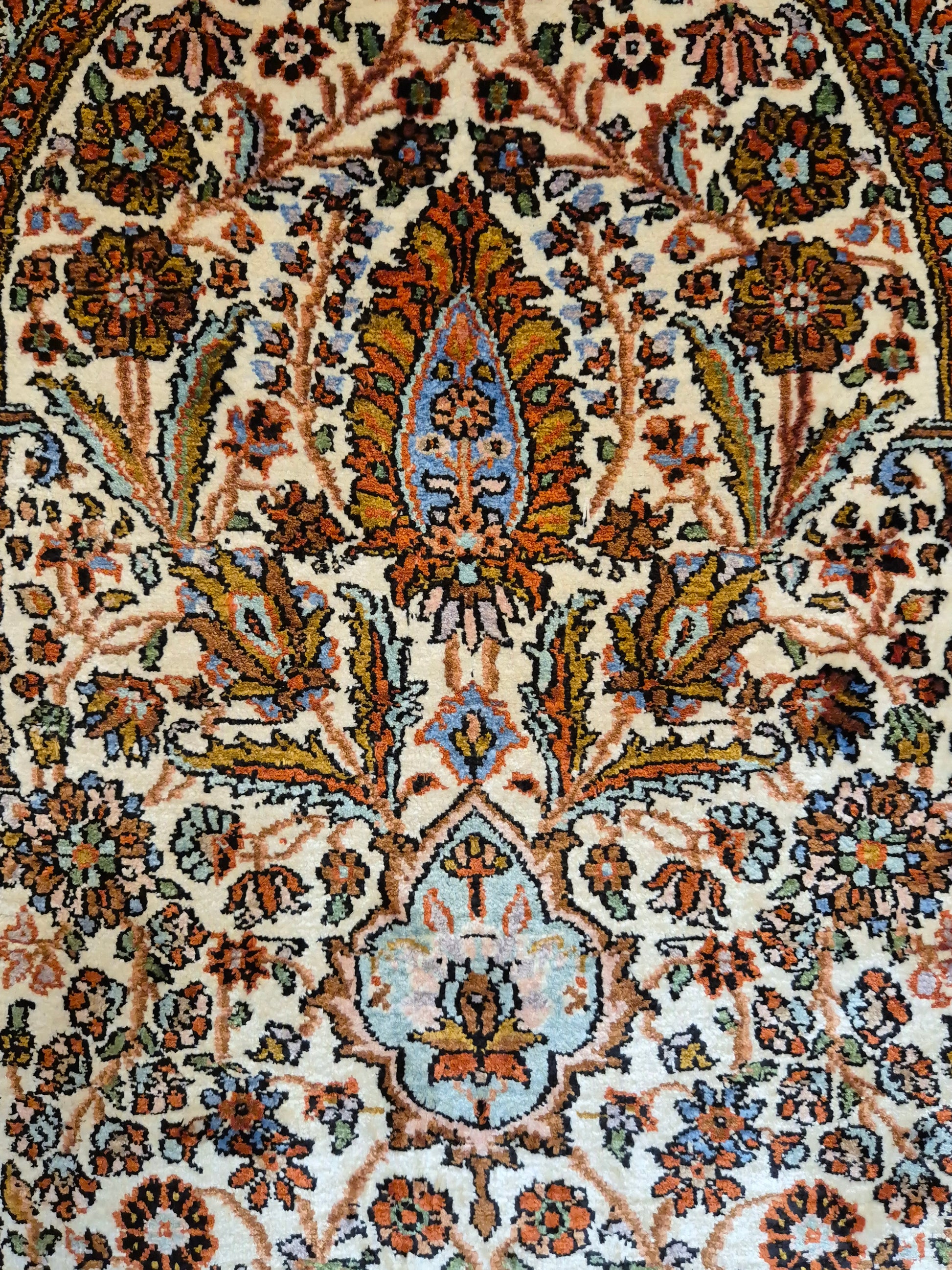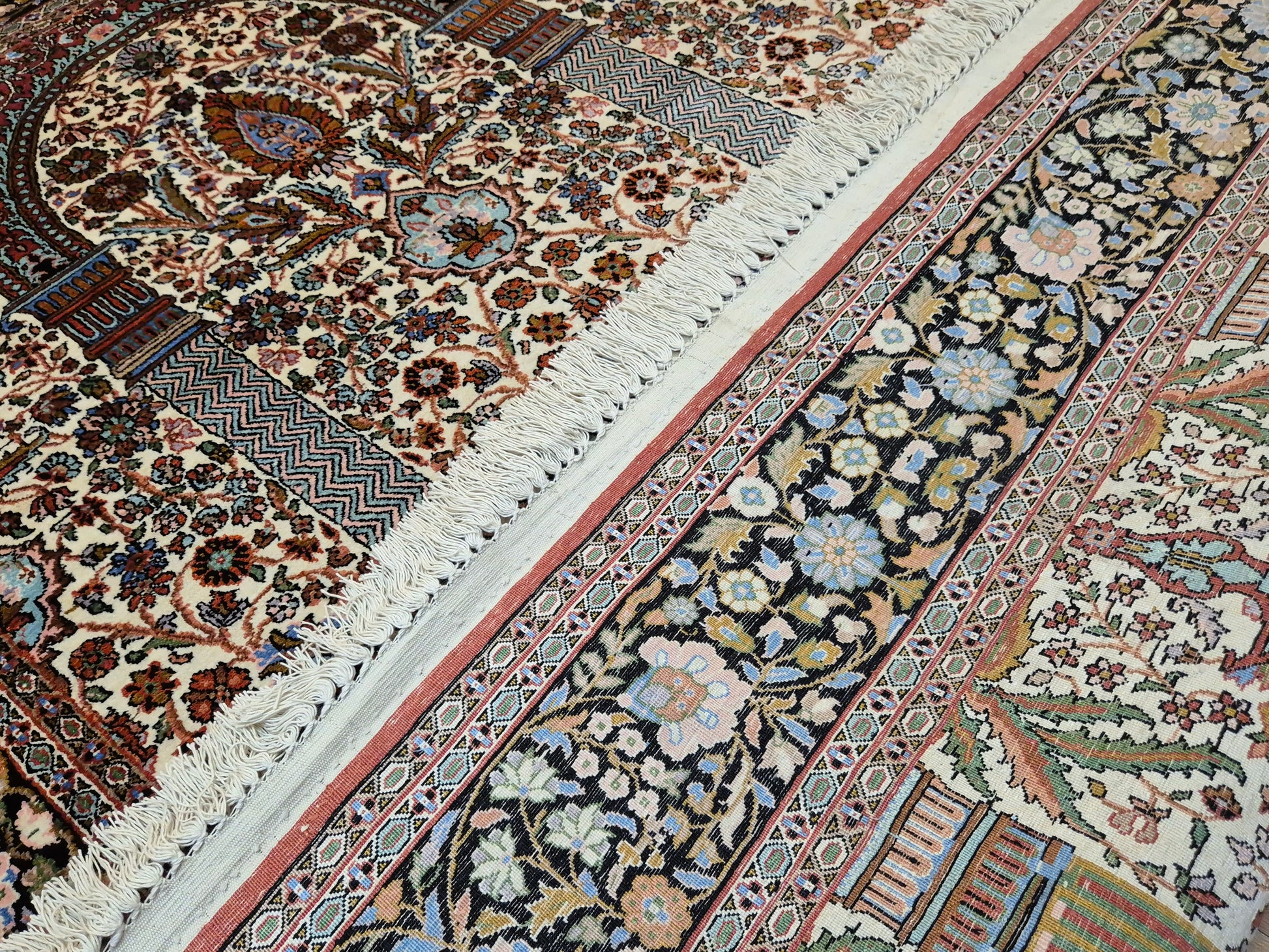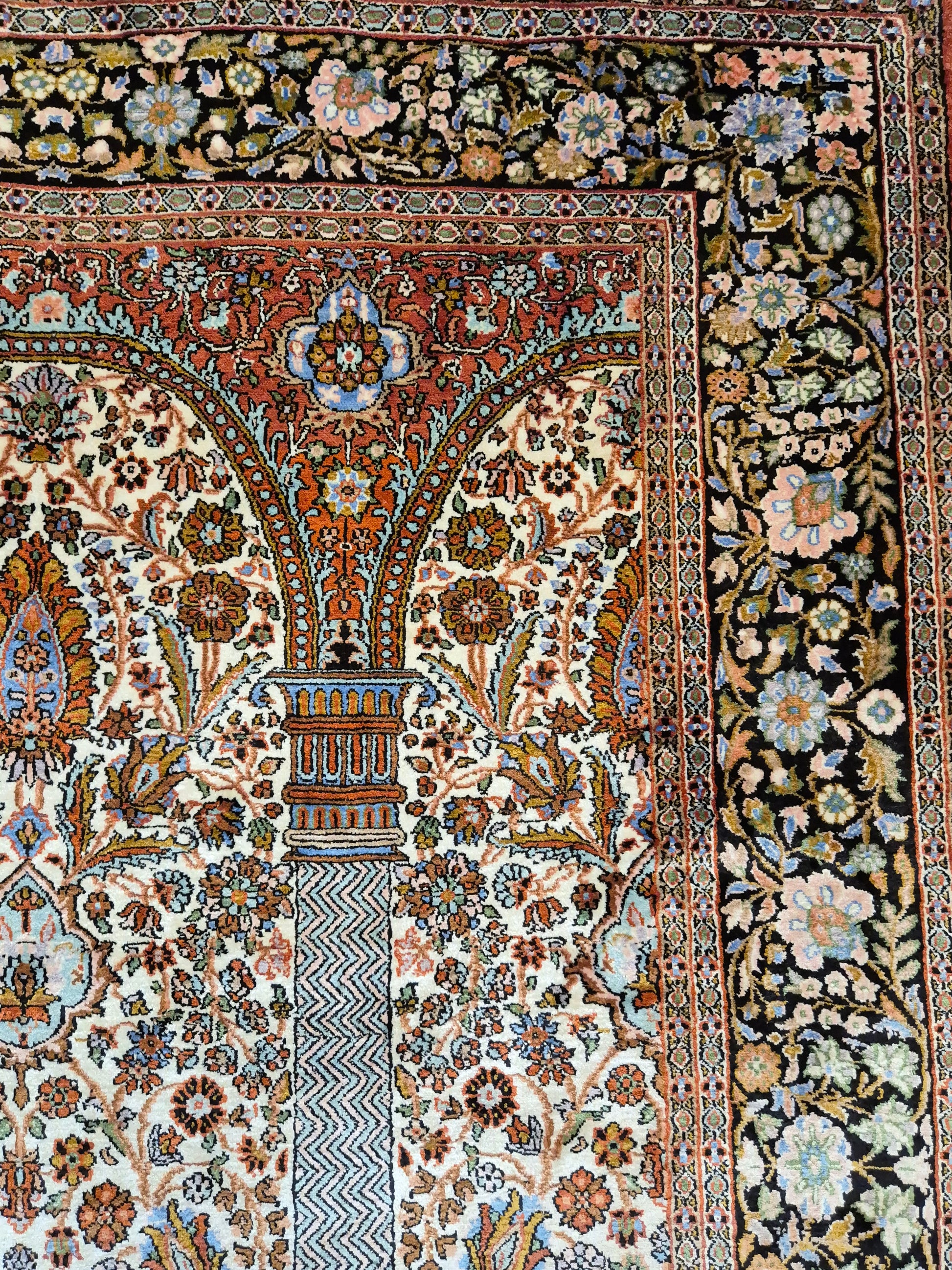 Kashmir Seidenteppich Naturseide Arkadenmuster feine Knüpfung