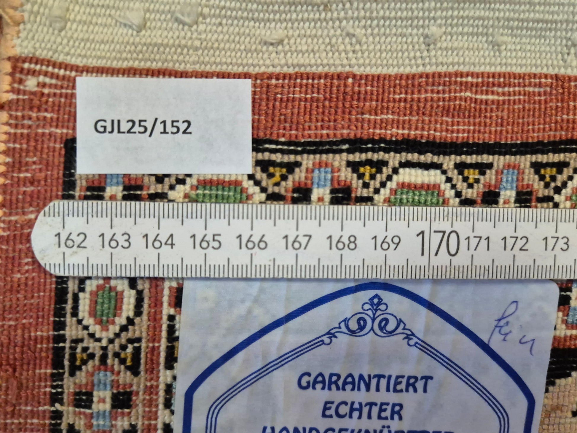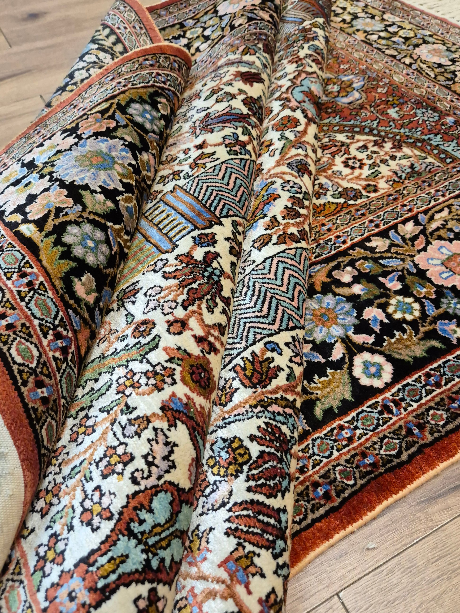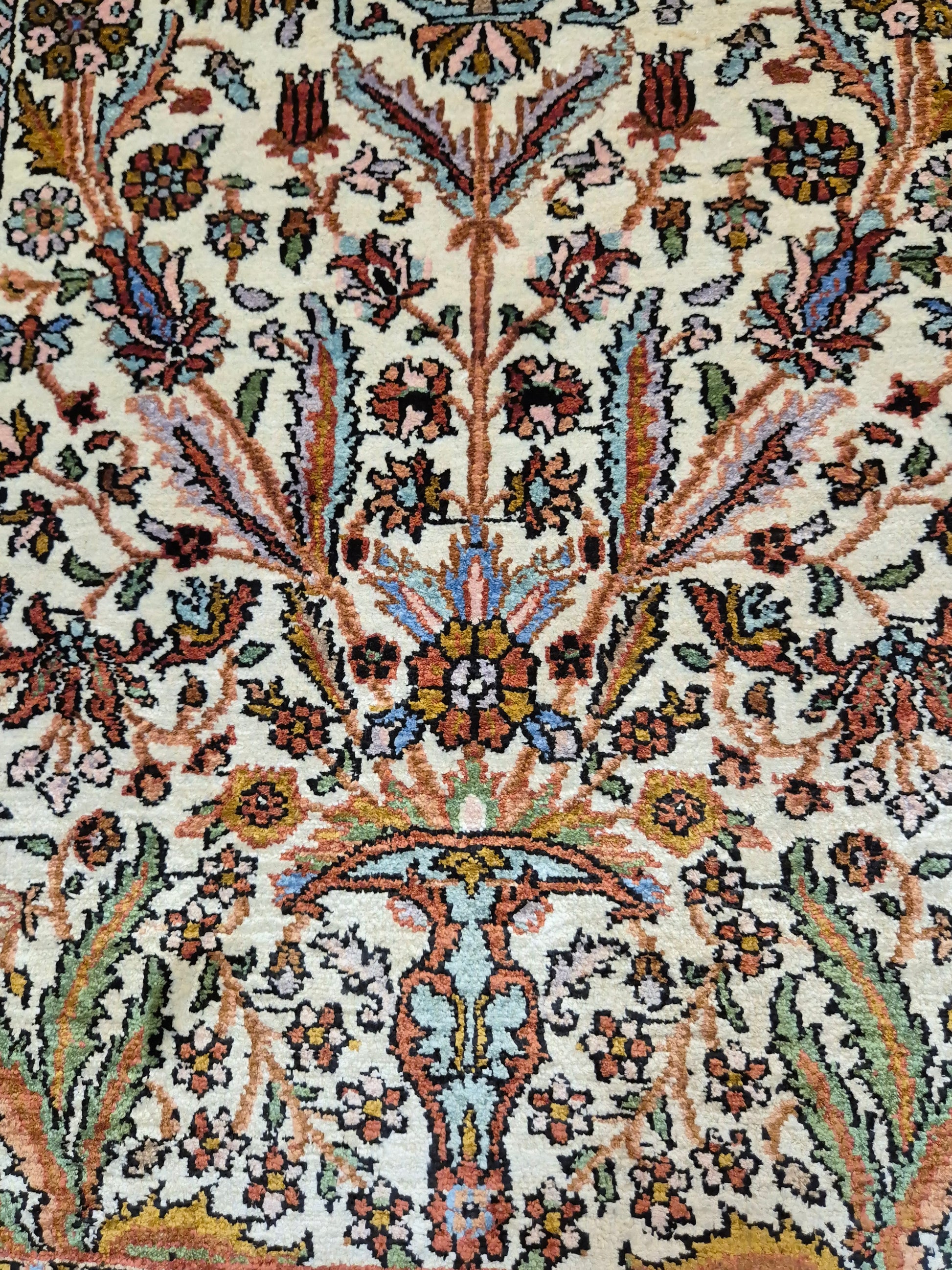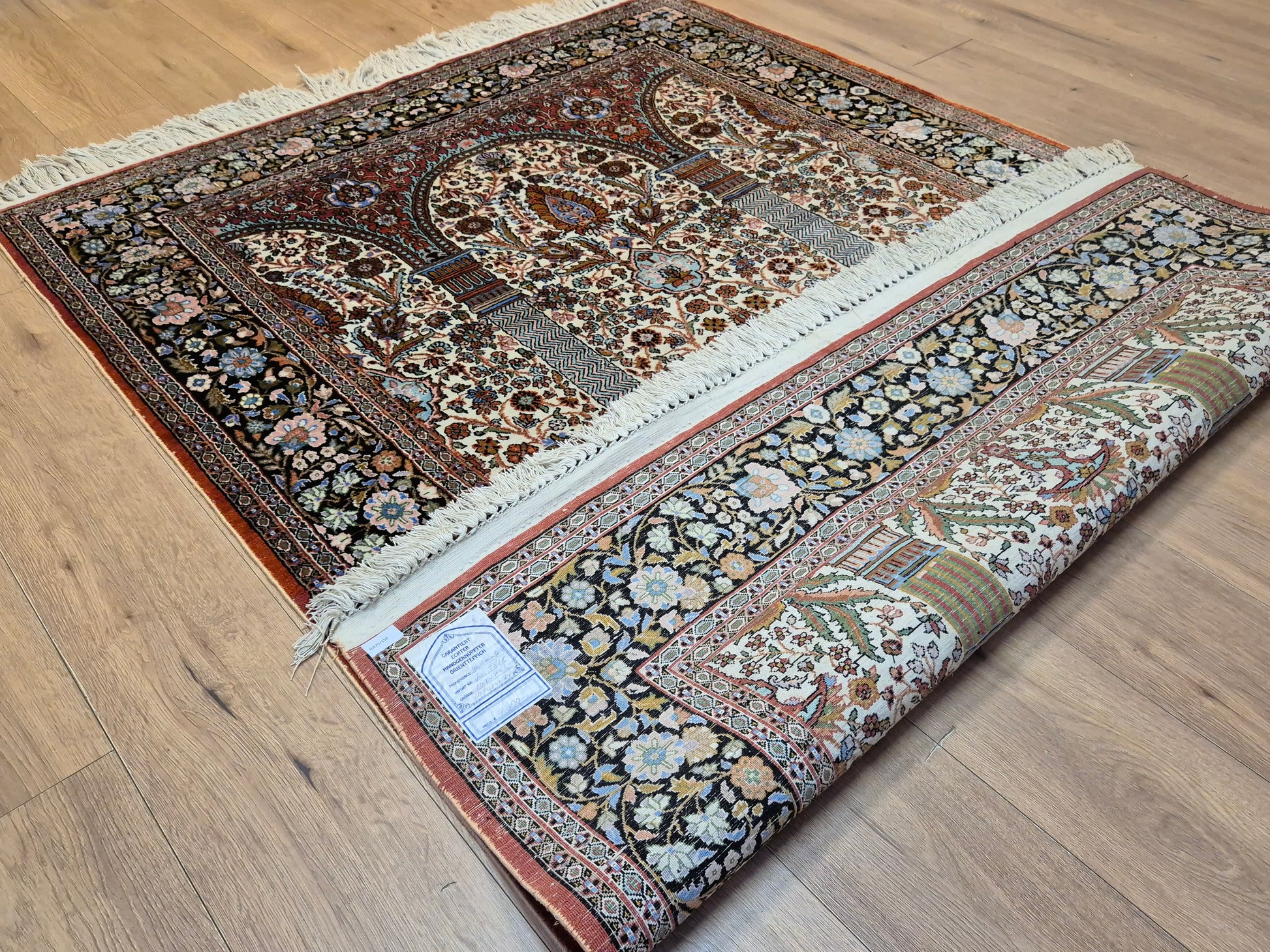 Kashmir Seidenteppich Naturseide Arkadenmuster feine Knüpfung