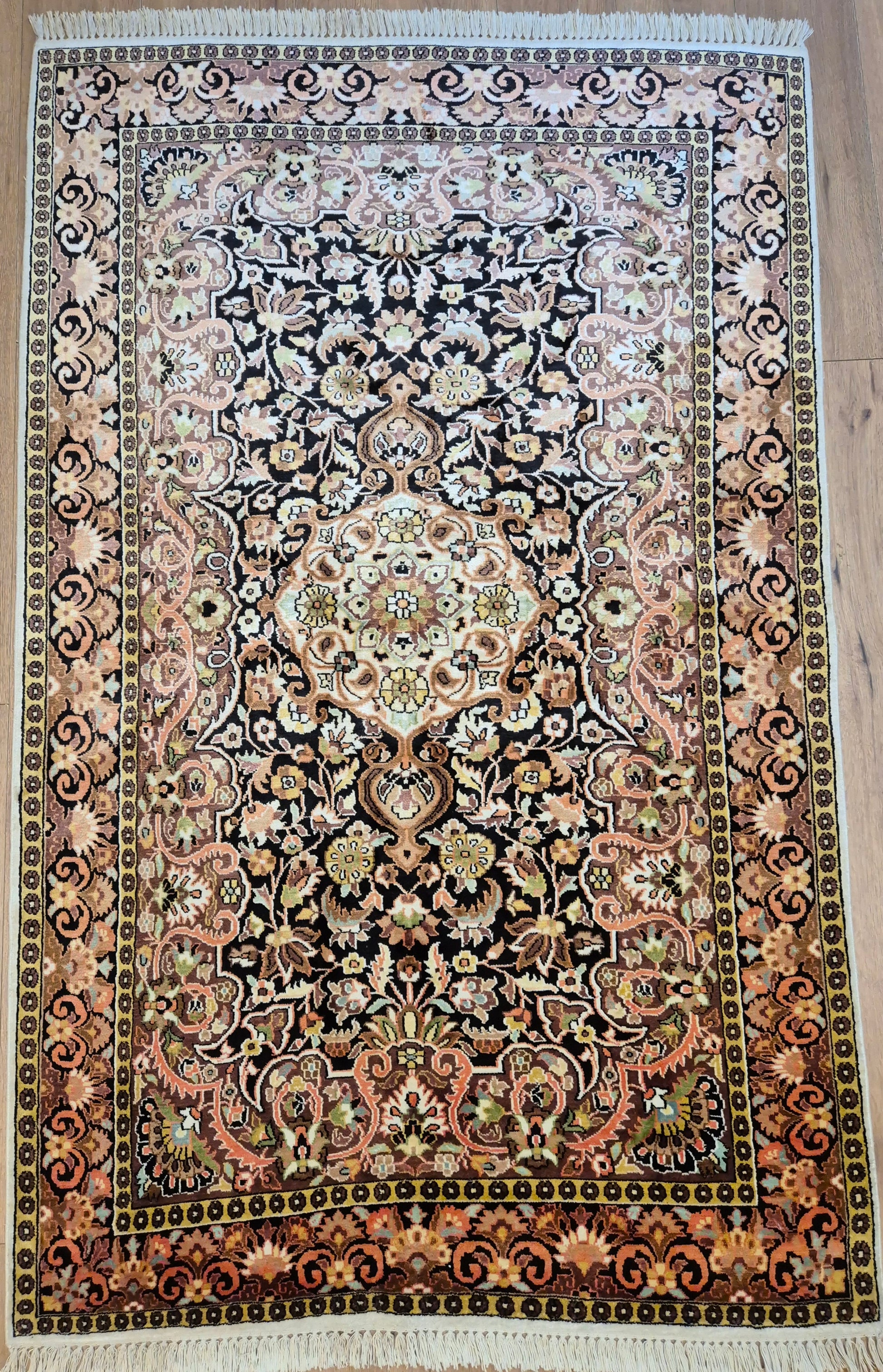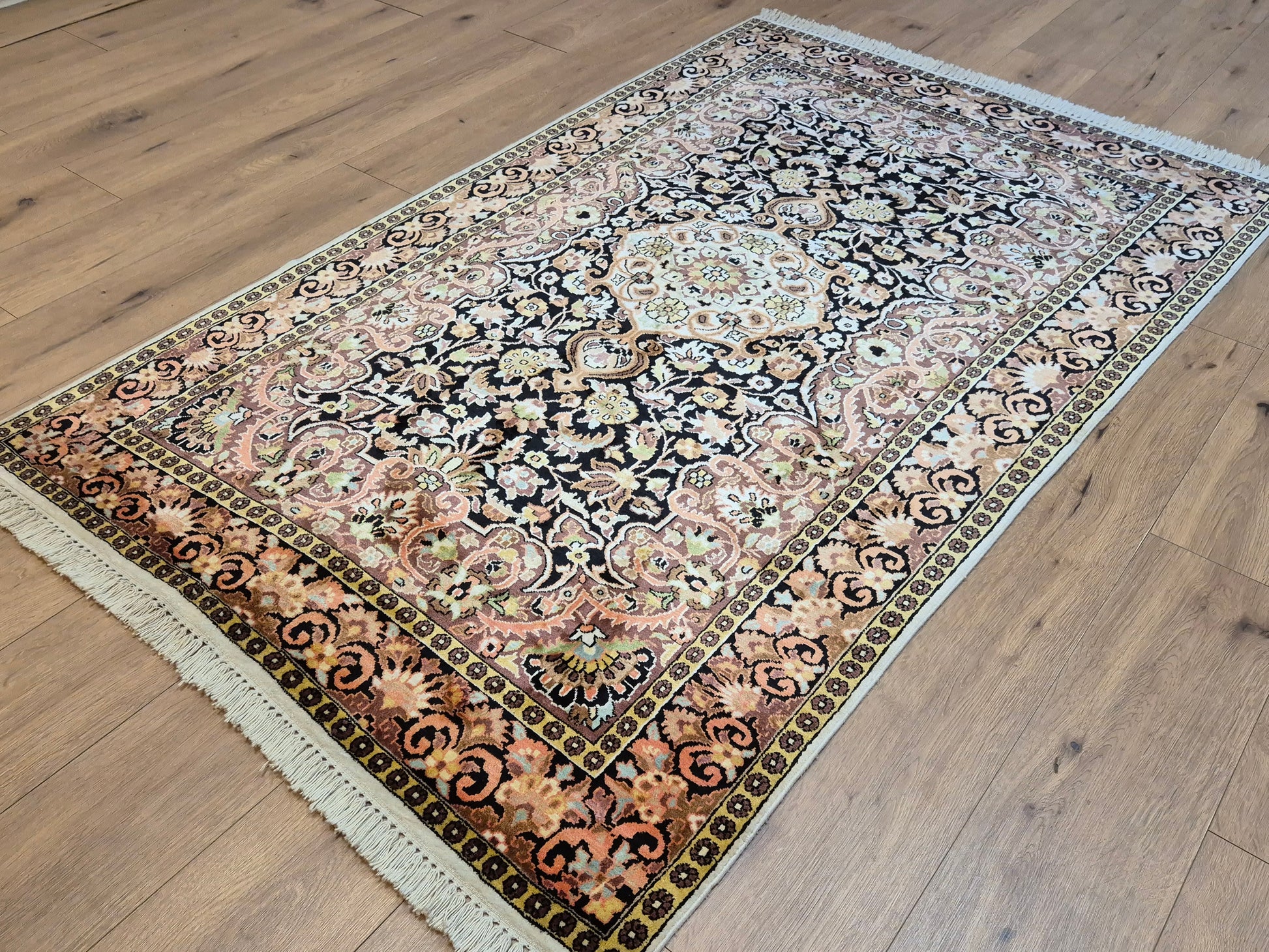 Kashmir Teppich Seide Medaillon feine Knüpfung