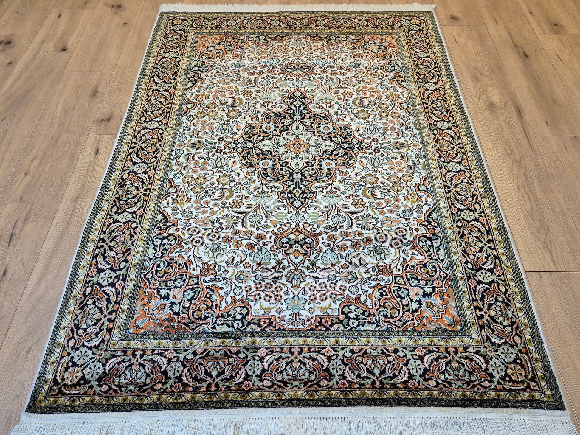 Kashmir Teppich Reine Seide Medaillon florales Design