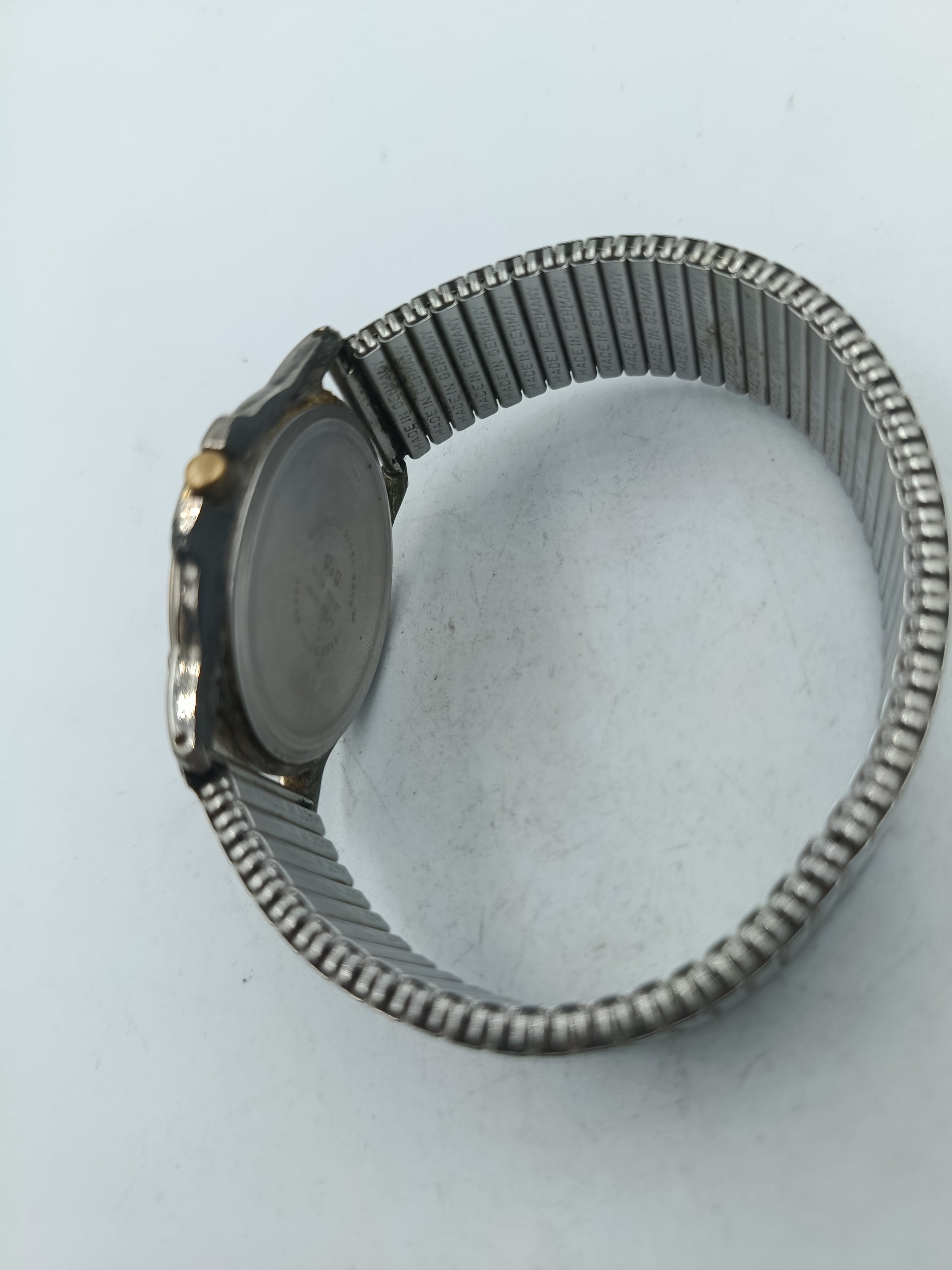 Klassische Armbanduhr mit elastischem Metallarmband und Datumsanzeige