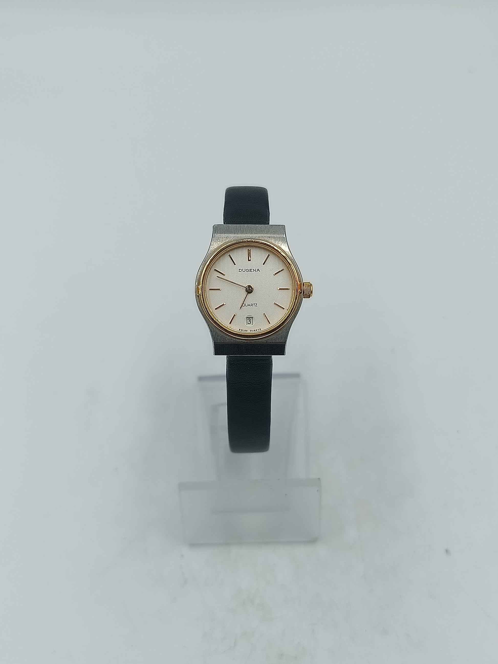 Diese elegante Armbanduhr überzeugt durch ihr zeitloses Design und ihre klare Linienführung. Das helle Zifferblatt mit feinen goldfarbenen Indizes sorgt für eine edle Optik während das schwarze Lederband einen angenehmen und sicheren Tragekomfort bietet. Ideal für Alltag Büro und besondere Anlässe geeignet.