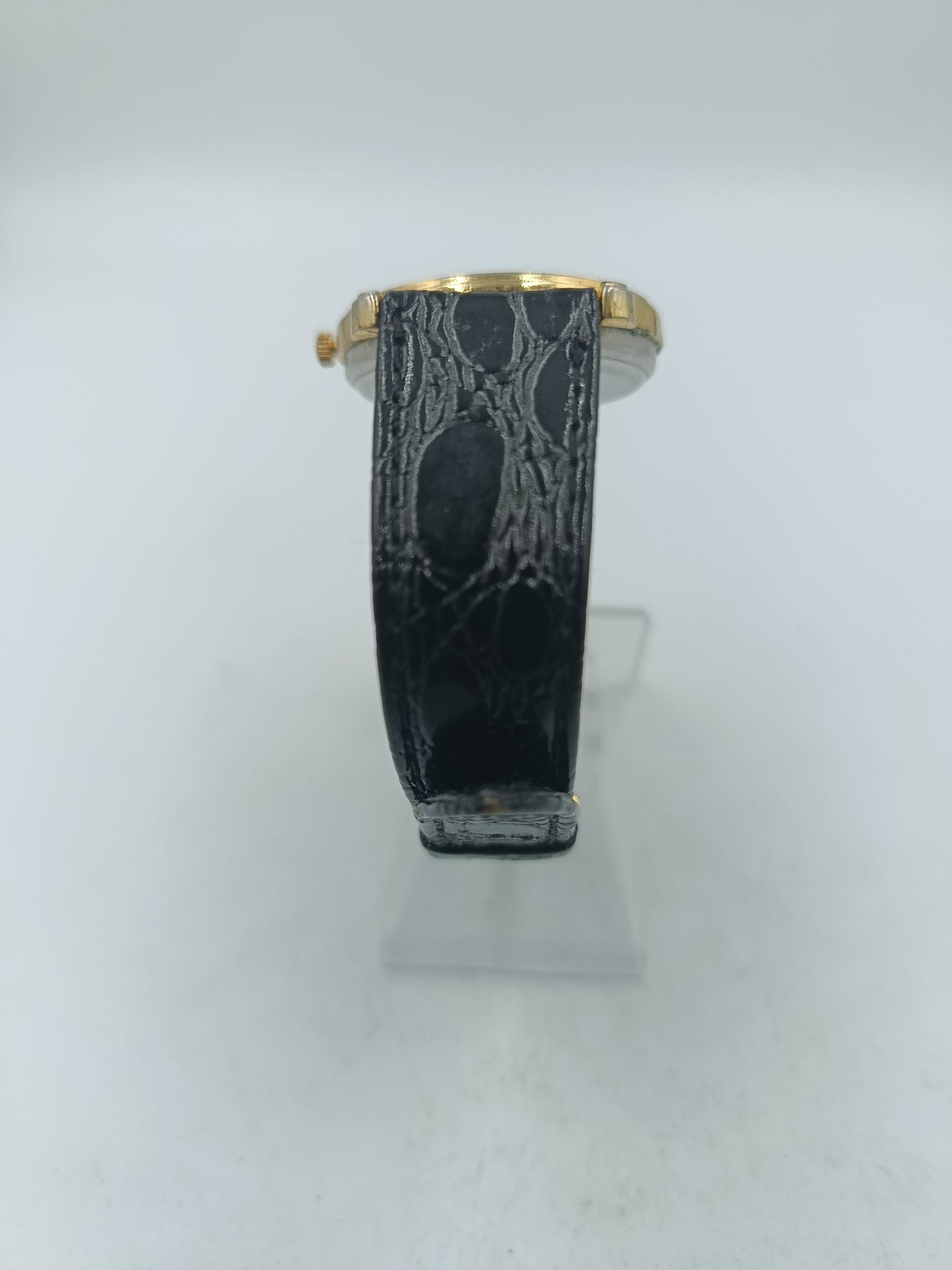 Diese stilvolle Armbanduhr überzeugt durch ihr zeitloses Design mit römischen Ziffern und einem edlen schwarzen Zifferblatt. Das goldfarbene Gehäuse verleiht der Uhr eine warme elegante Ausstrahlung während das schwarze Lederband für einen angenehmen Tragekomfort sorgt. Ein klassisches Schmuckstück das sich ideal für Alltag und besondere Anlässe eignet und jedes Outfit geschmackvoll ergänzt.