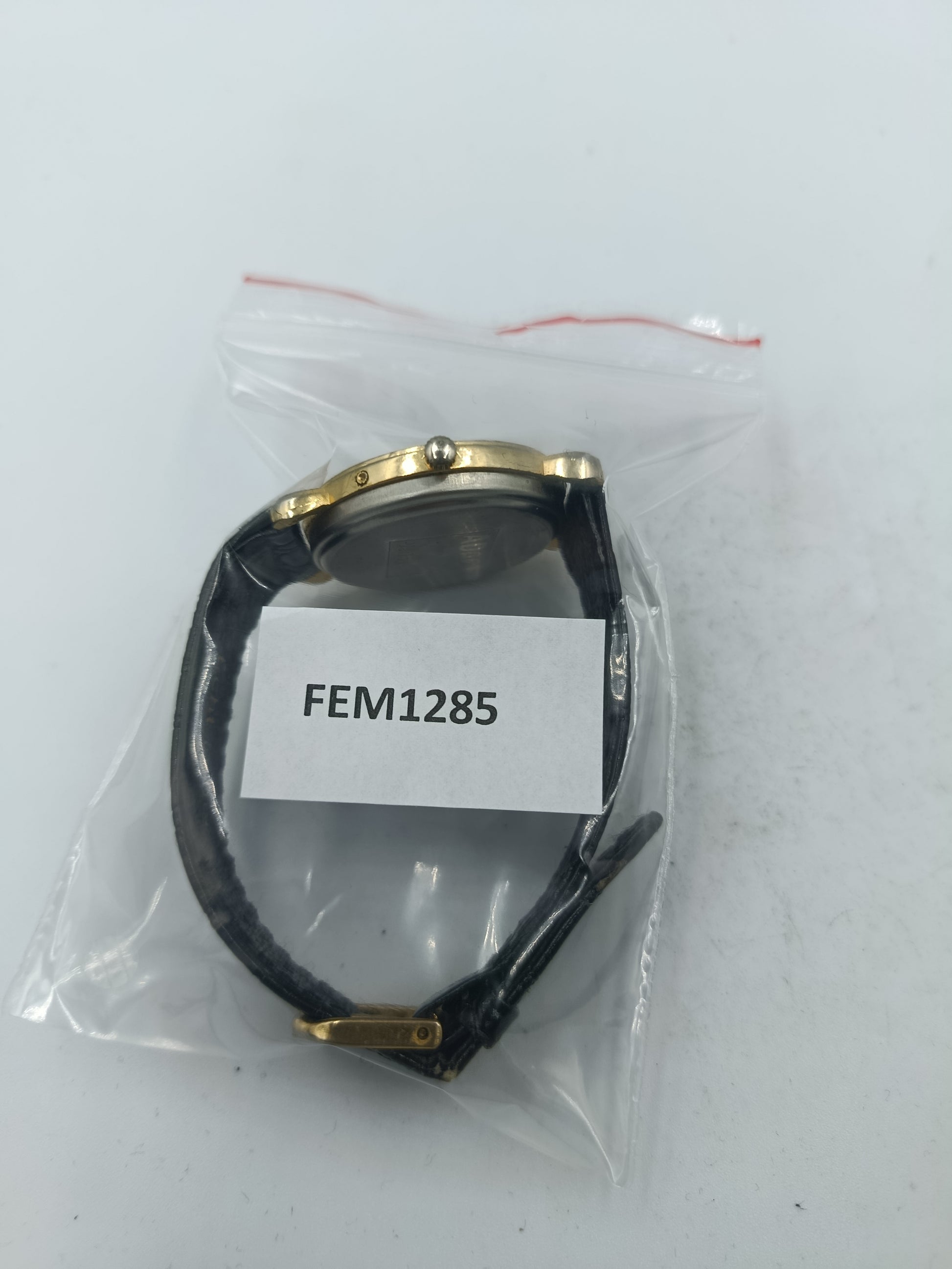 Klassische Armbanduhr mit schwarzem Lederband und römischen Ziffern im eleganten Vintage Stil