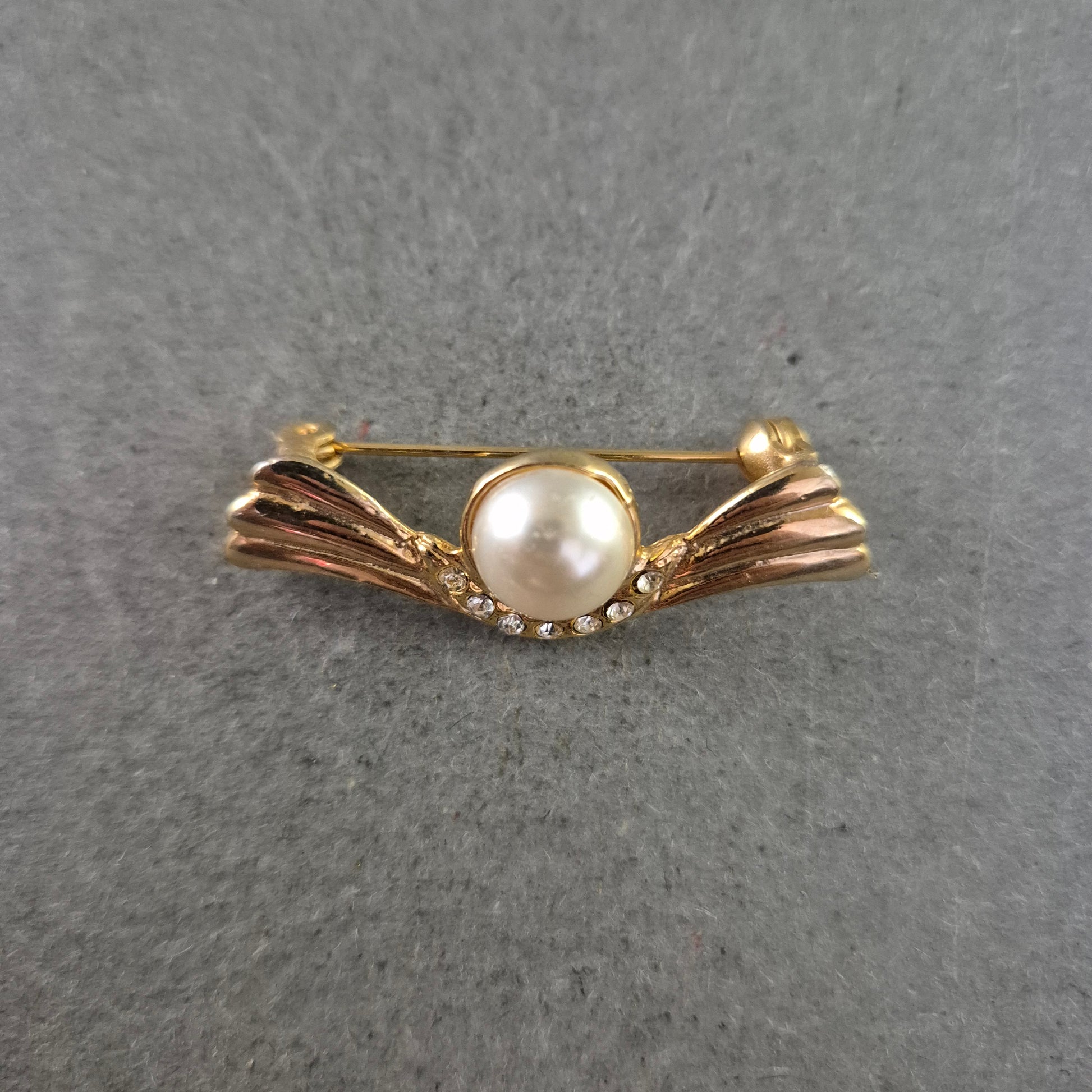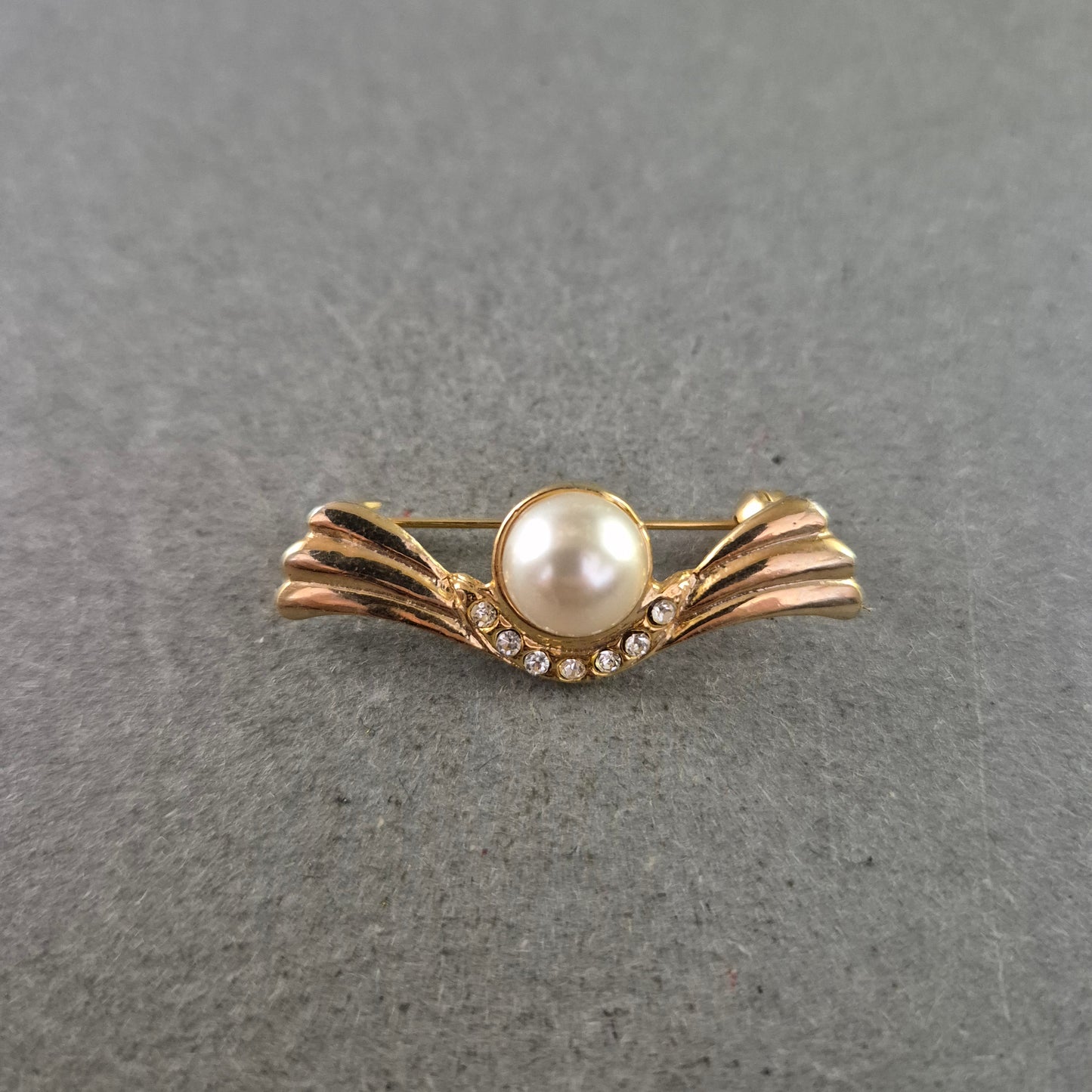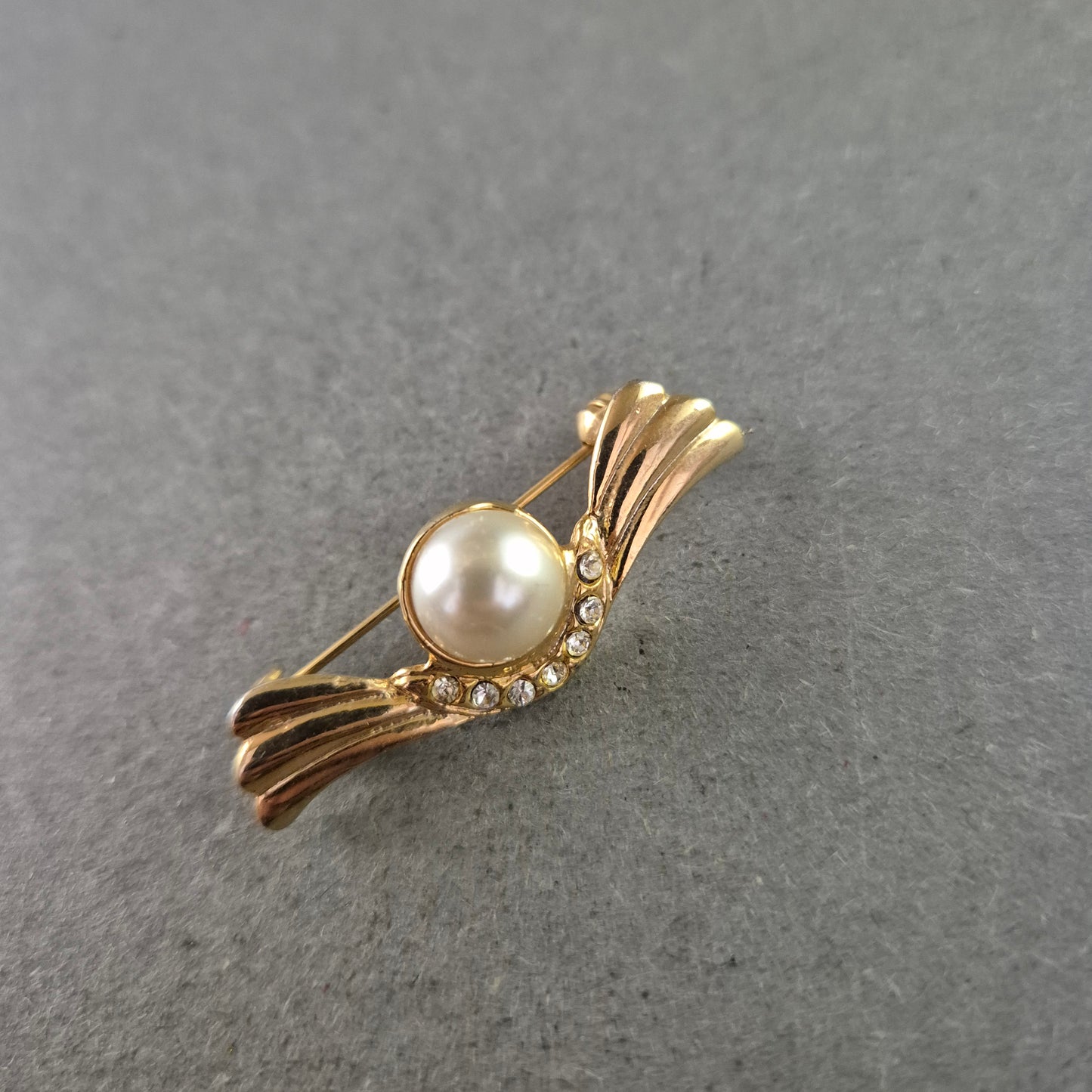 Klassische Brosche mit Zierperle & Strass – Goldoptik im Vintage-Stil