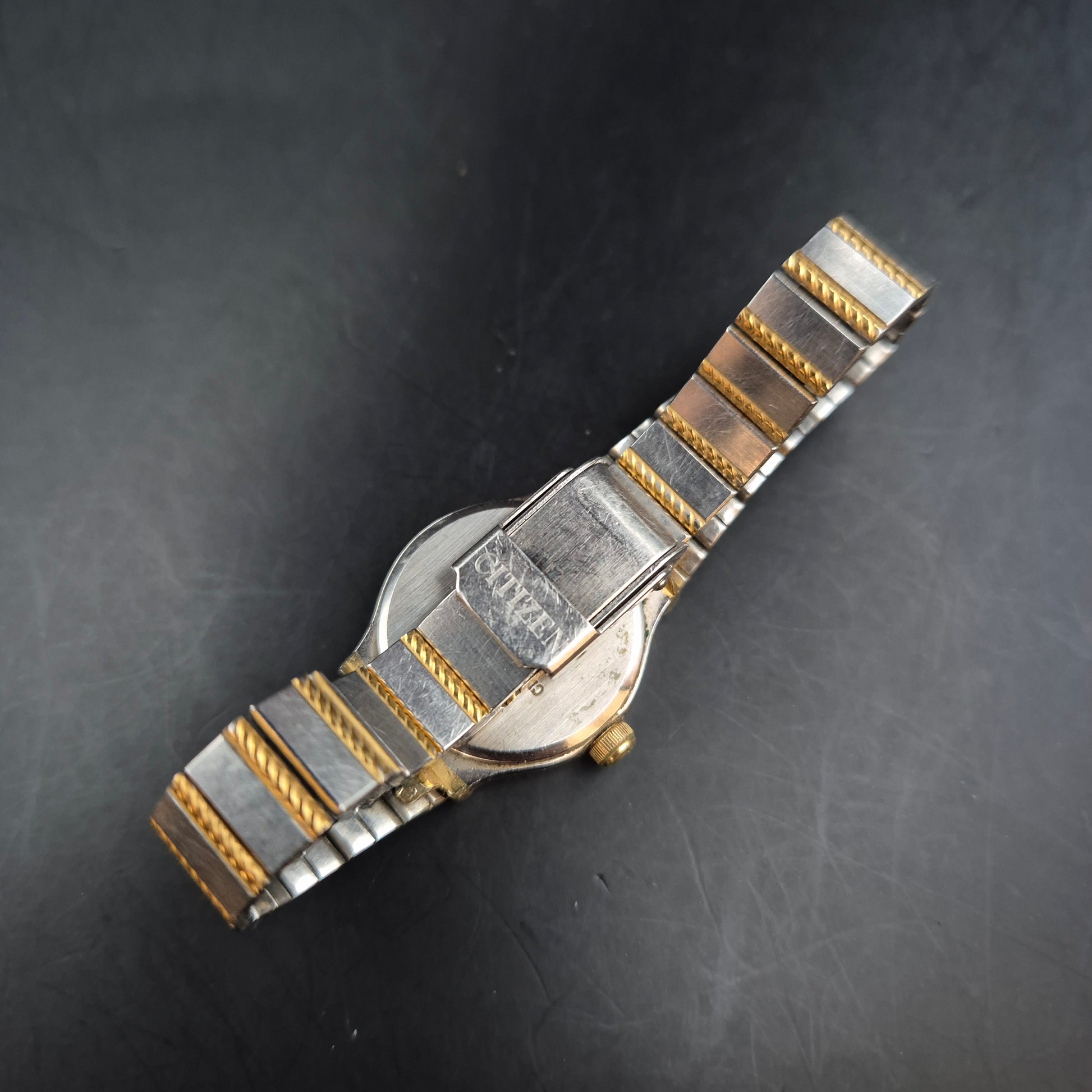 Diese klassische Citizen Damen Uhr vereint dezente Eleganz mit funktionaler Präzision. Das goldene Zifferblatt mit schlichten Indizes harmoniert perfekt mit dem zweifarbigen Metallarmband im Bicolor-Stil (Silber und Gold). Das Gehäuse ist fein strukturiert und verleiht der Uhr einen charmanten Vintage-Look.