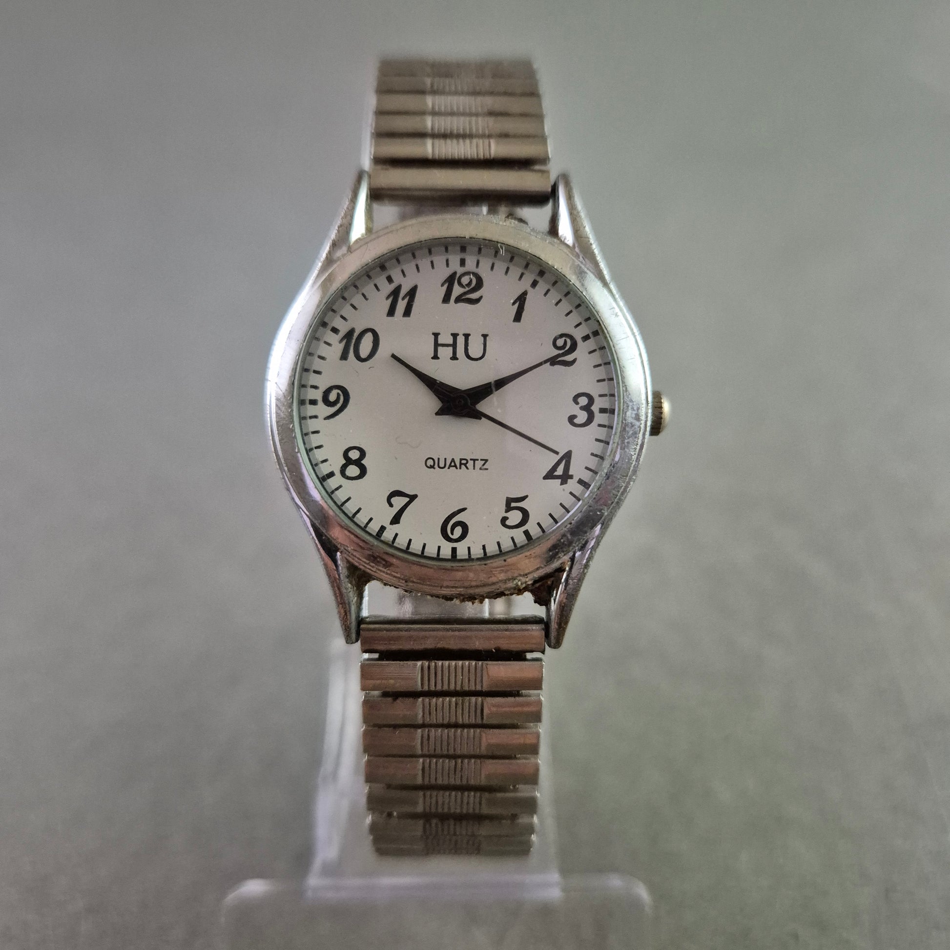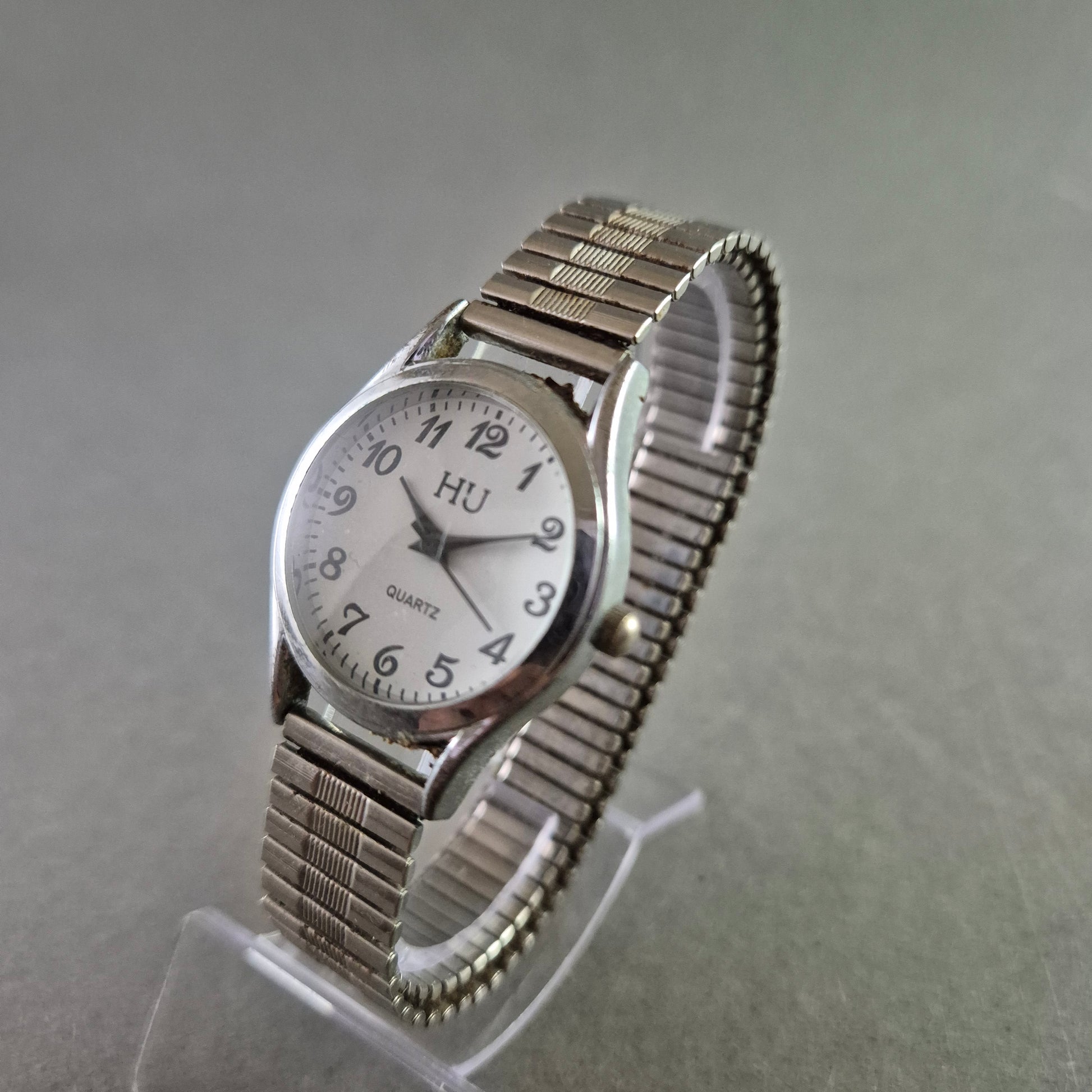 Diese praktische und zeitlose Damen Uhr der Marke HU präsentiert sich in einem klassischen, komplett silberfarbenen Design. Das runde Gehäuse umrahmt ein klares weißes Zifferblatt mit gut lesbaren schwarzen arabischen Ziffern, die für eine präzise Zeitanzeige sorgen. Das flexible Gliederarmband passt sich angenehm jedem Handgelenk an und macht diese Uhr zu einem unkomplizierten und vielseitigen Begleiter für den Alltag.