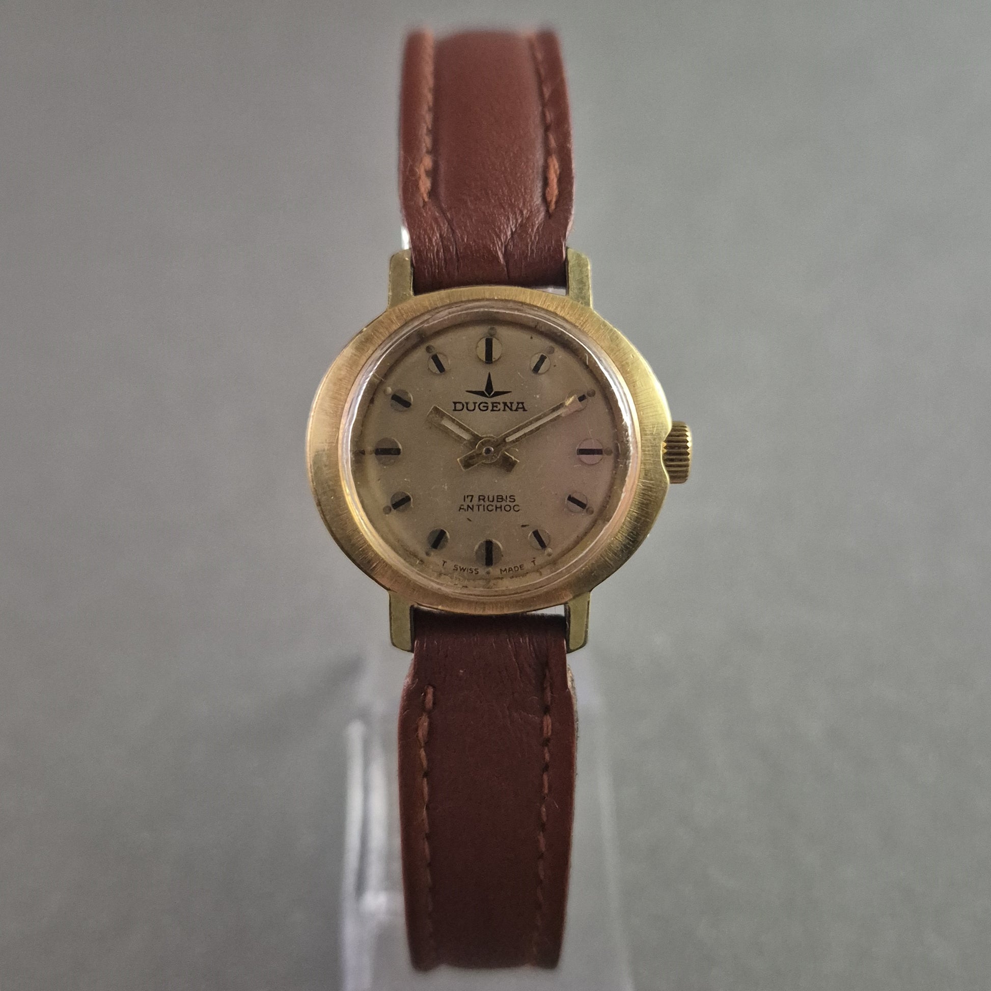 Klassische Dugena Damenarmbanduhr – Vintage-Charme mit goldfarbenem Gehäuse