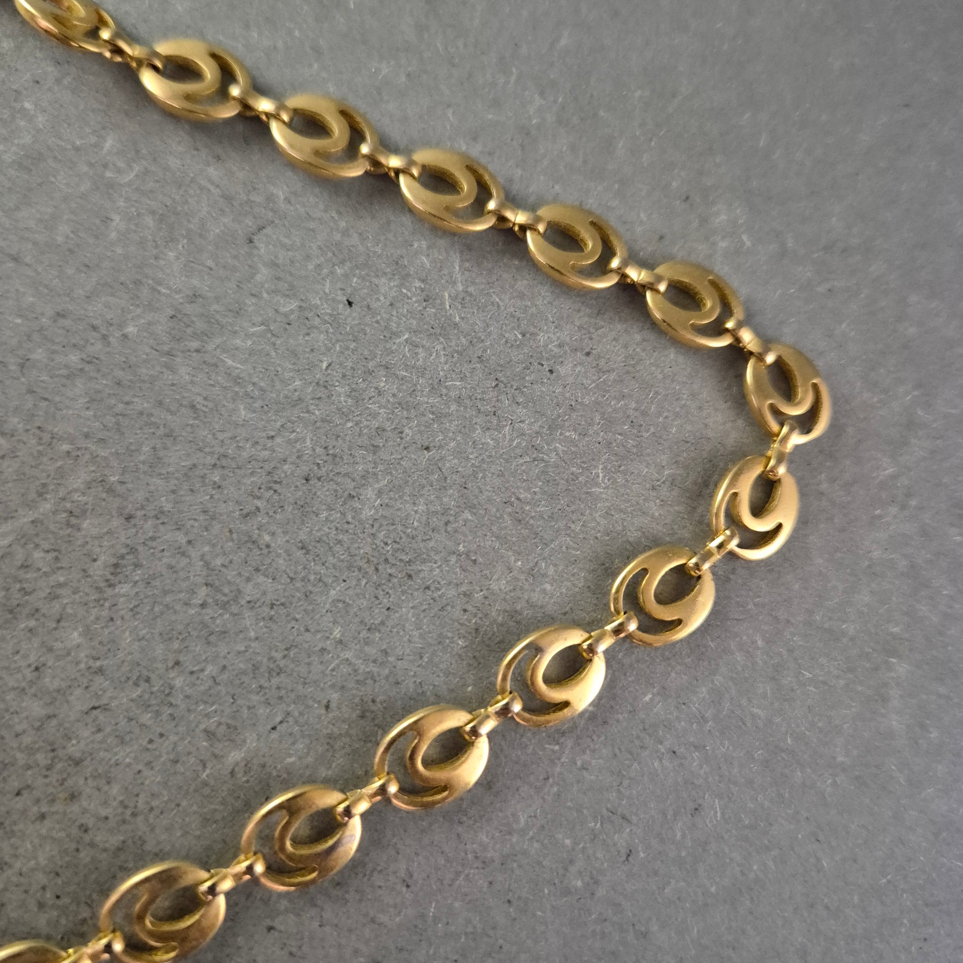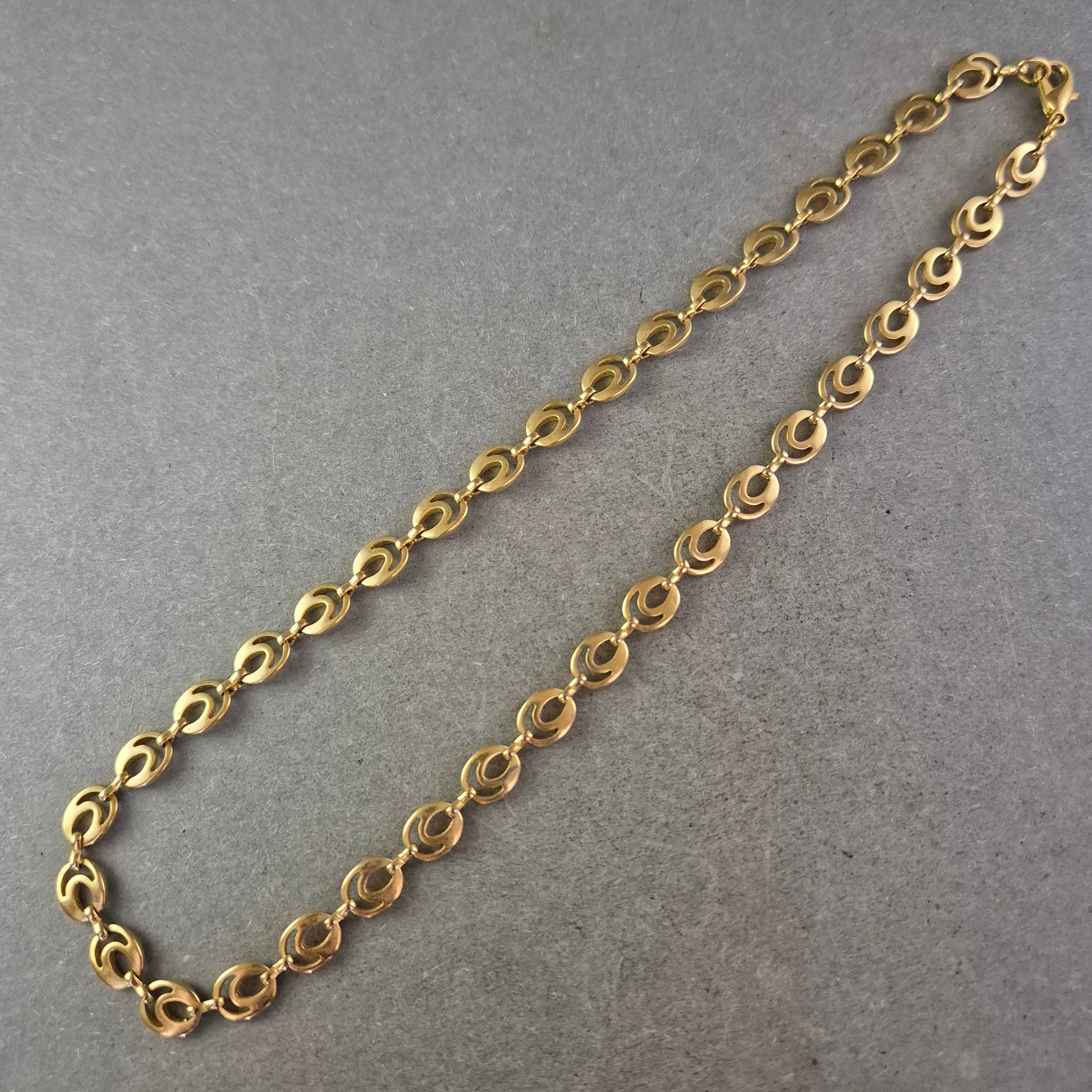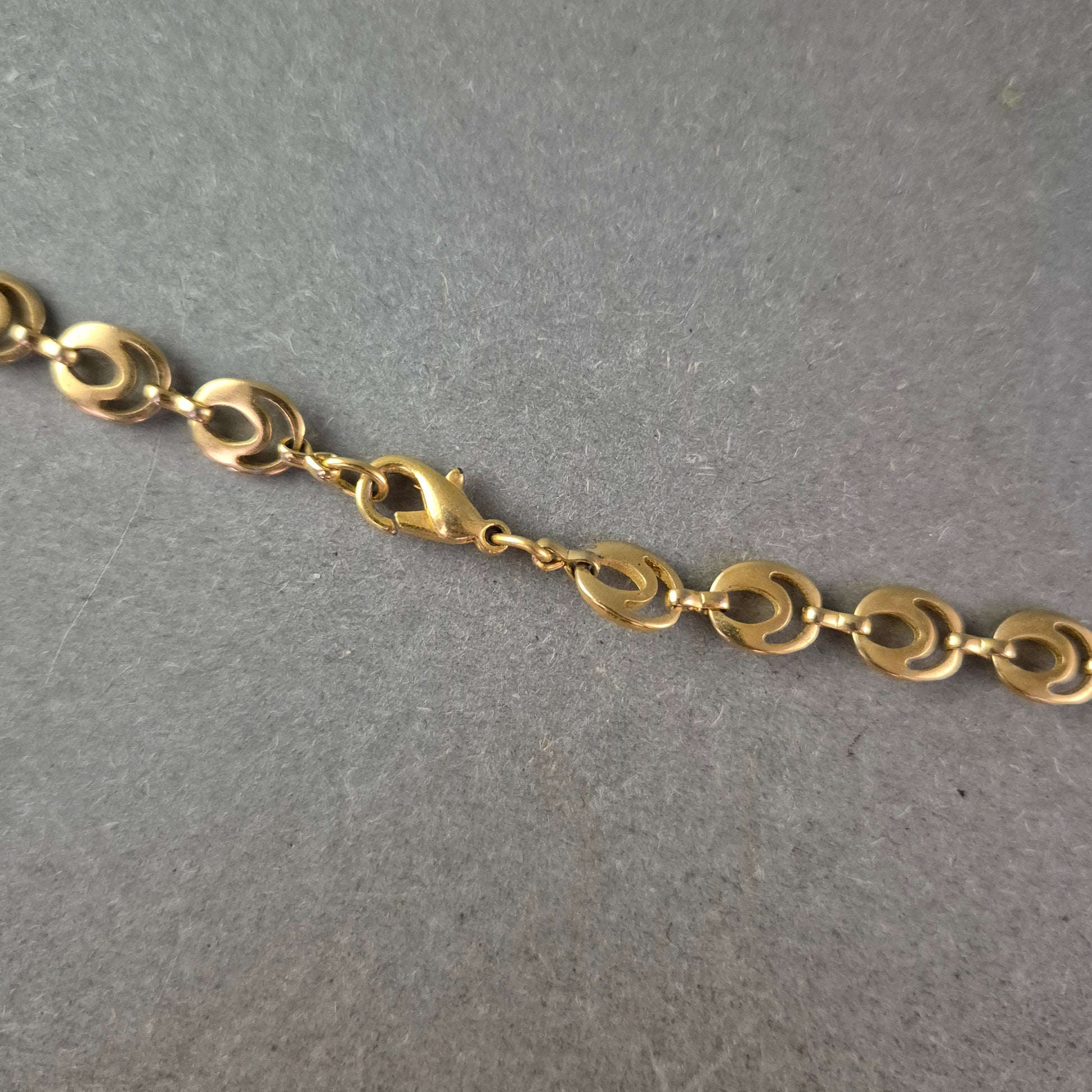 Diese elegante Halskette überzeugt durch ihre zeitlose Gliederstruktur in glänzender Goldoptik. Die ovalen Glieder sind leicht geschwungen und verleihen dem Schmuckstück einen dezenten, aber wirkungsvollen Look. Der praktische Karabinerverschluss sorgt für sicheren Halt. Ob solo getragen oder mit Anhänger – diese Kette ist ein echtes Allround-Talent für jeden Anlass.