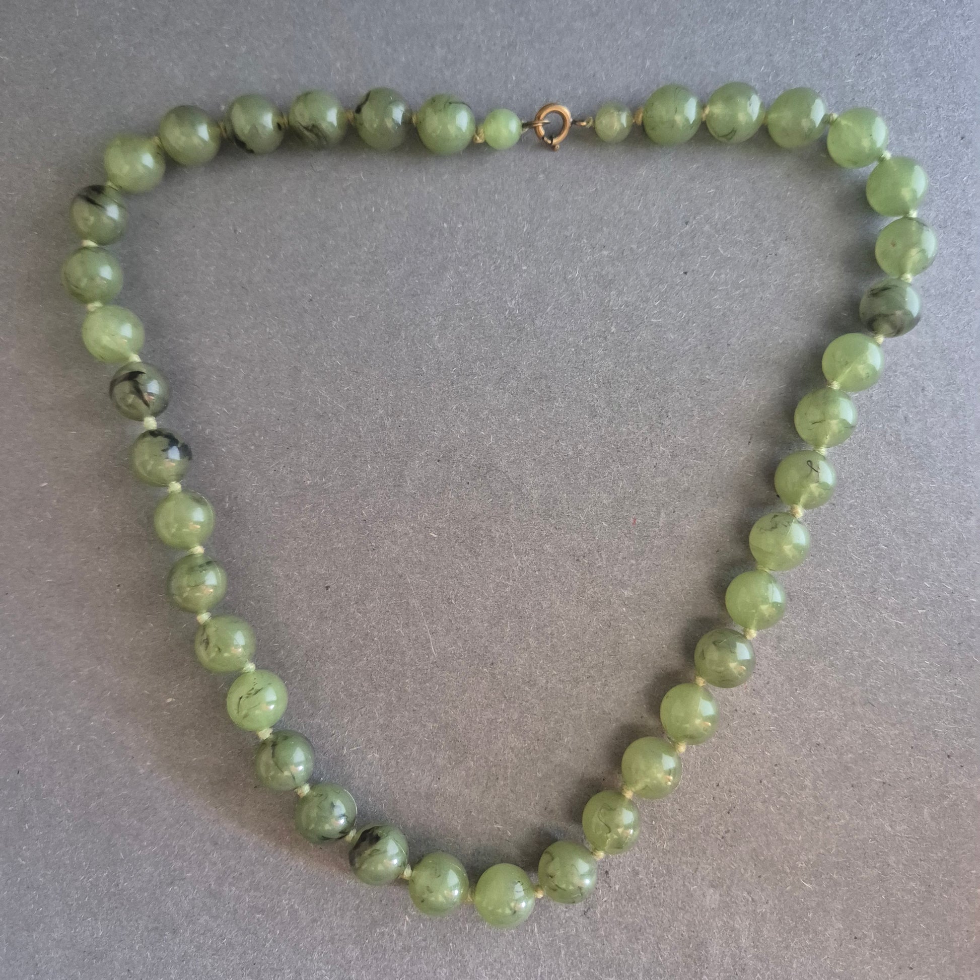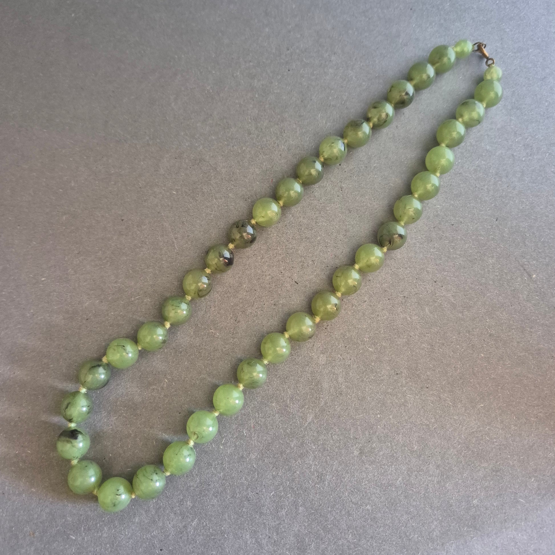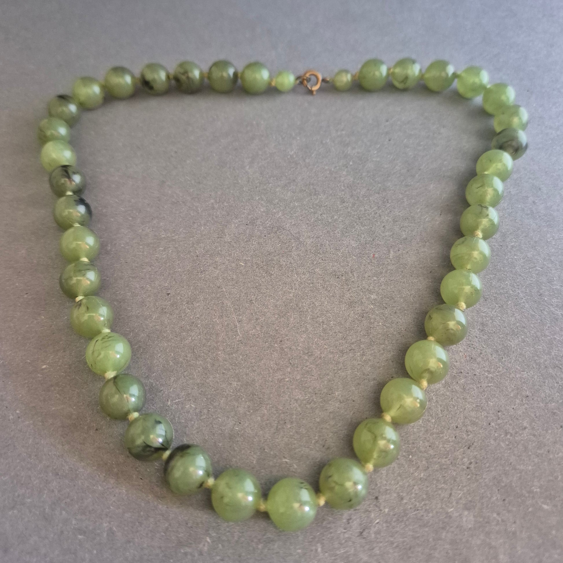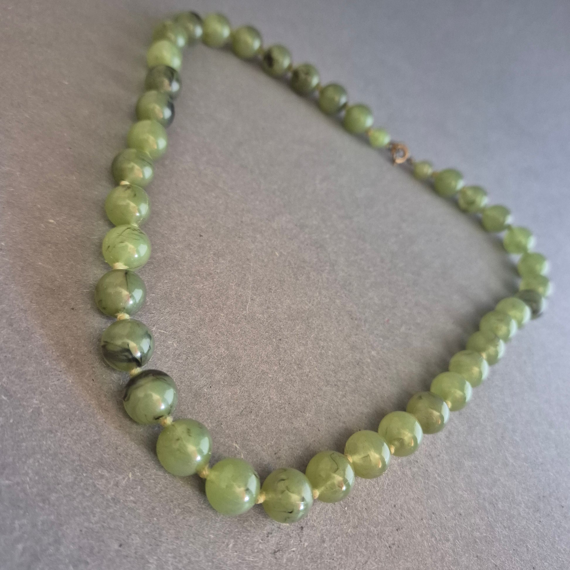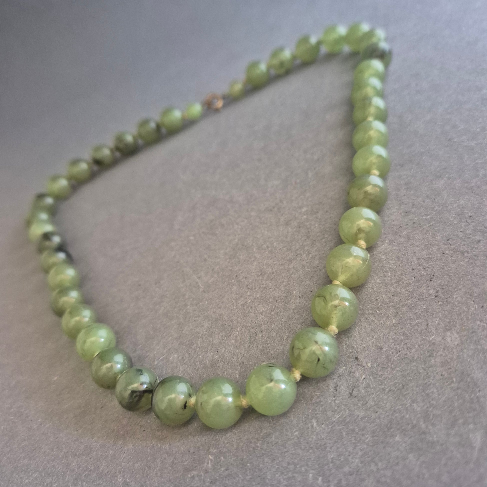 Klassische grüne Halskette mit Rundperlen – Zeitlose Eleganz in Naturtönen